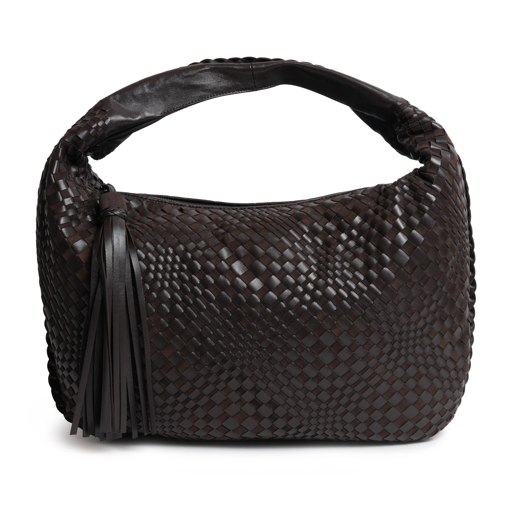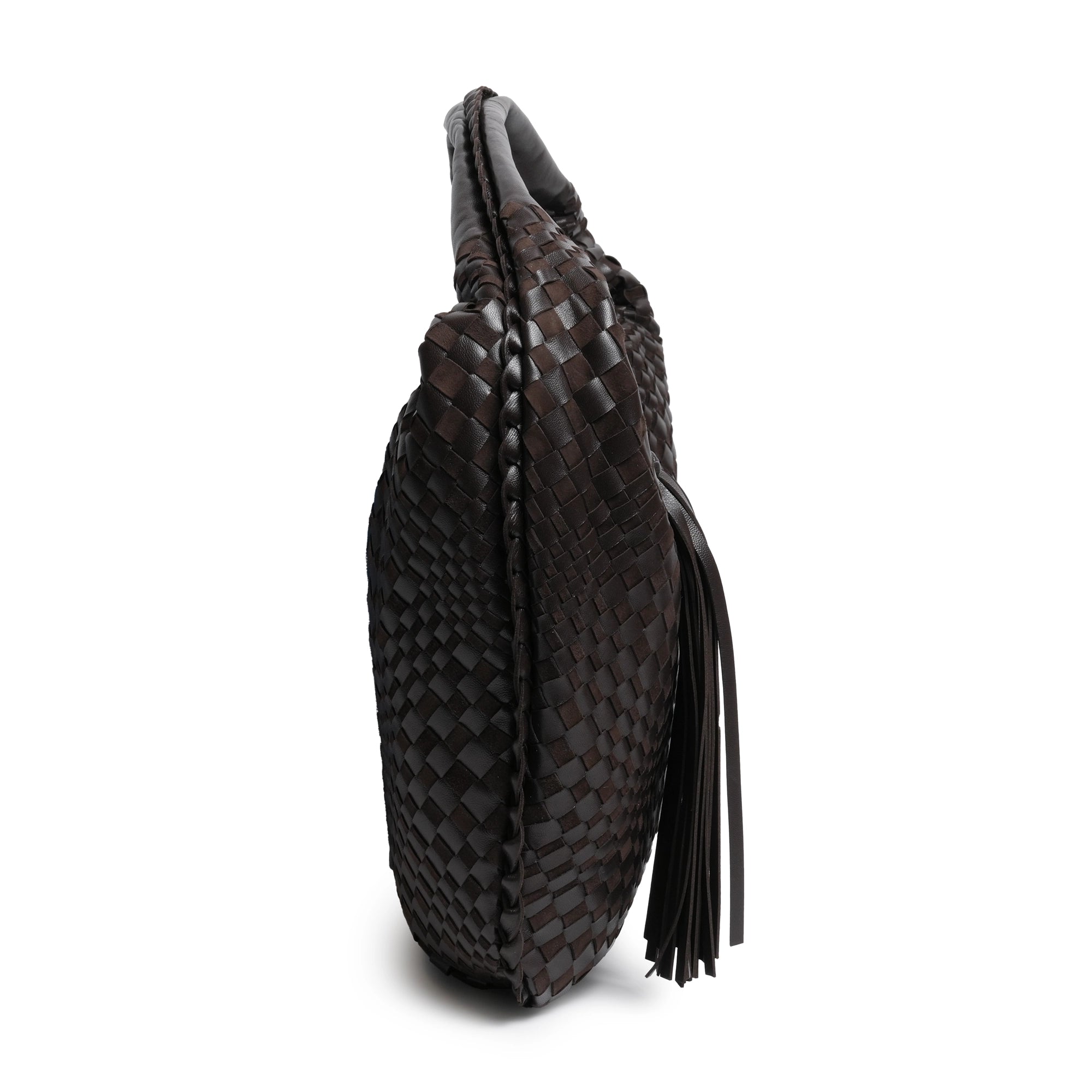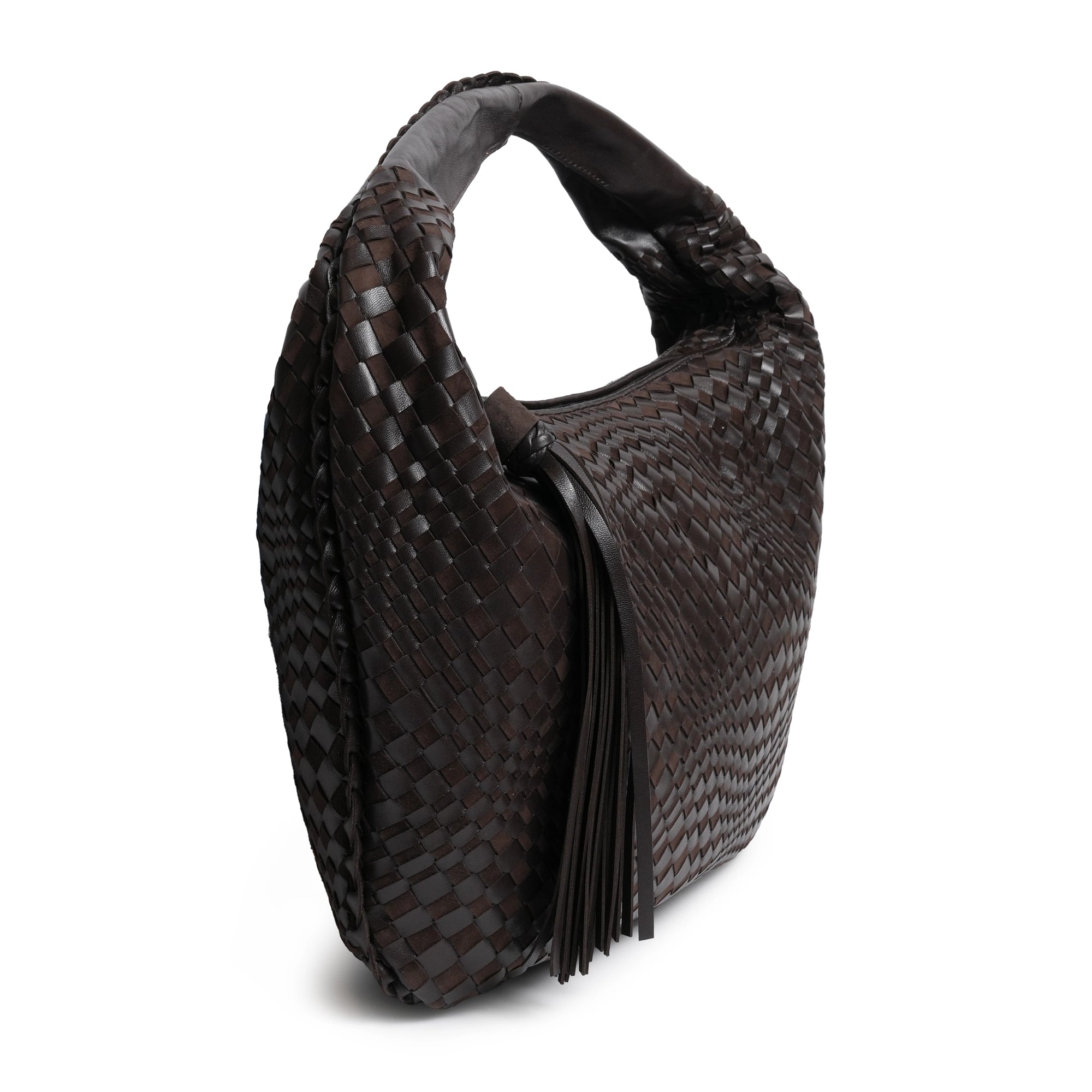 Brigitte Is Women Hobo Bag Intrecciato in Nappa and Suede Leather Testa di Moro