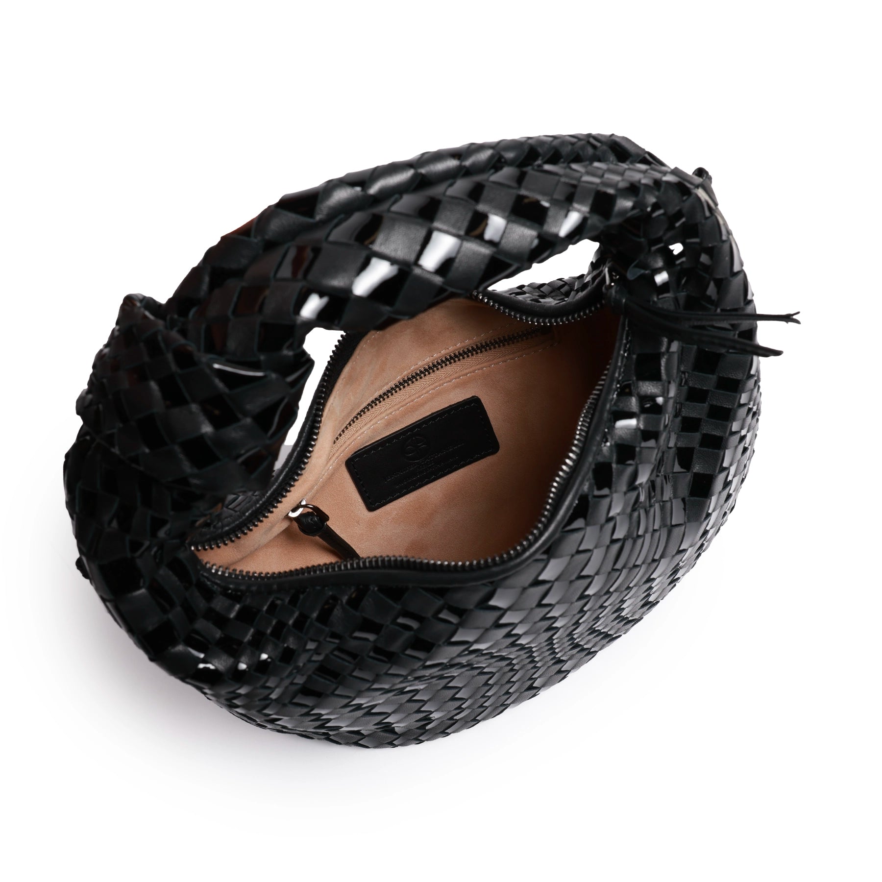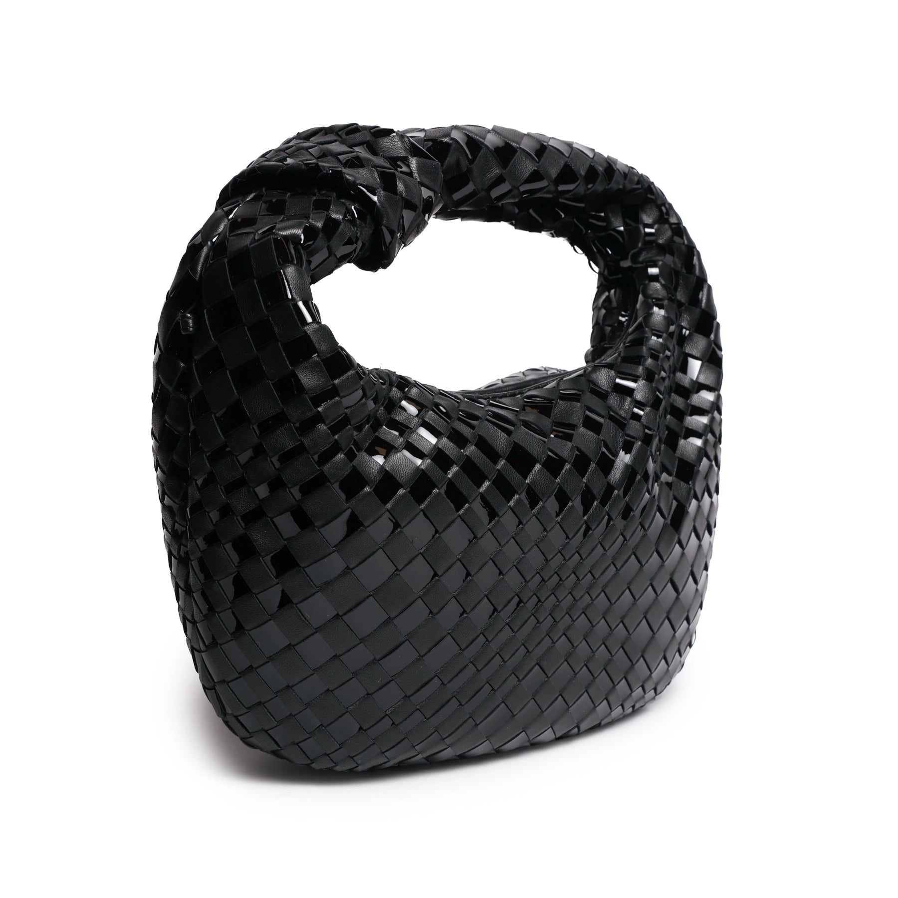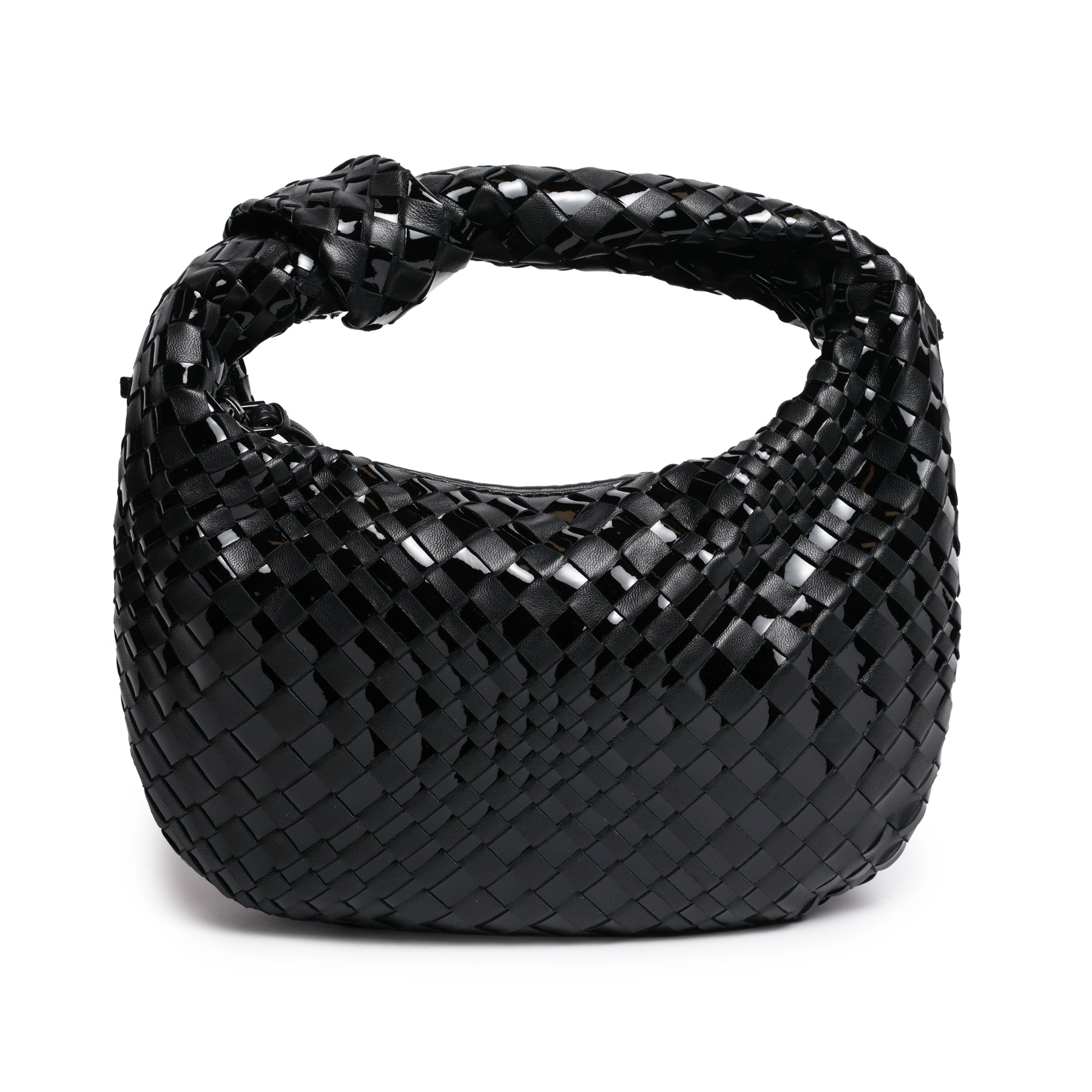 Brigitte Knot Women Intrecciato Hobo Bag in Black Nappa and Patent Leather