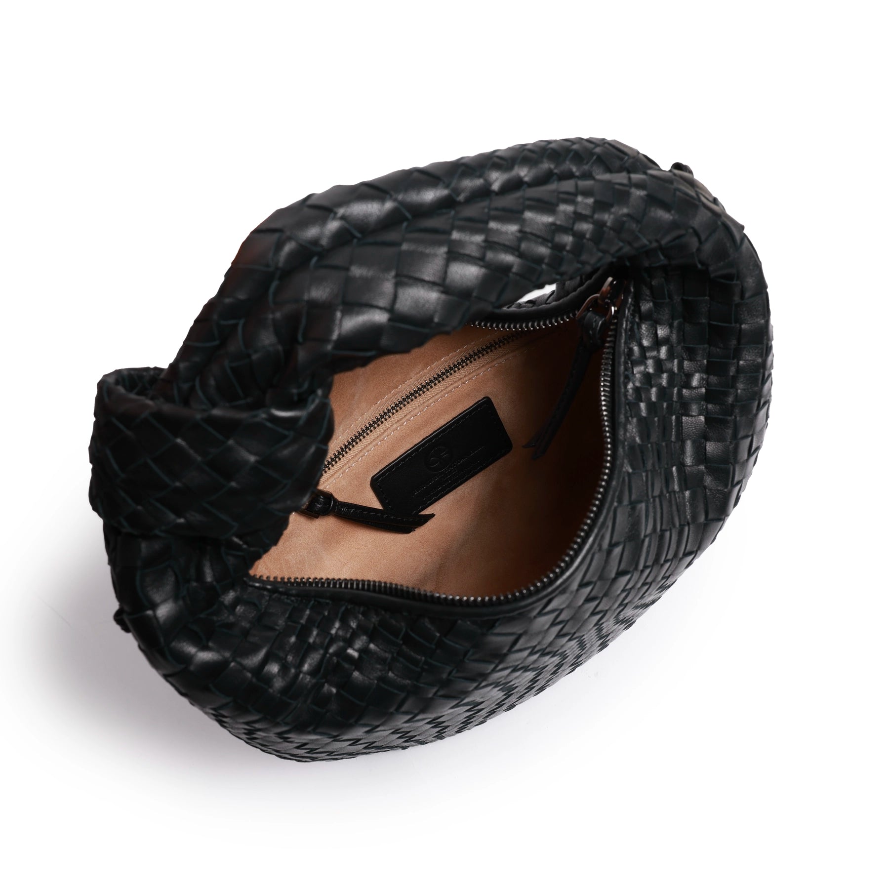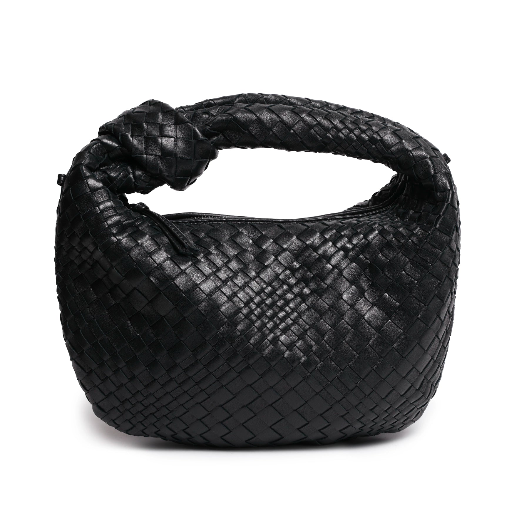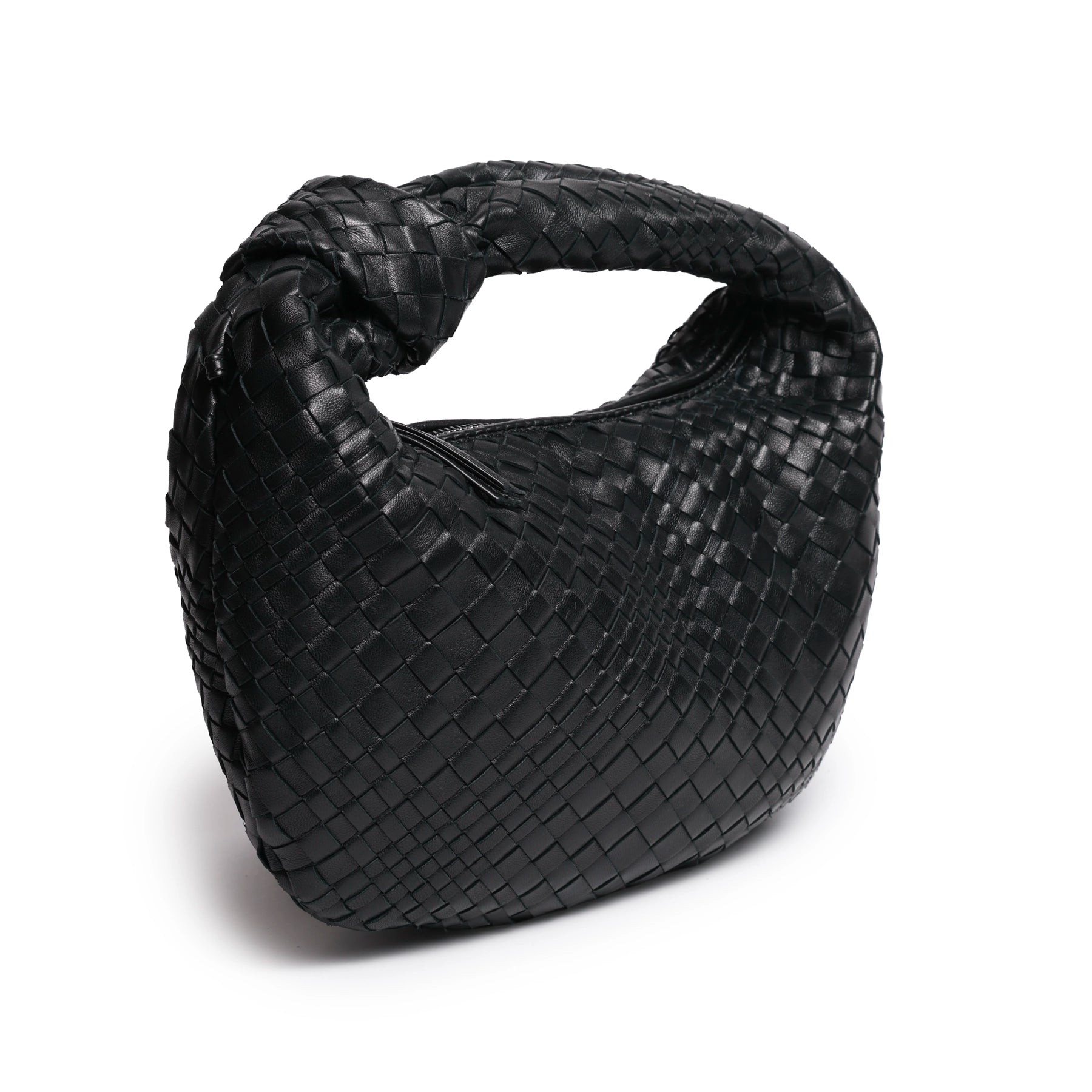 Inspired by the shape of the timeless hobo bags, the "Brigitte Knot" features as an intrecciato optical leather bag and a signature part of our collection in a tiny version!