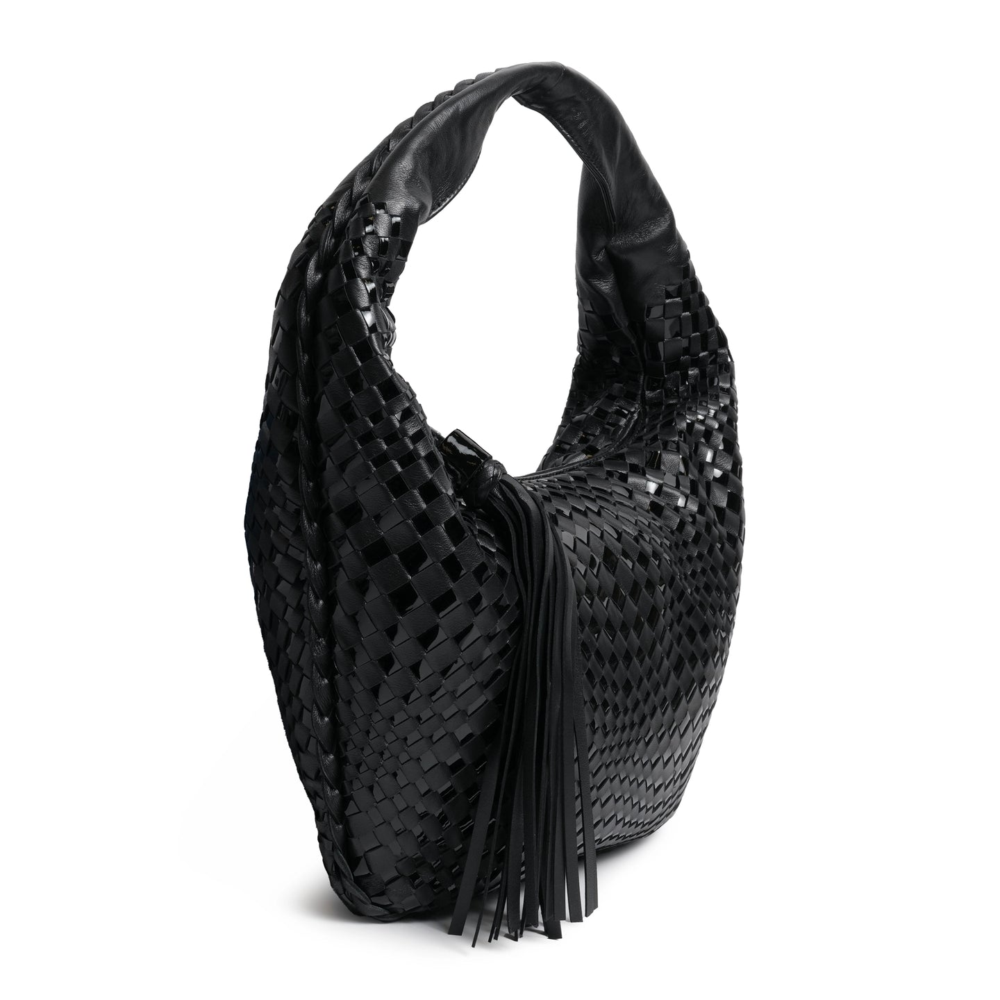 Brigitte Petite Women Hobo Intrecciato Bag in Nappa and Patent Leather Black