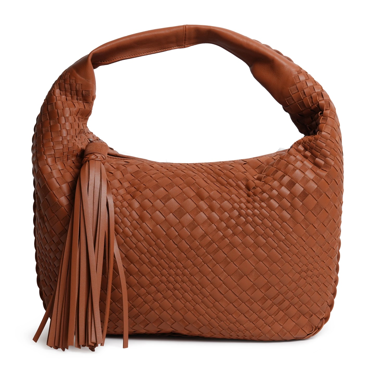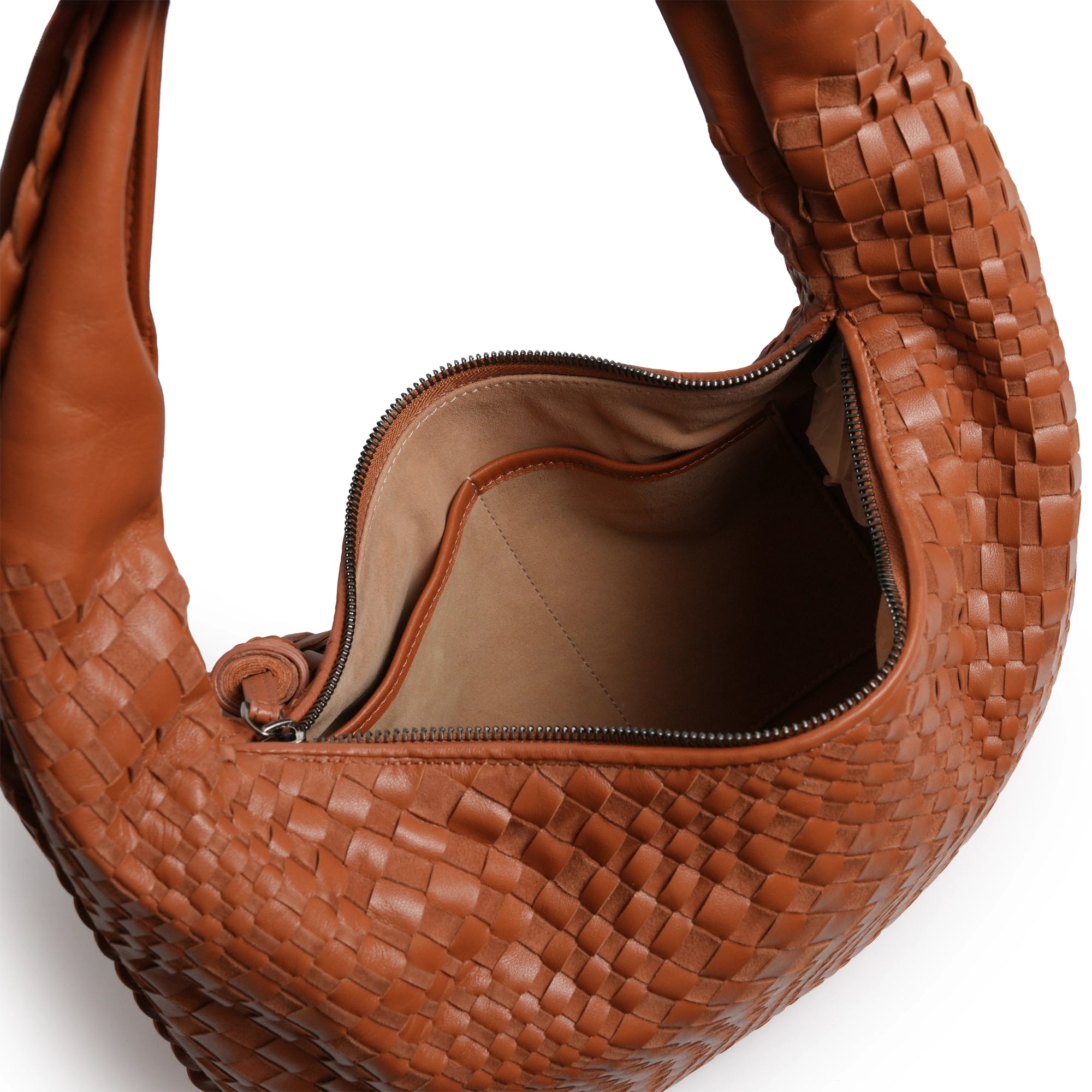 Brigitte Petite Women Hobo Intrecciato Bag in Nappa and Suede Leather Cuoio