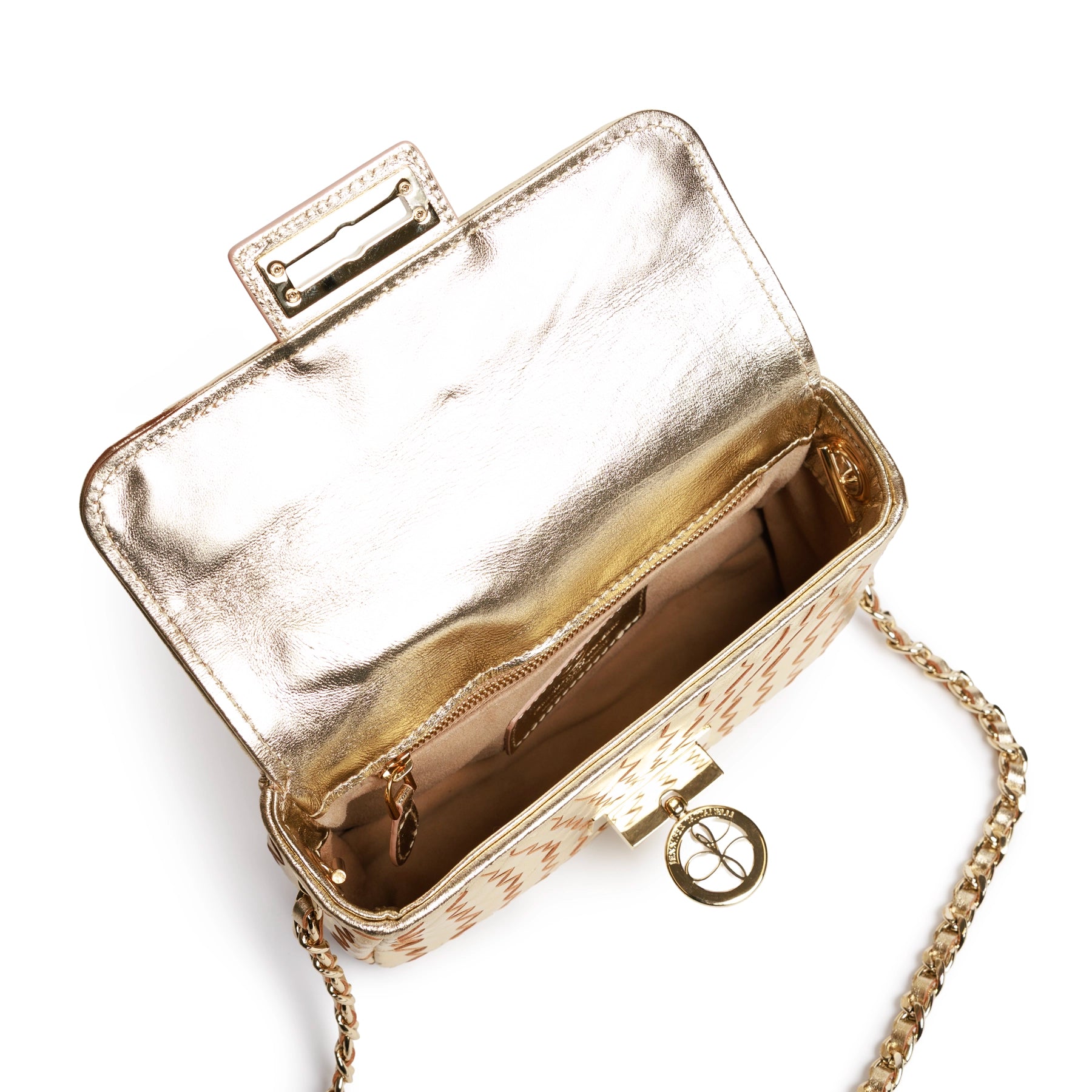 The New Chicca is a stylish mini bag, meticulously handmade in Florence, Italy. This Laminated Gold color is simply elegant and vibrant at the same time.