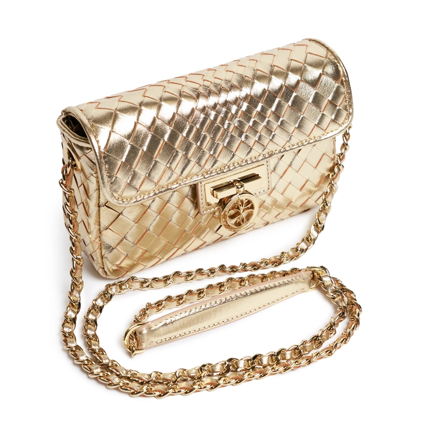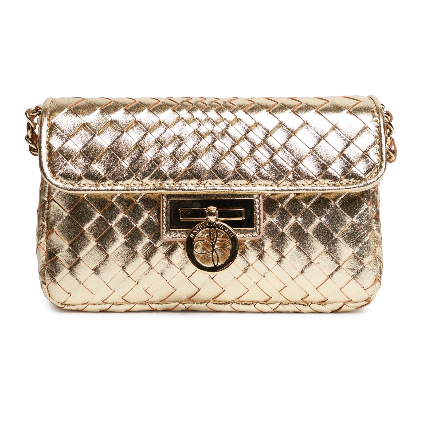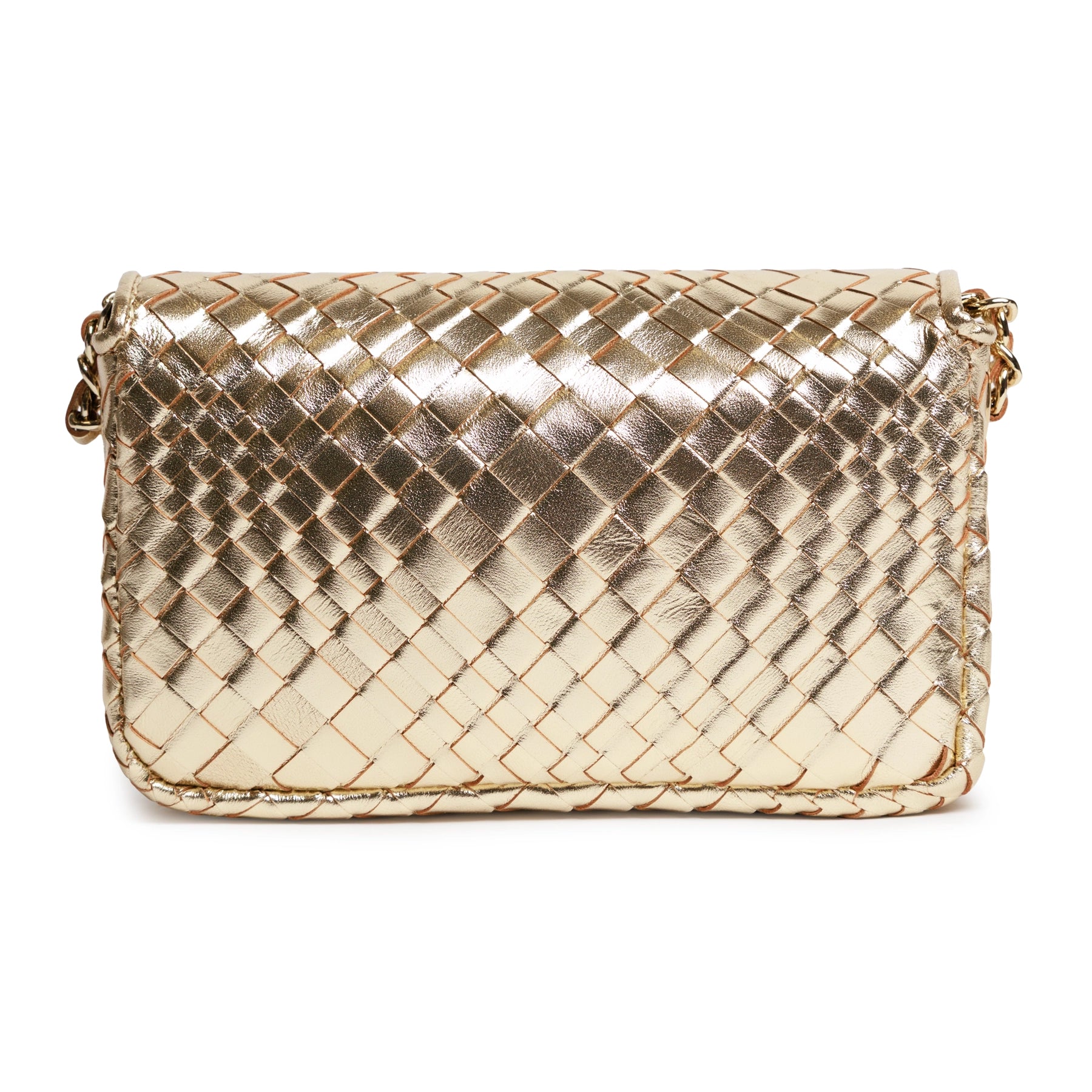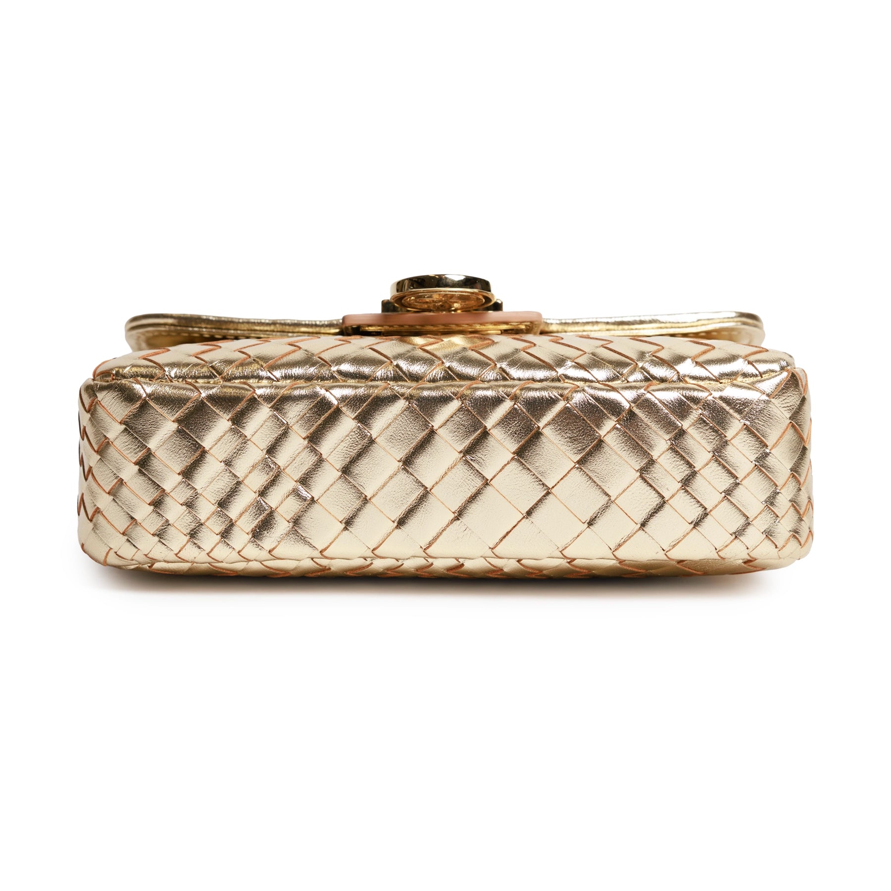 Chicca Women's Intrecciato Optical Leather Bag in Laminated Gold