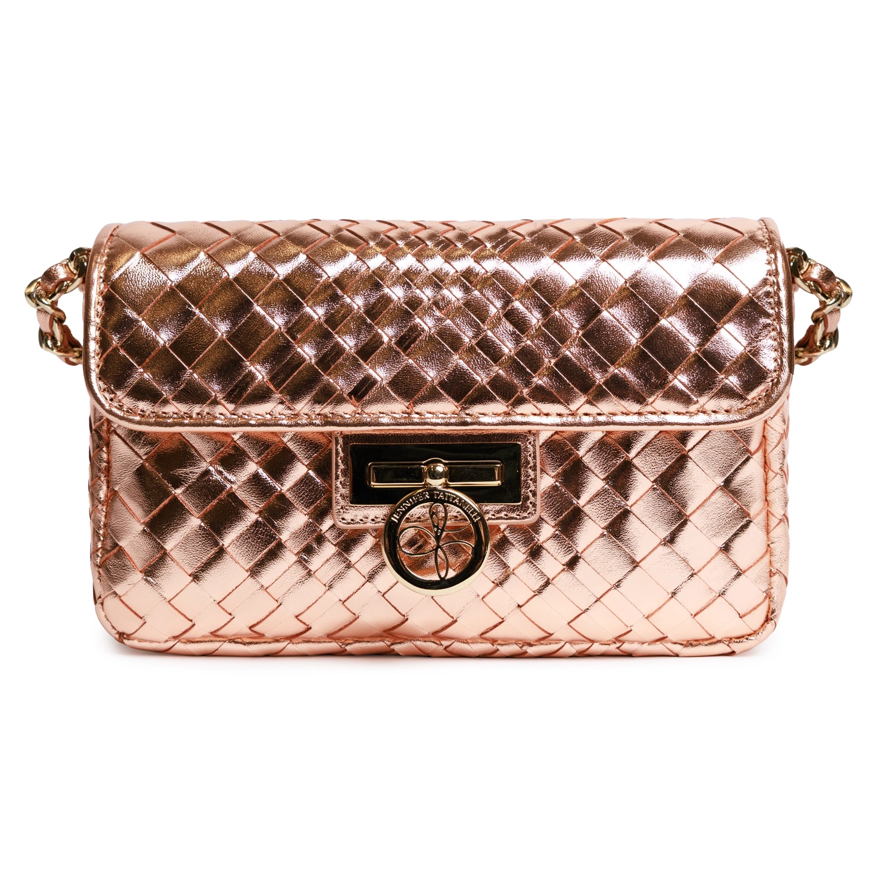 Chicca Women's Intrecciato Optical Leather Bag in Laminated Rose Gold