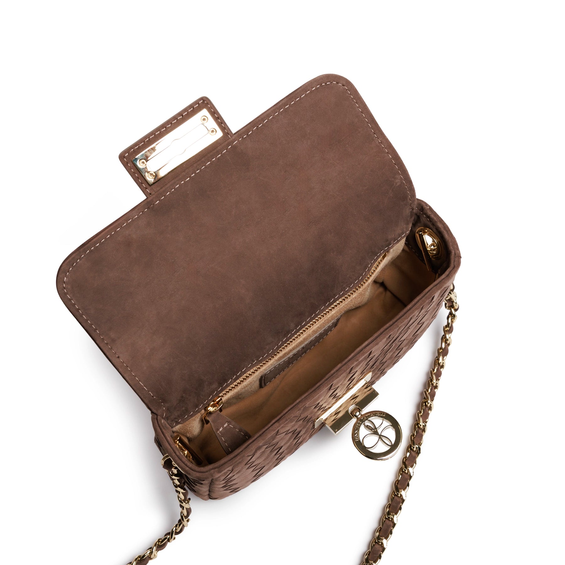 The New Chicca is a stylish mini bag, meticulously handmade in Florence, Italy. This Nabuk Cioccolato color is simply elegant and vibrant at the same time.