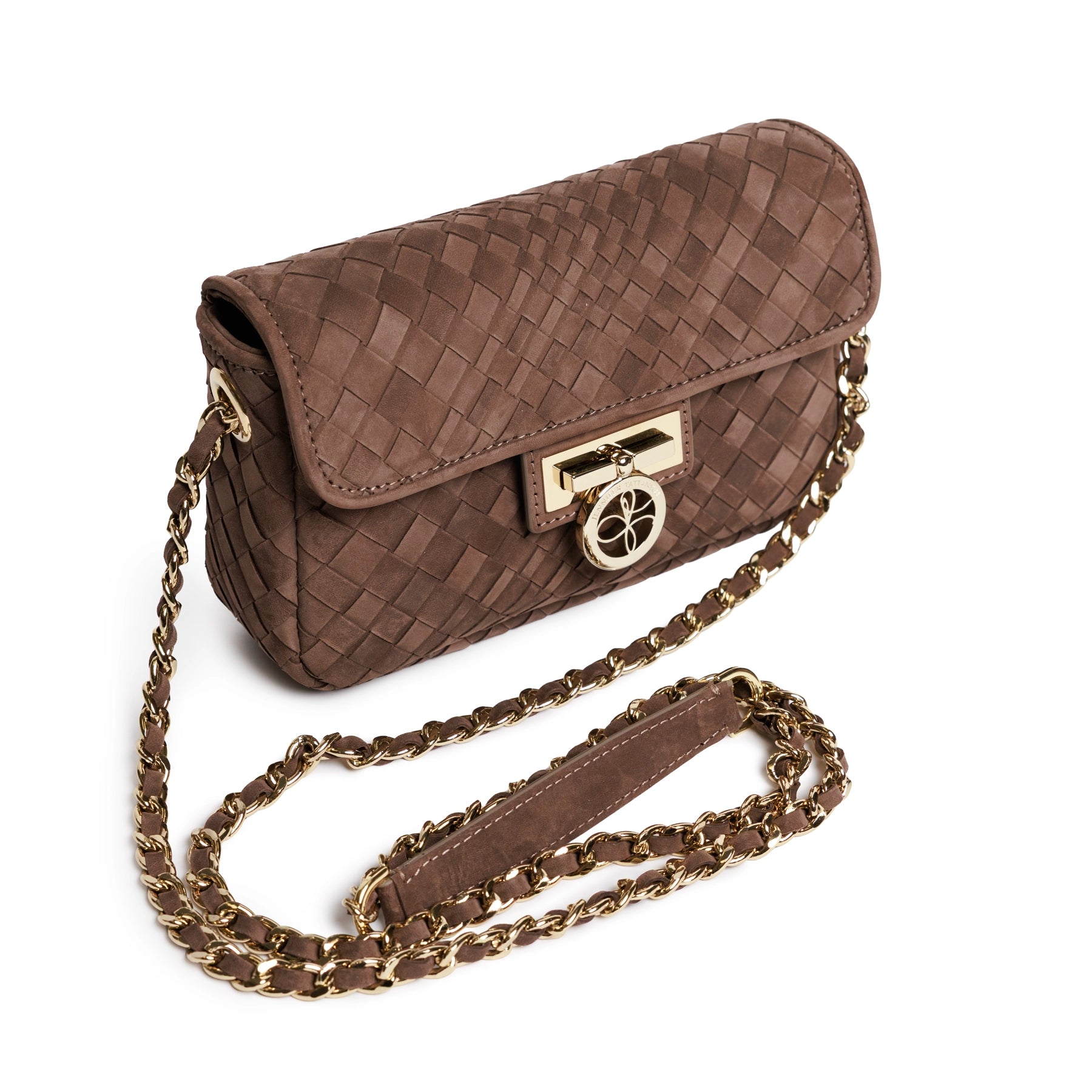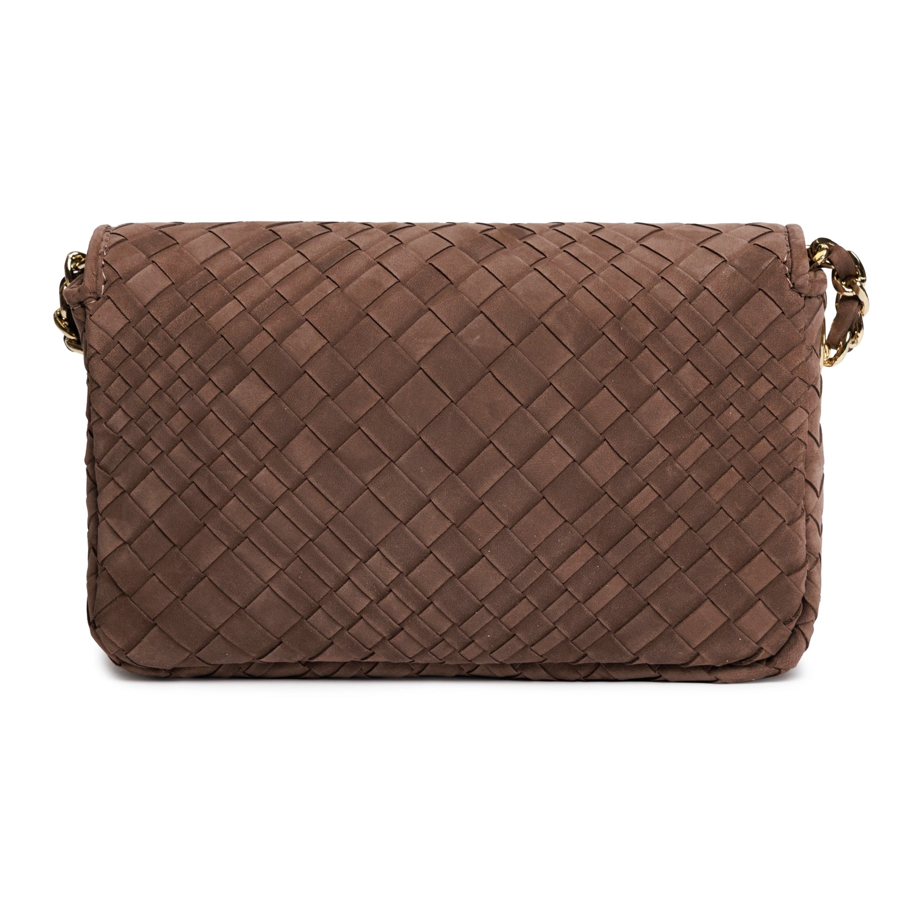 Chicca Women's Intrecciato Optical Leather Bag in Nabuk Cioccolato