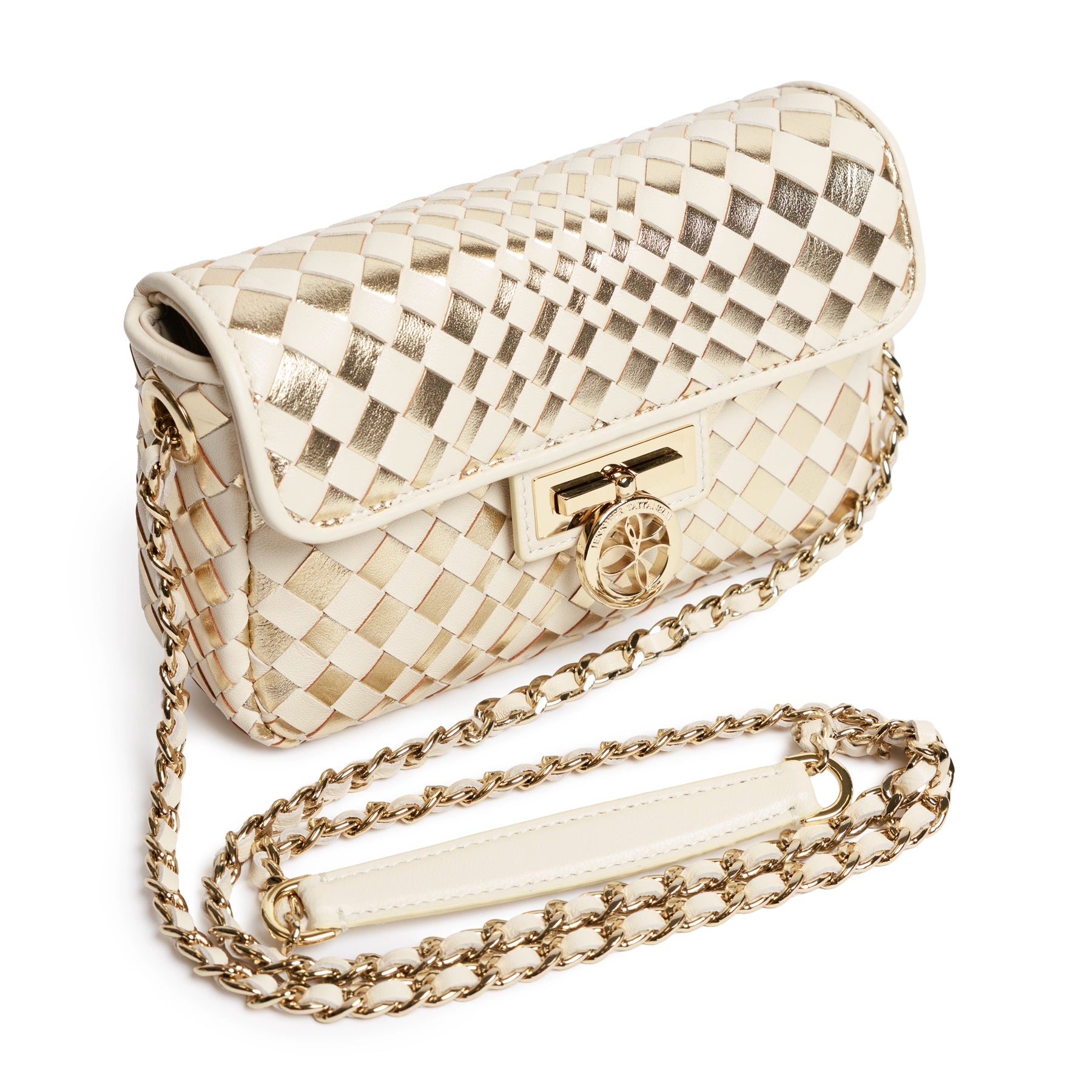 Chicca Women's Intrecciato Optical Nappa and Laminated Leather Bag in Ivory and Gold