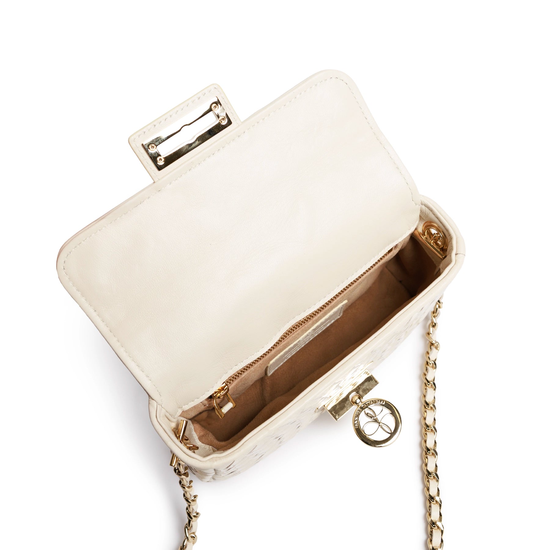 The New Chicca is a stylish mini bag, meticulously handmade in Florence, Italy. This Nappa and Patent Leather Ivory color is simply elegant and vibrant at the same time.