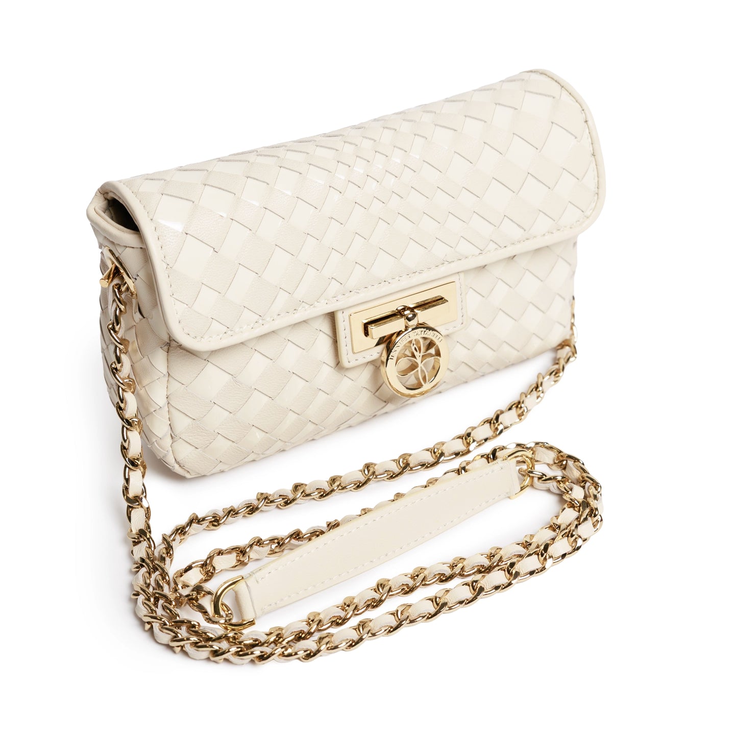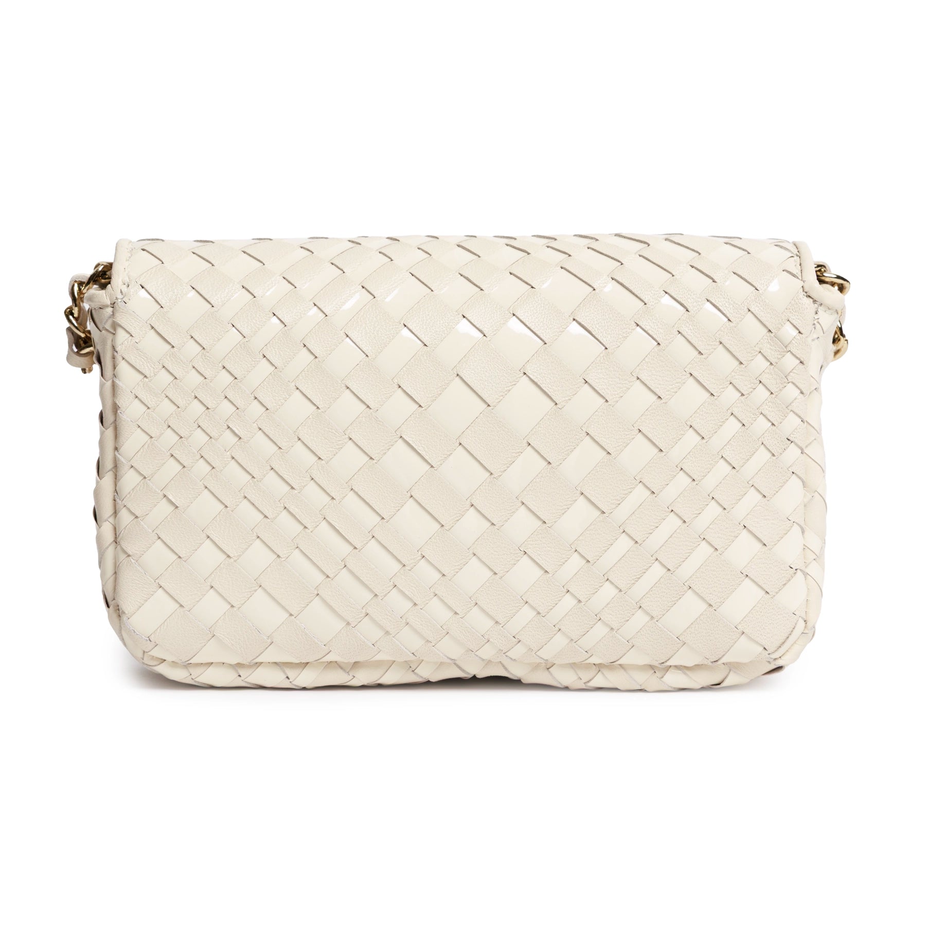 Chicca Women's Intrecciato Optical Nappa and Patent Leather Bag in Ivory