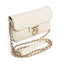 The bag comes with a comfortable chain strap, perfect for a crossbody fit, offering both convenience and a chic look.