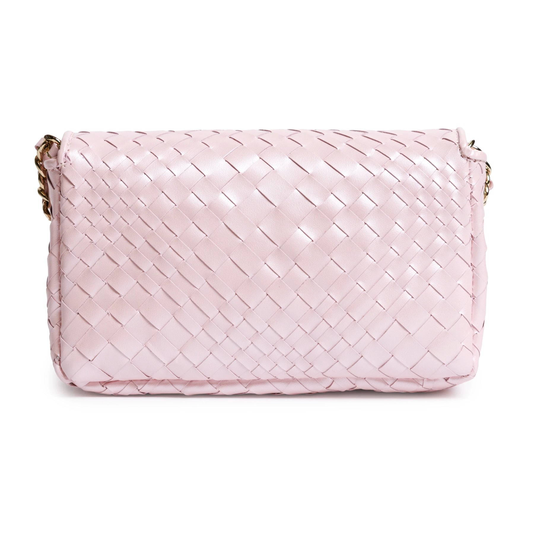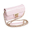 Its compact silhouette is gently structured, balancing elegance with everyday practicality. The front flap is adorned with a polished metal closure, adding a luminous accent that contrasts beautifully with the pastel tone. This thoughtful combination of softness and shine gives the bag a modern yet timeless appeal.