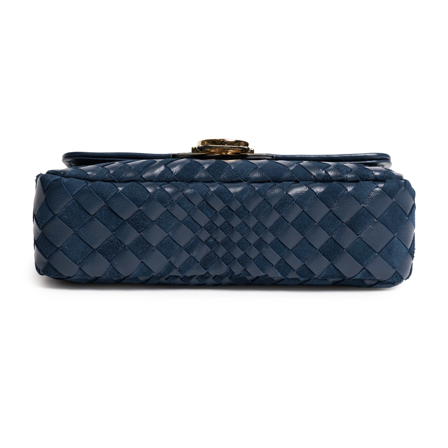 It features the Intrecciato Optical design in a deep hue Nappa and Suede Carta da Zucchero, a sophisticated woven pattern that adds a unique texture.