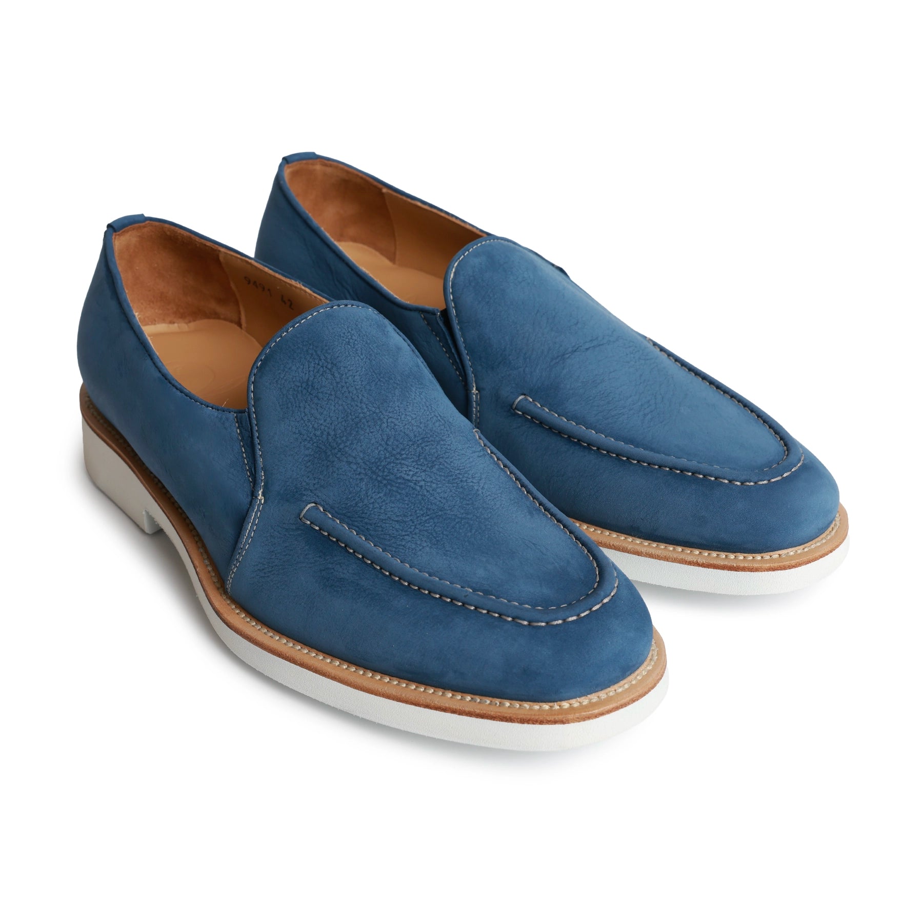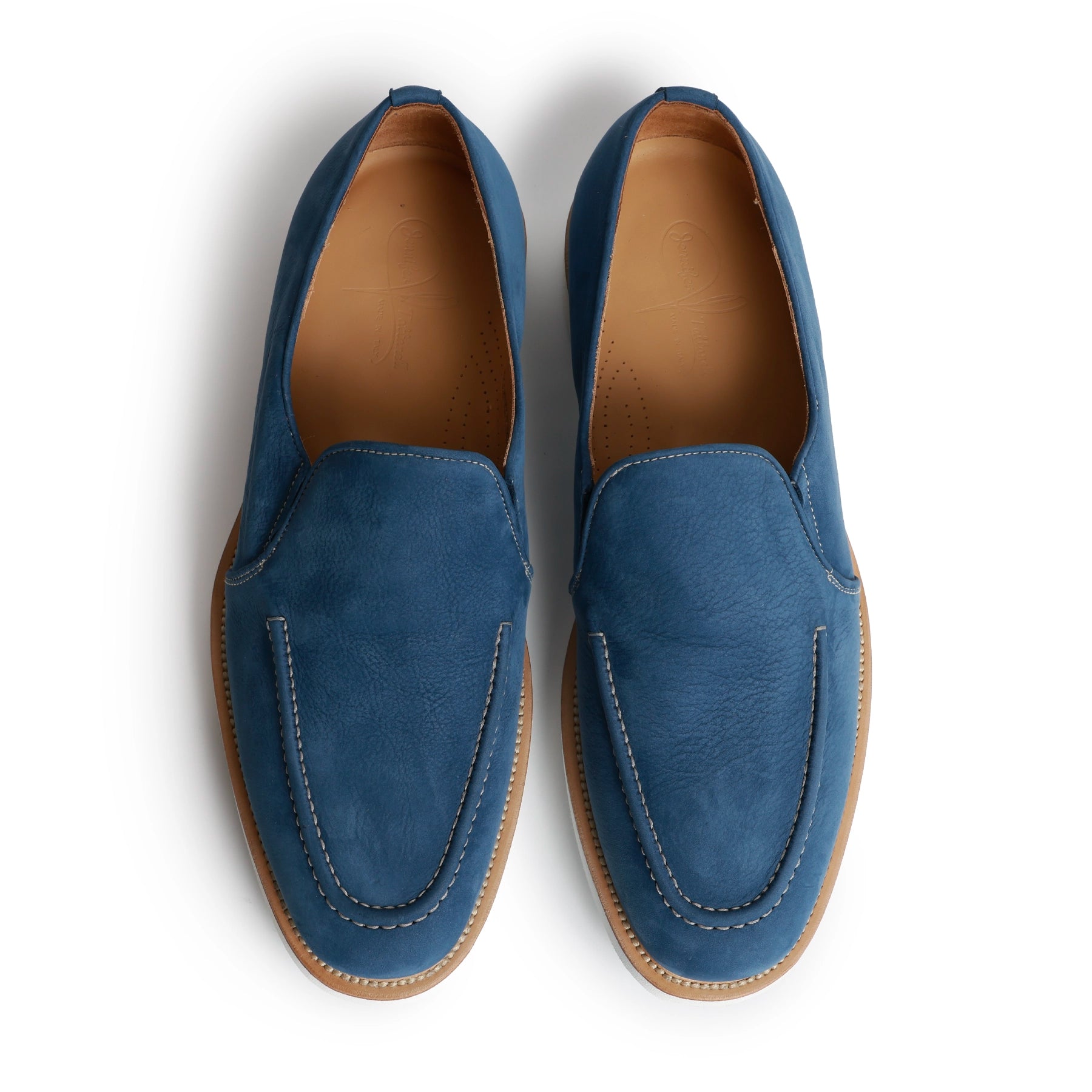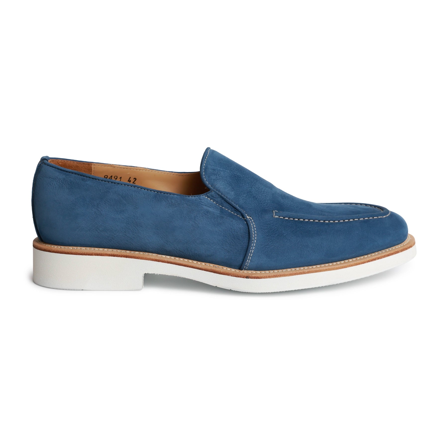 Designed for ease and everyday refinement, these slip-on shoes are crafted from soft “morbidone” leather in a deep navy blue tone.