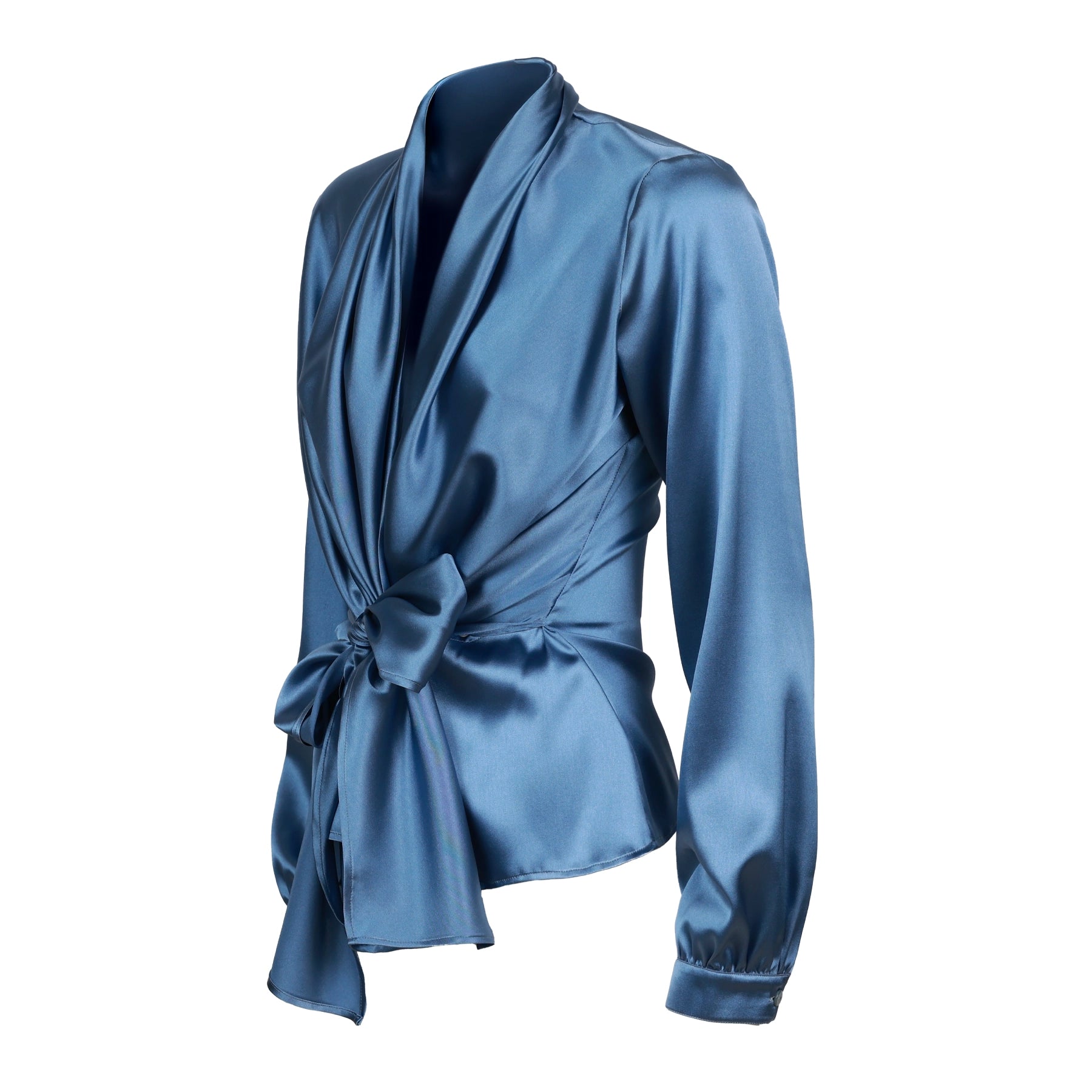 What is most pleasing about the Long Sleeve Silk Blouse is its versatility. You can dress it in various ways, thanks to the included sash, and it looks beautiful for both casual and formal purposes.