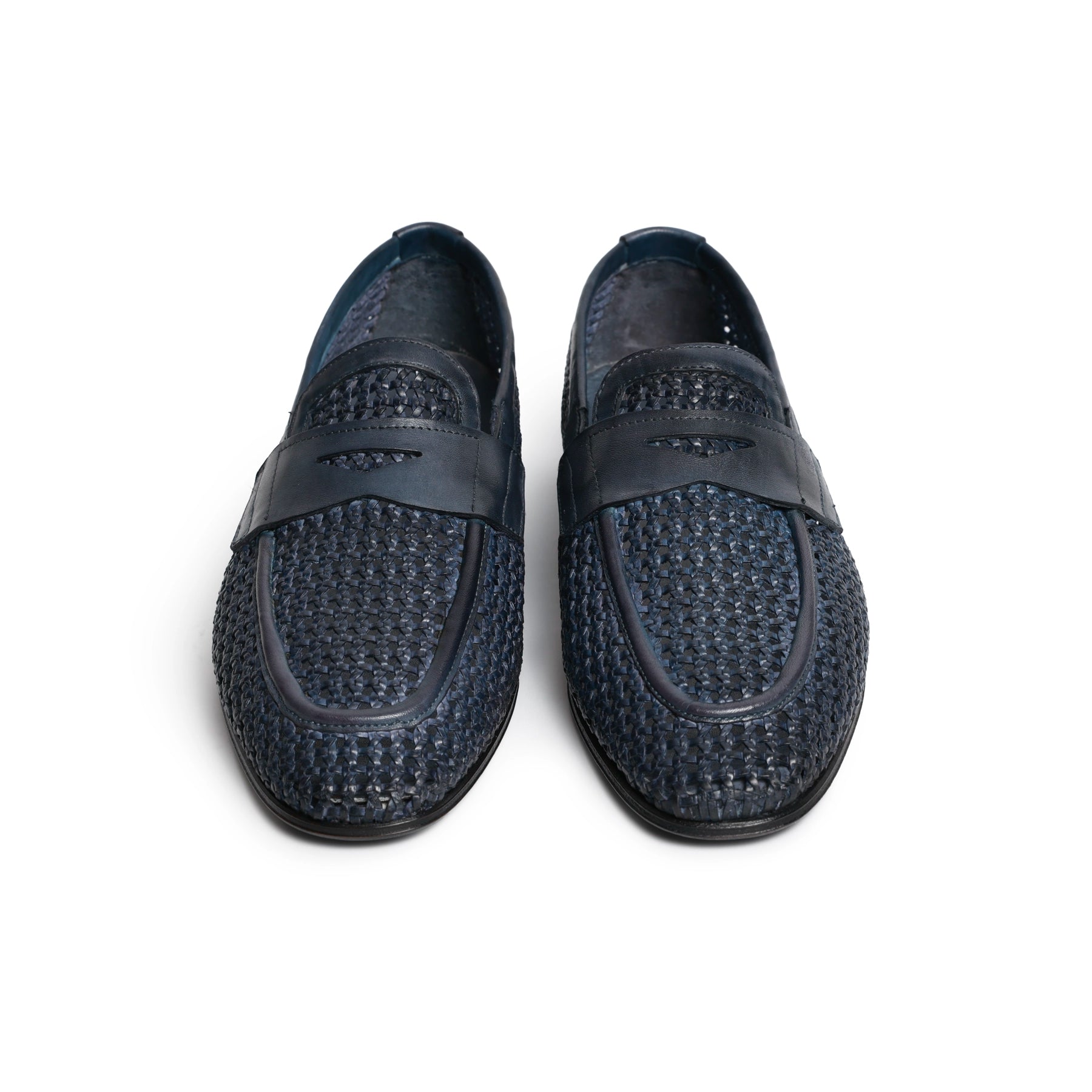 These men’s intrecciato leather penny loafers are a refined expression of Italian craftsmanship and effortless sophistication. Handwoven leather gives the shoe its distinctive texture, enhancing breathability while adding visual depth to the classic penny loafer silhouette. The rich blue tone offers a modern alternative to traditional neutrals, making this style ideal for warm-weather dressing and relaxed tailoring.