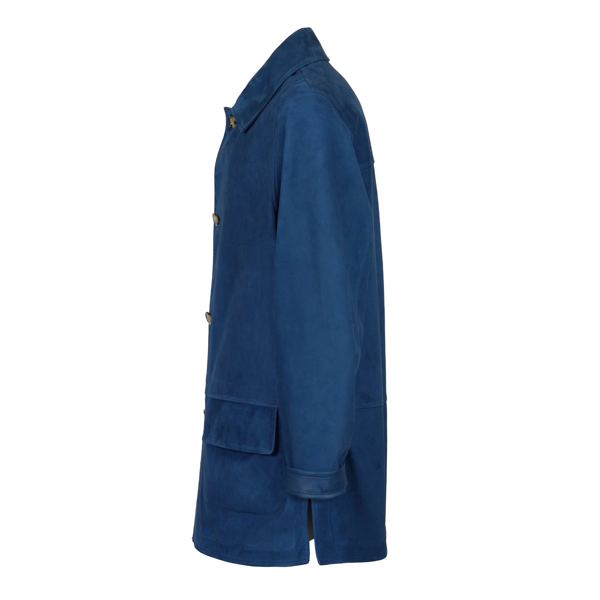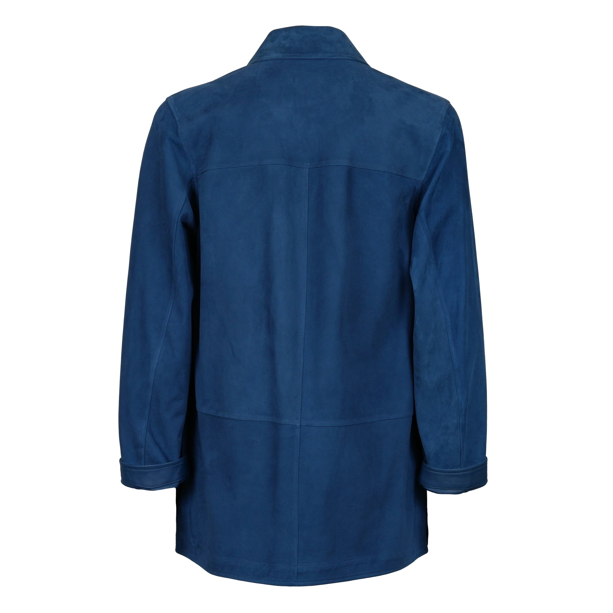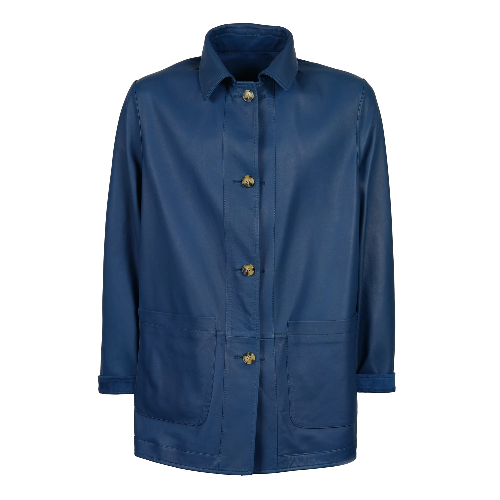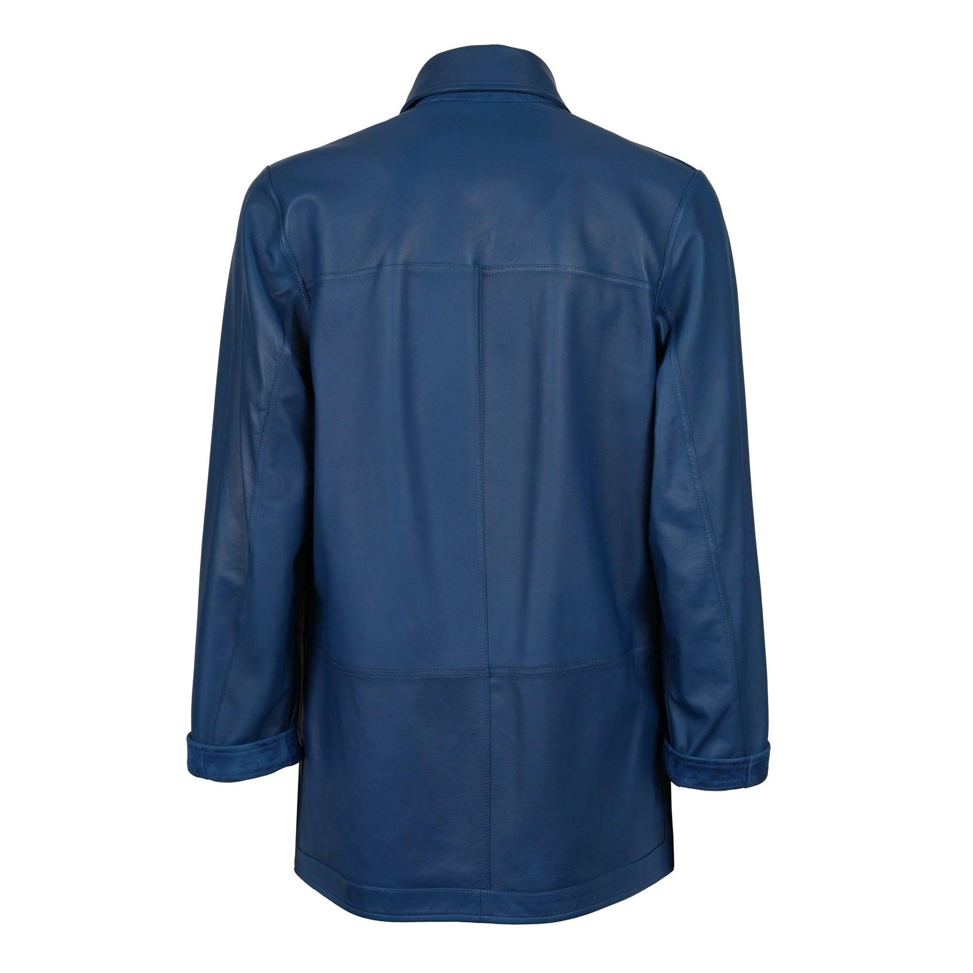 Men Pieno Fiore Reversible Long Leather Jacket in Blue
