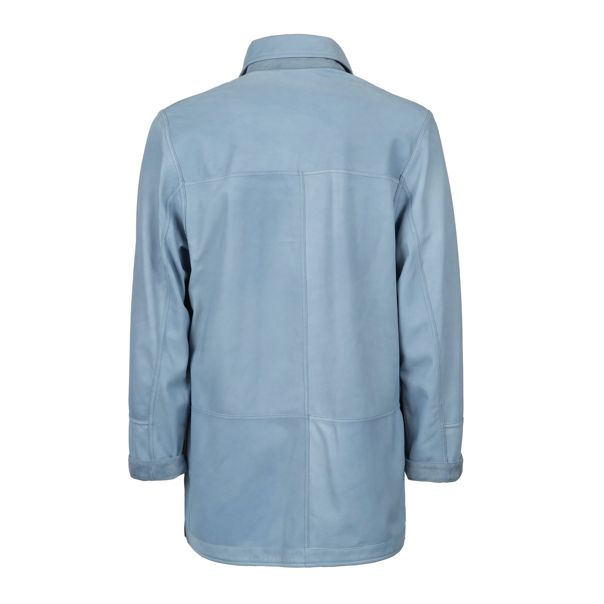 Men Pieno Fiore Reversible Long Leather Jacket in Blue Jeans