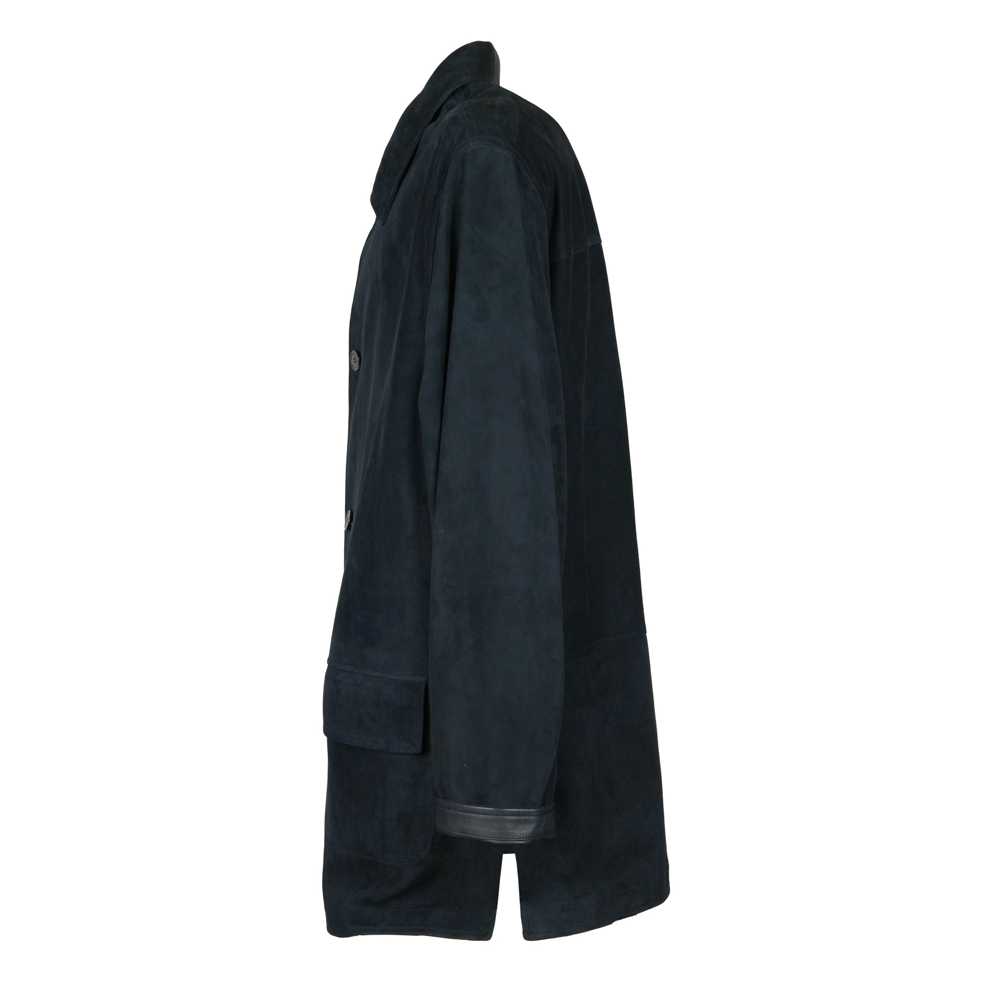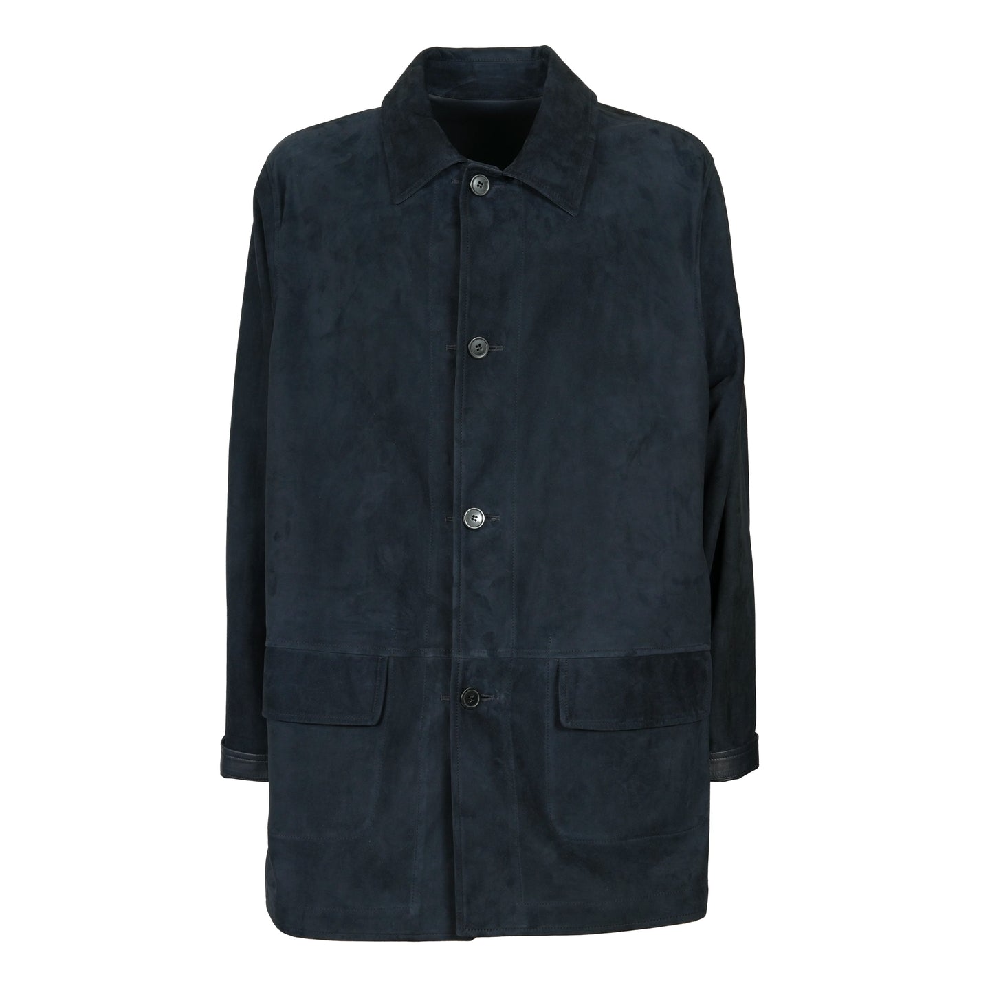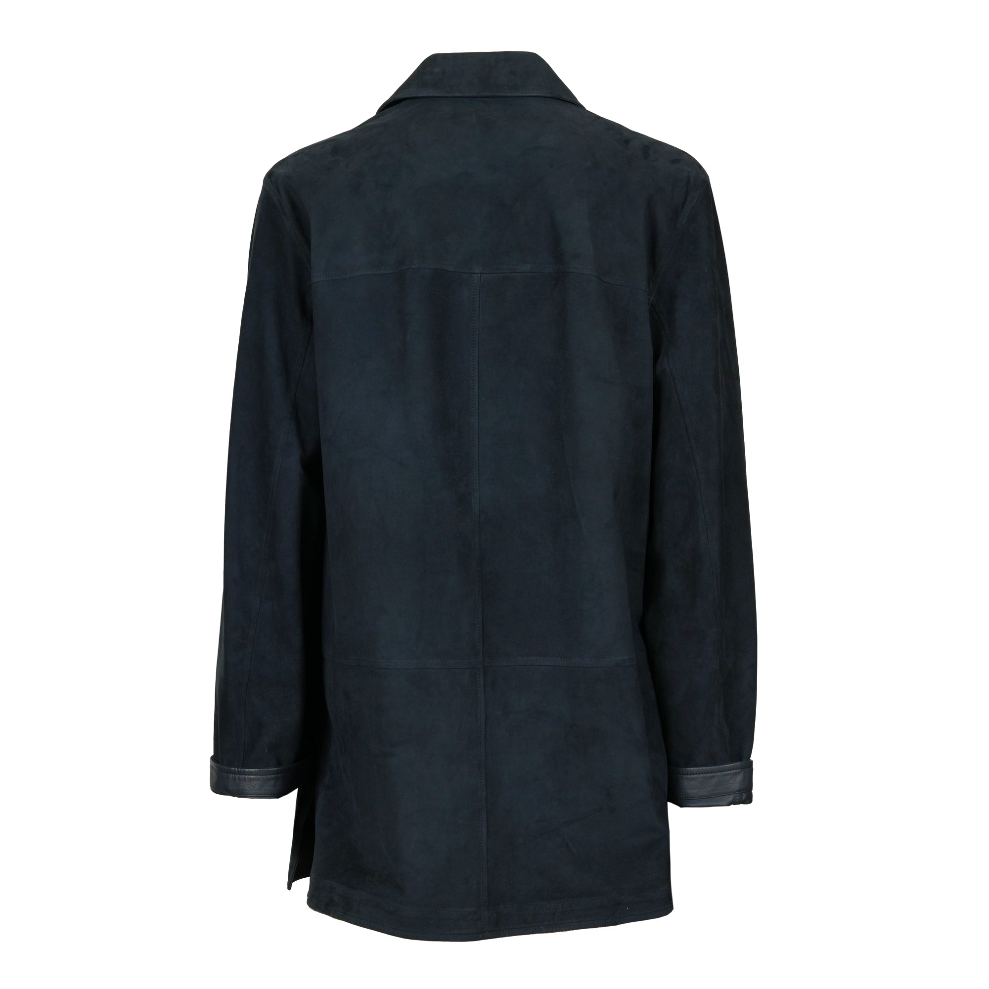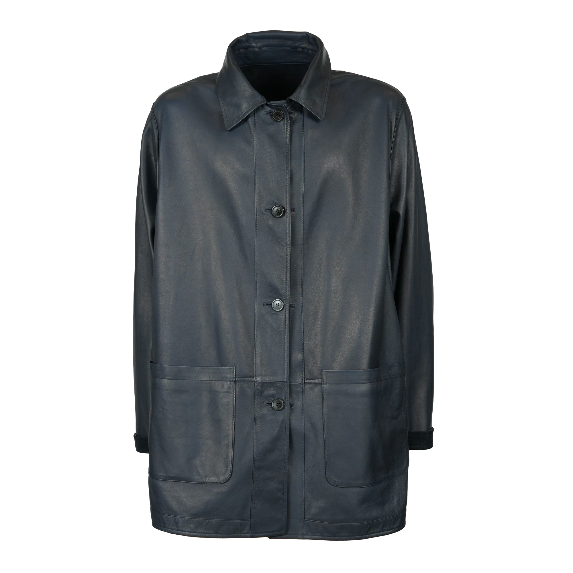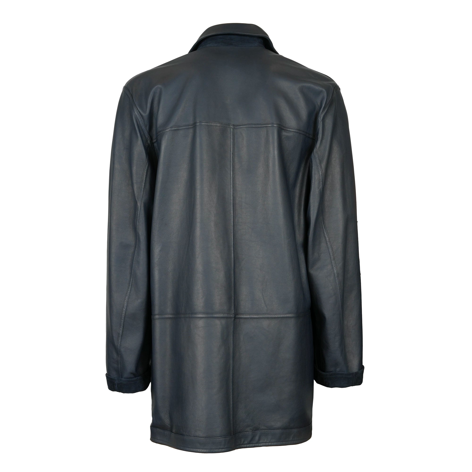 Men Pieno Fiore Reversible Long Leather Jacket in Night Blue