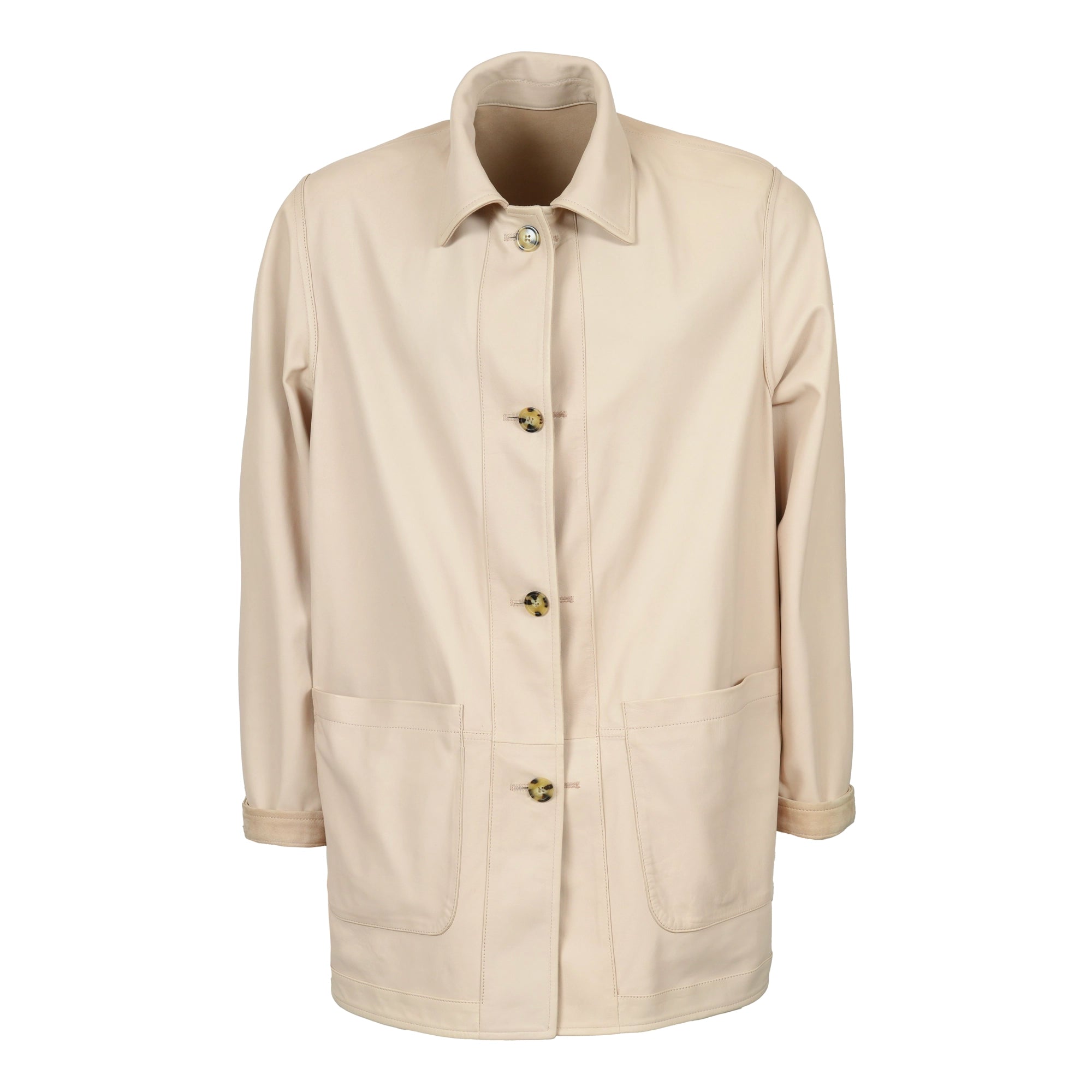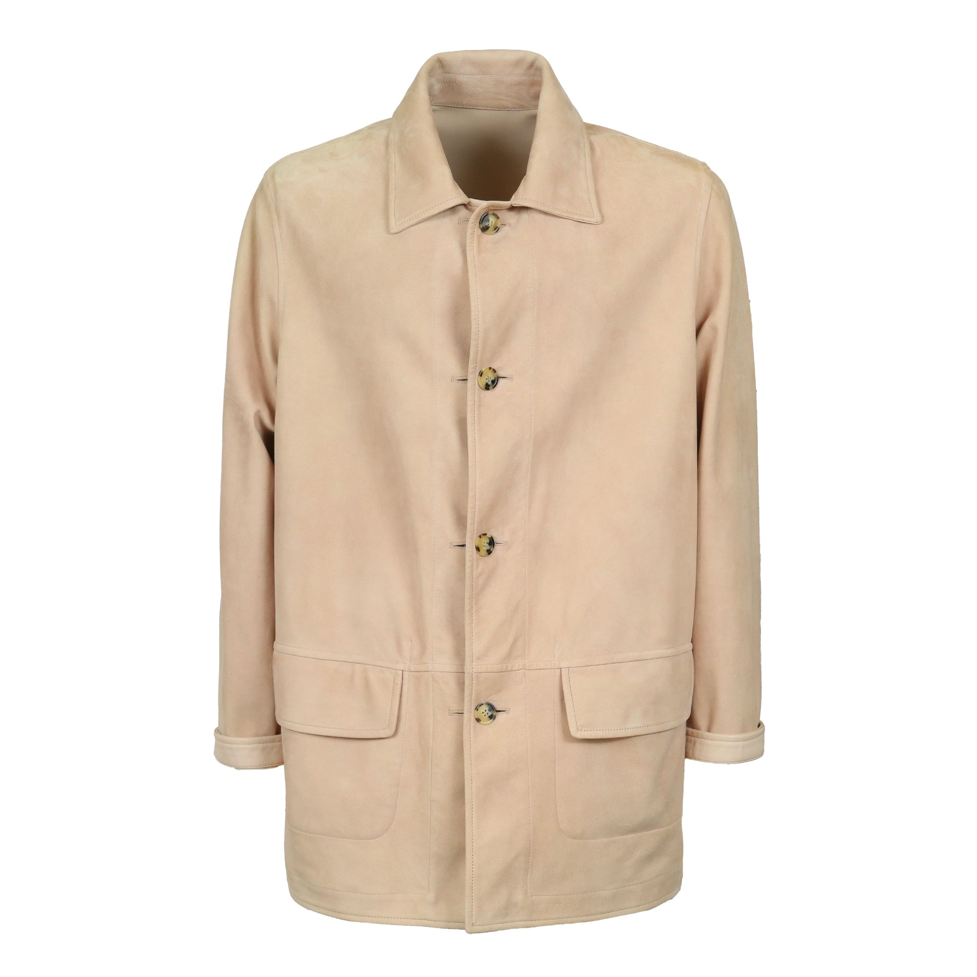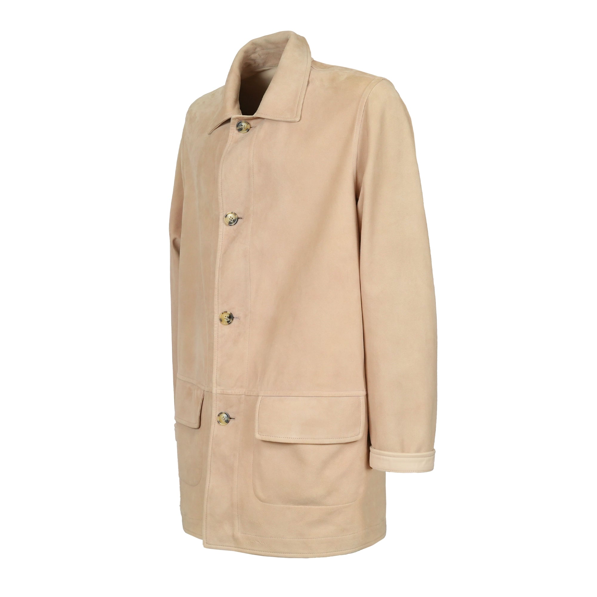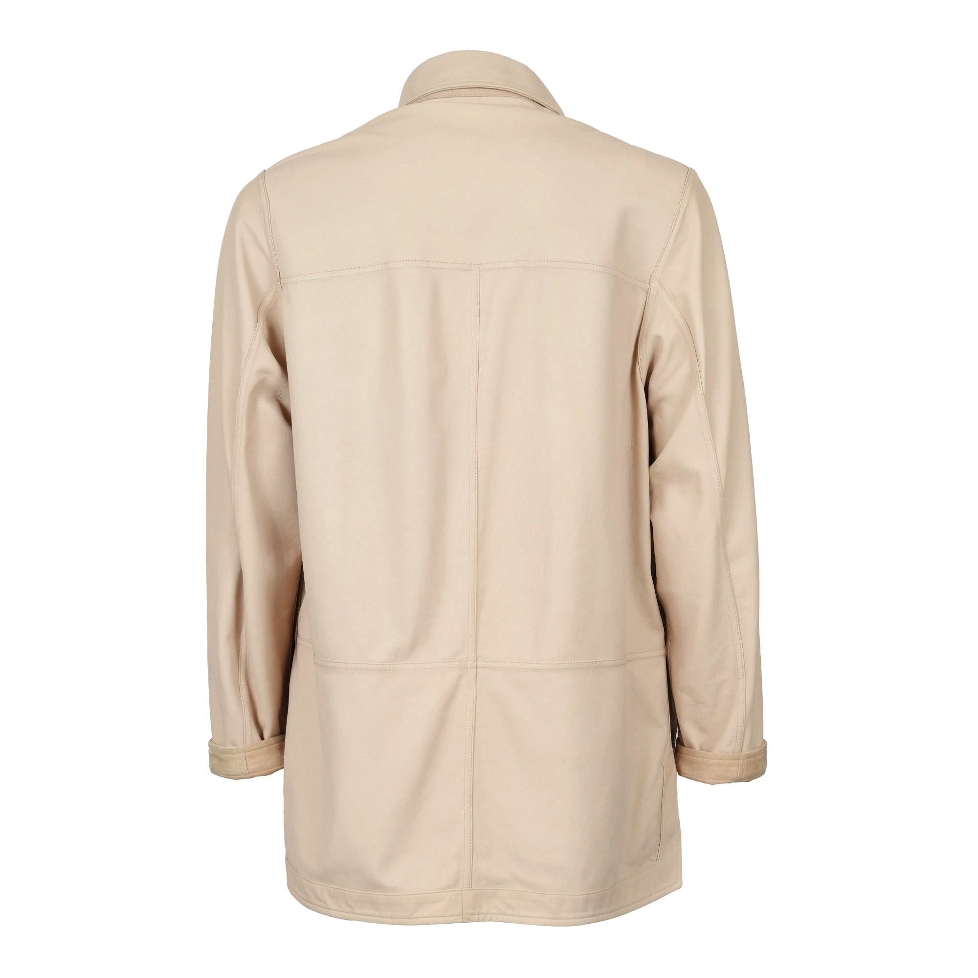Men Pieno Fiore Reversible Long Leather Jacket in Nude