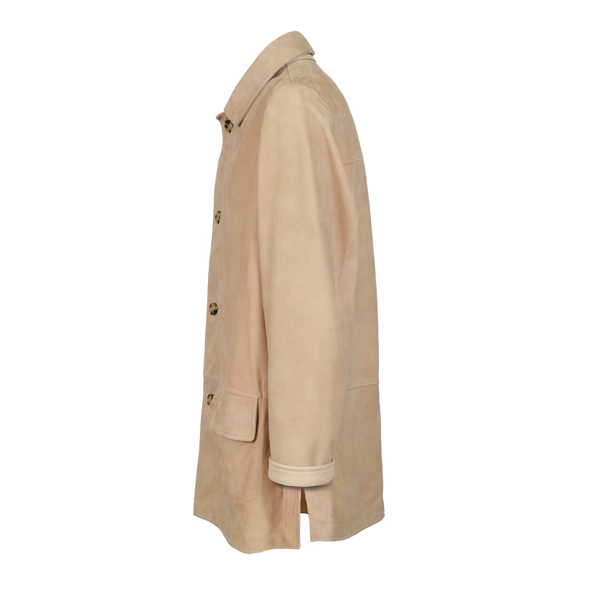 The long silhouette is tailored for a sleek and modern fit, while the clean structure and minimal detailing emphasize the sophistication of the material itself. Every seam is finished by Florentine artisans, ensuring lightness, balance, and durability without compromising luxury.