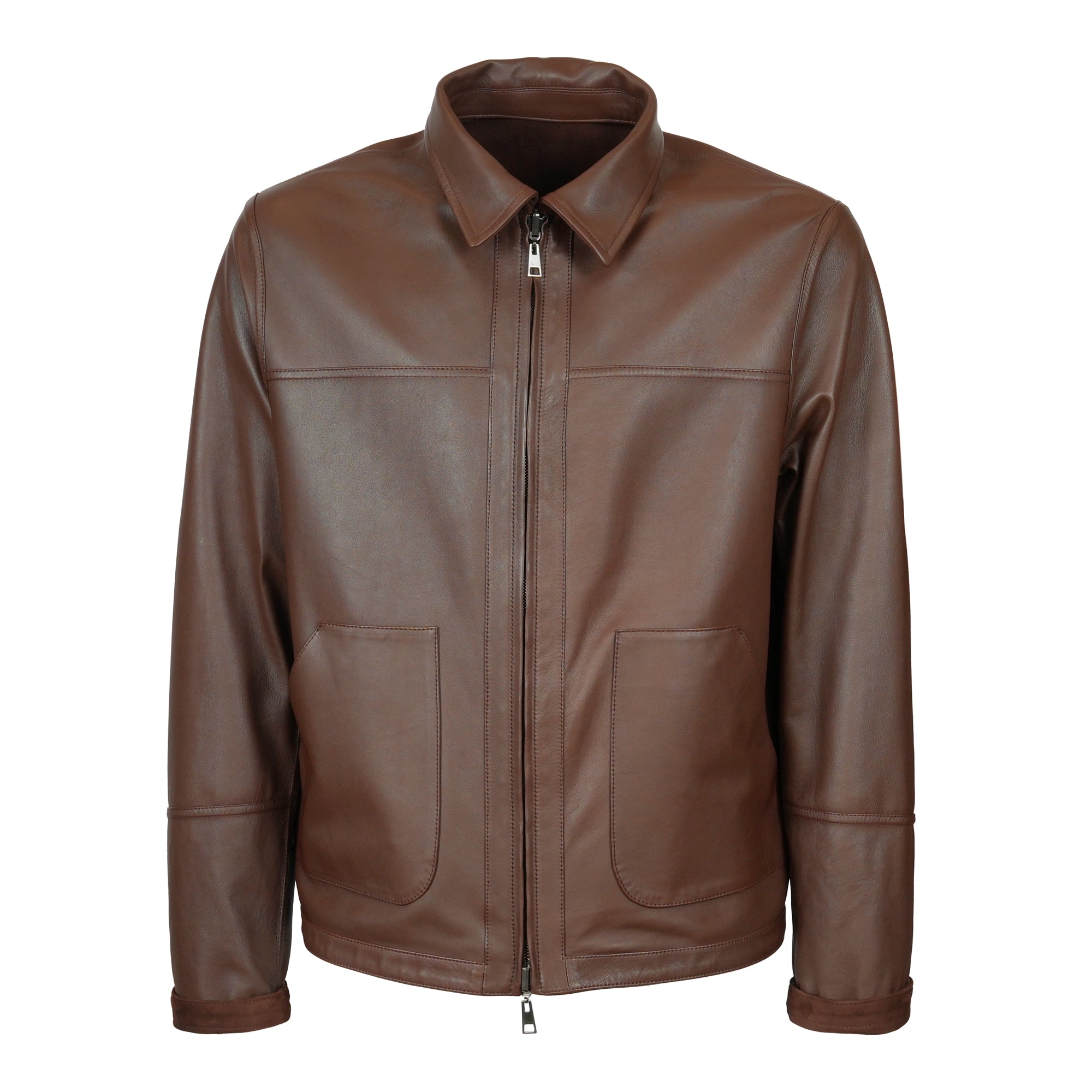 Men Reversible Pieno Fiore Short Leather Jacket in Testa di Moro