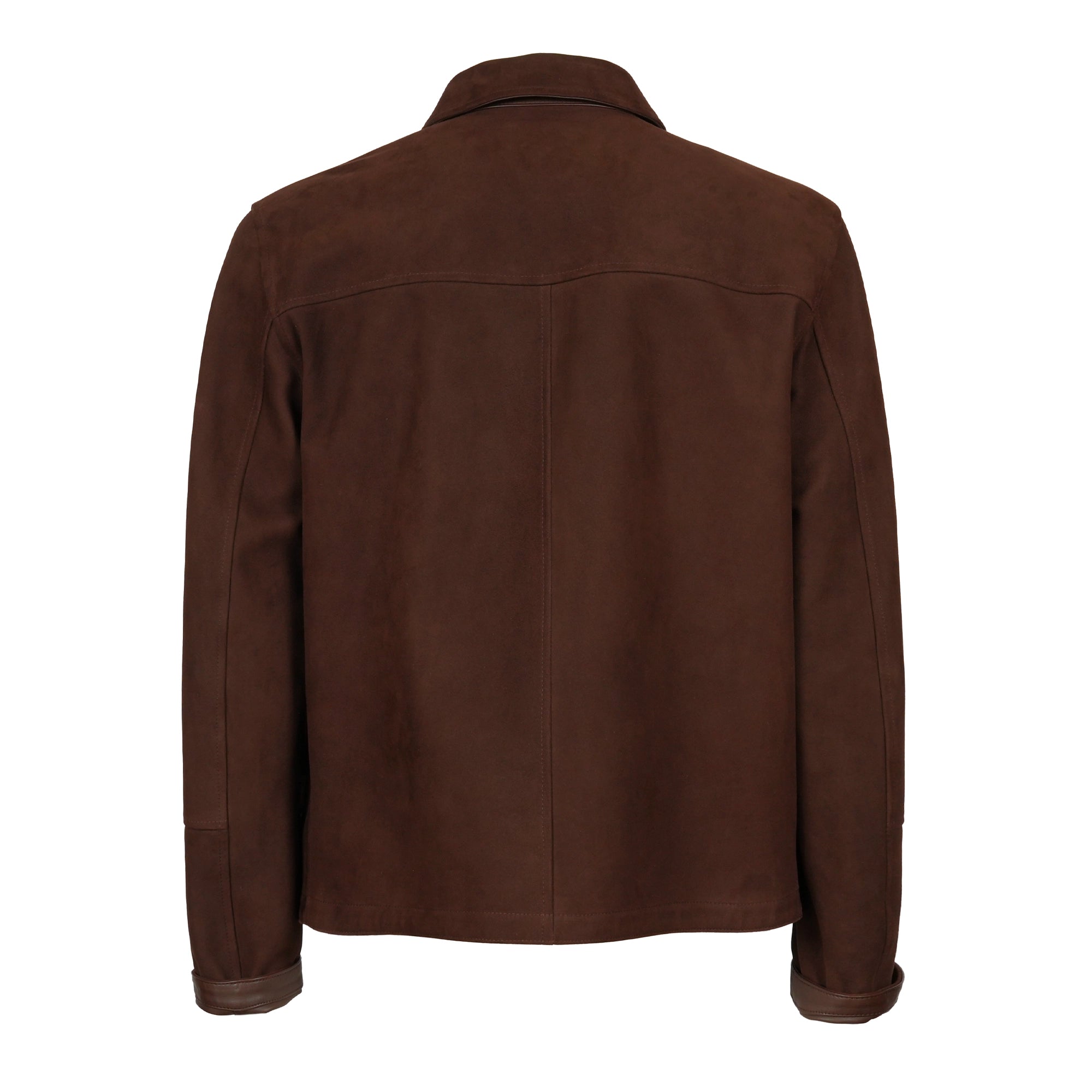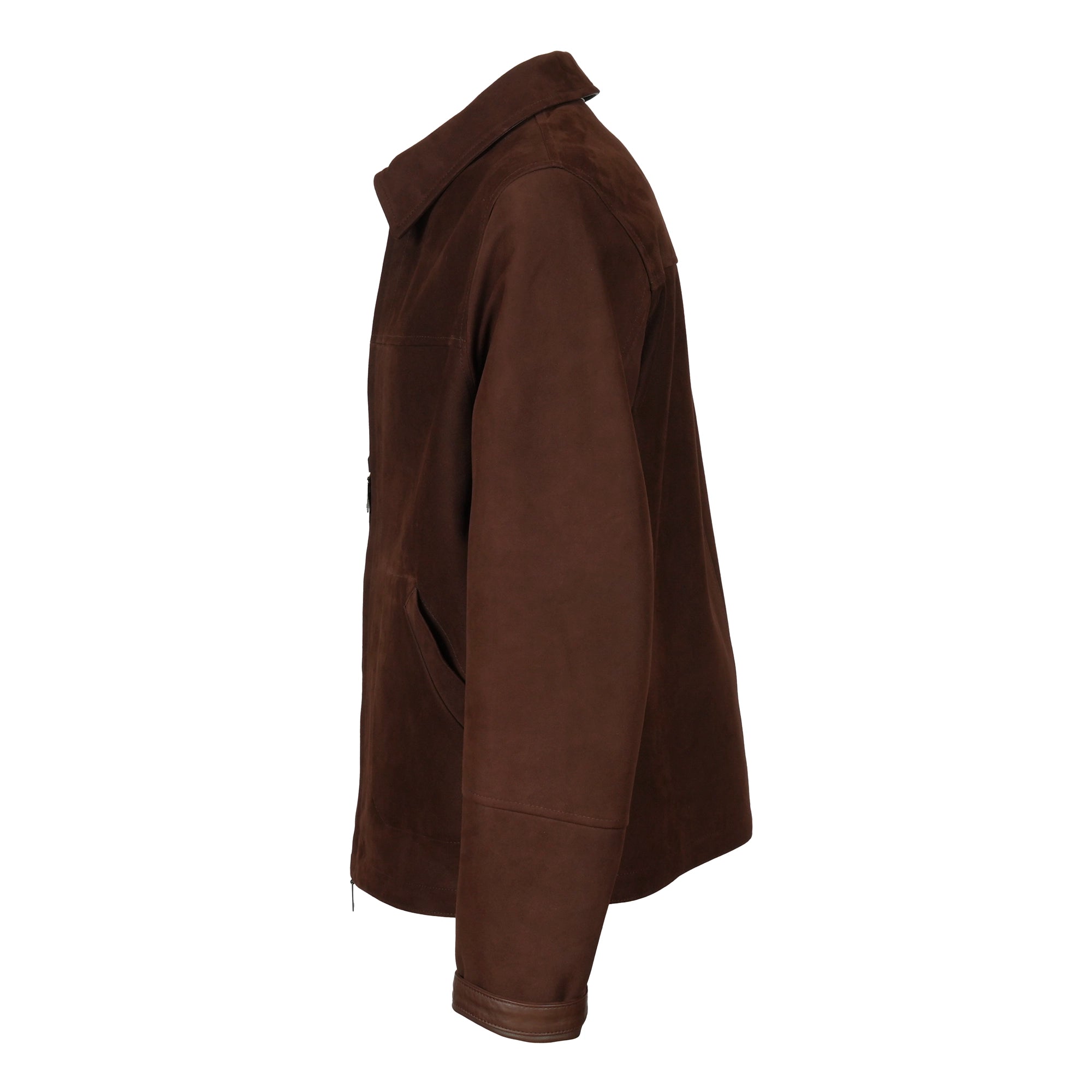 With a short, modern silhouette, the jacket balances casual ease with timeless refinement. Its zippered closure runs clean along the front, creating a sleek frame, while two external pockets offer both practicality and balance to the design. The brilliance lies within: its reversible construction, allowing the man who wears it to move effortlessly between two worlds — one side bold and burnished in Suede, the other discreet and understated in Leather (we call it Nappa).