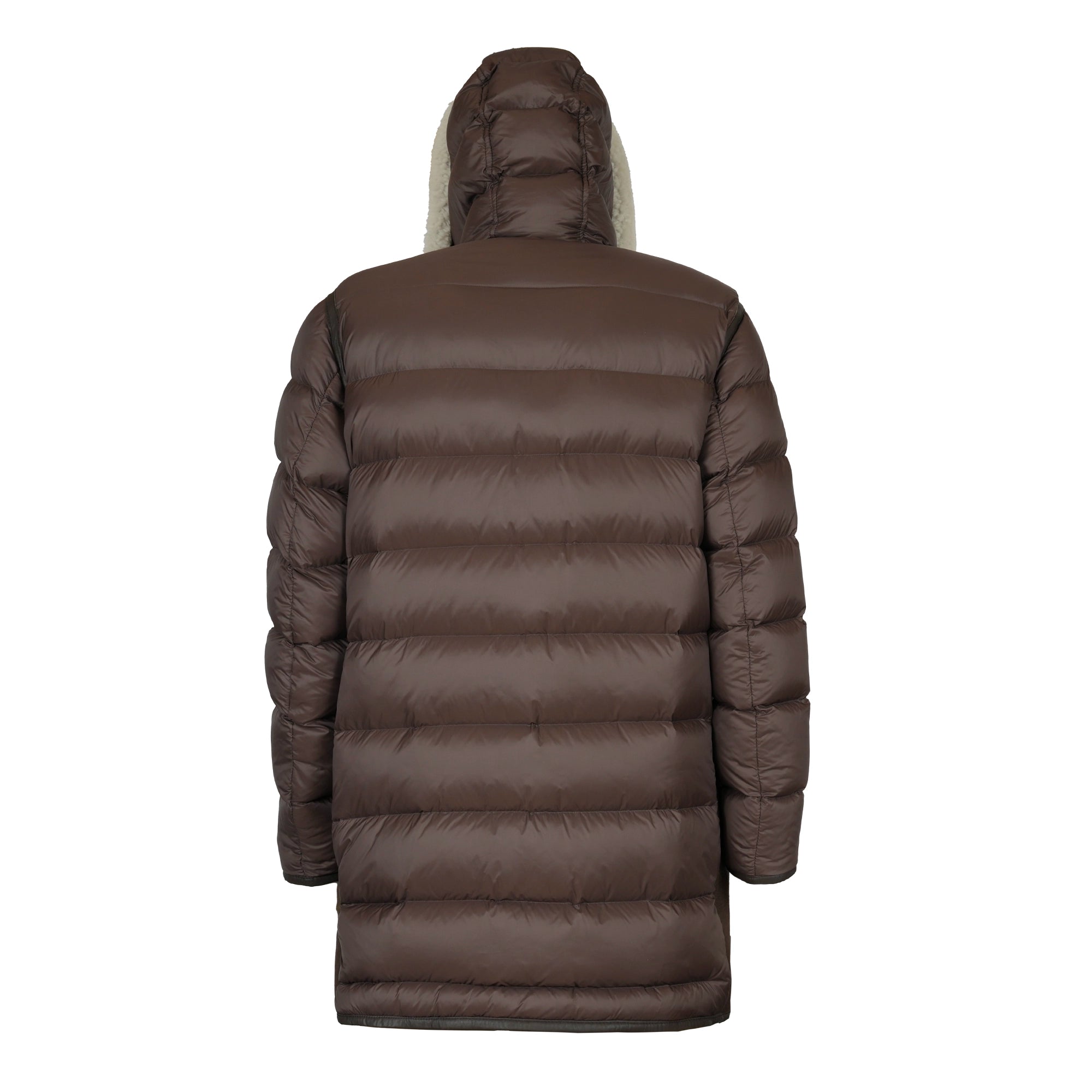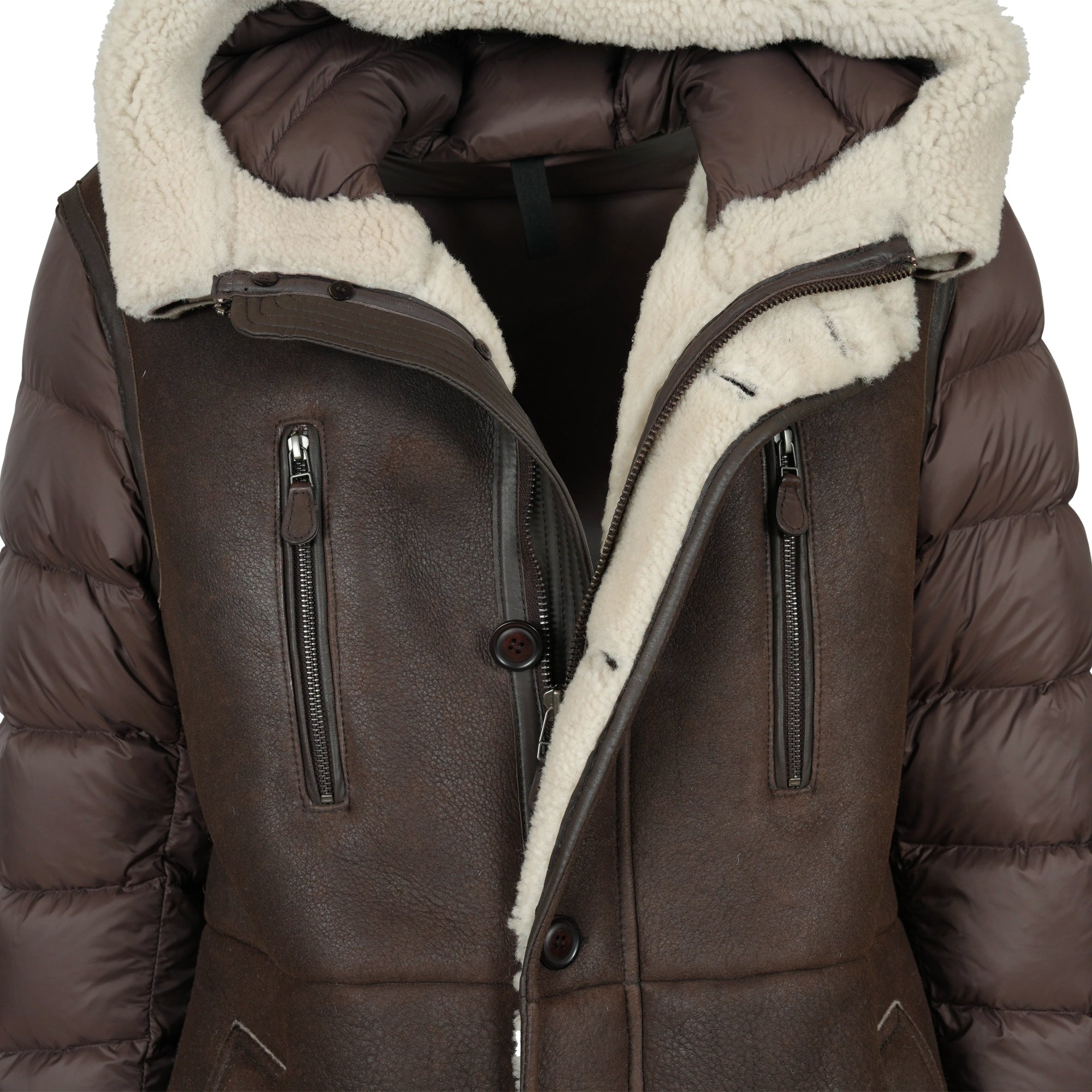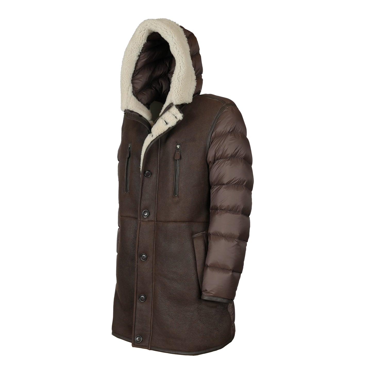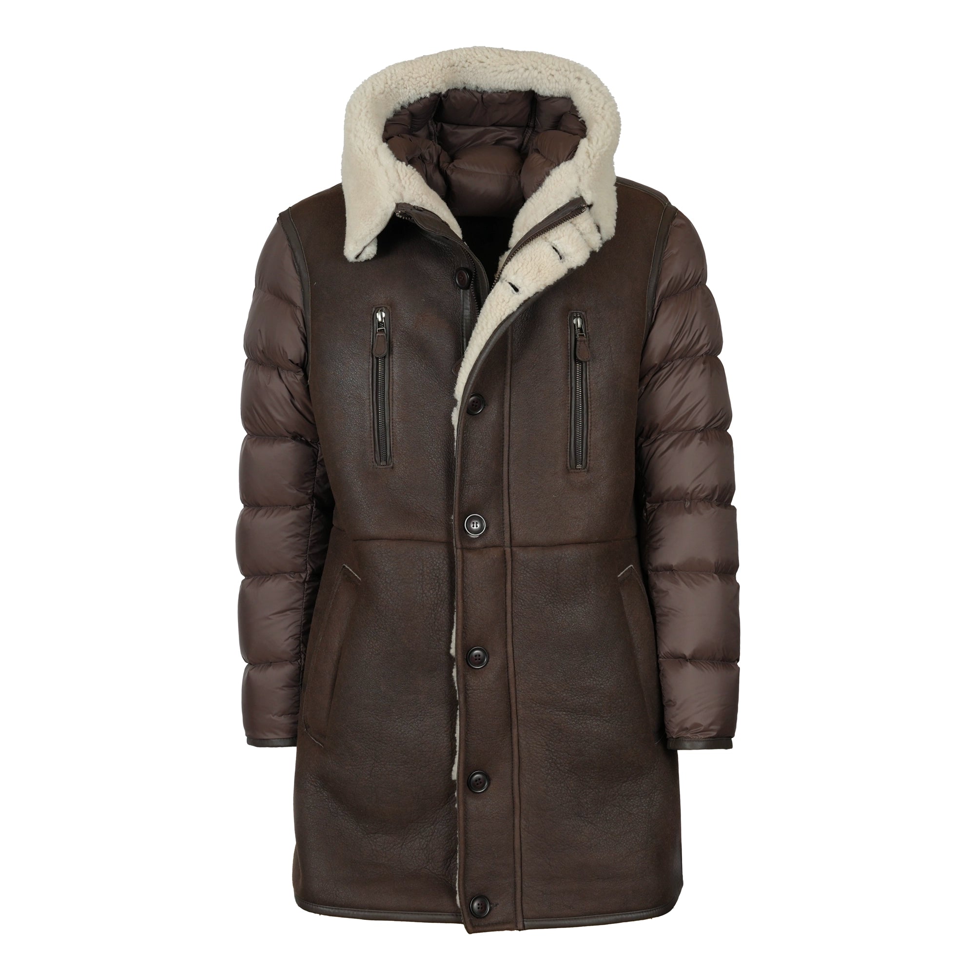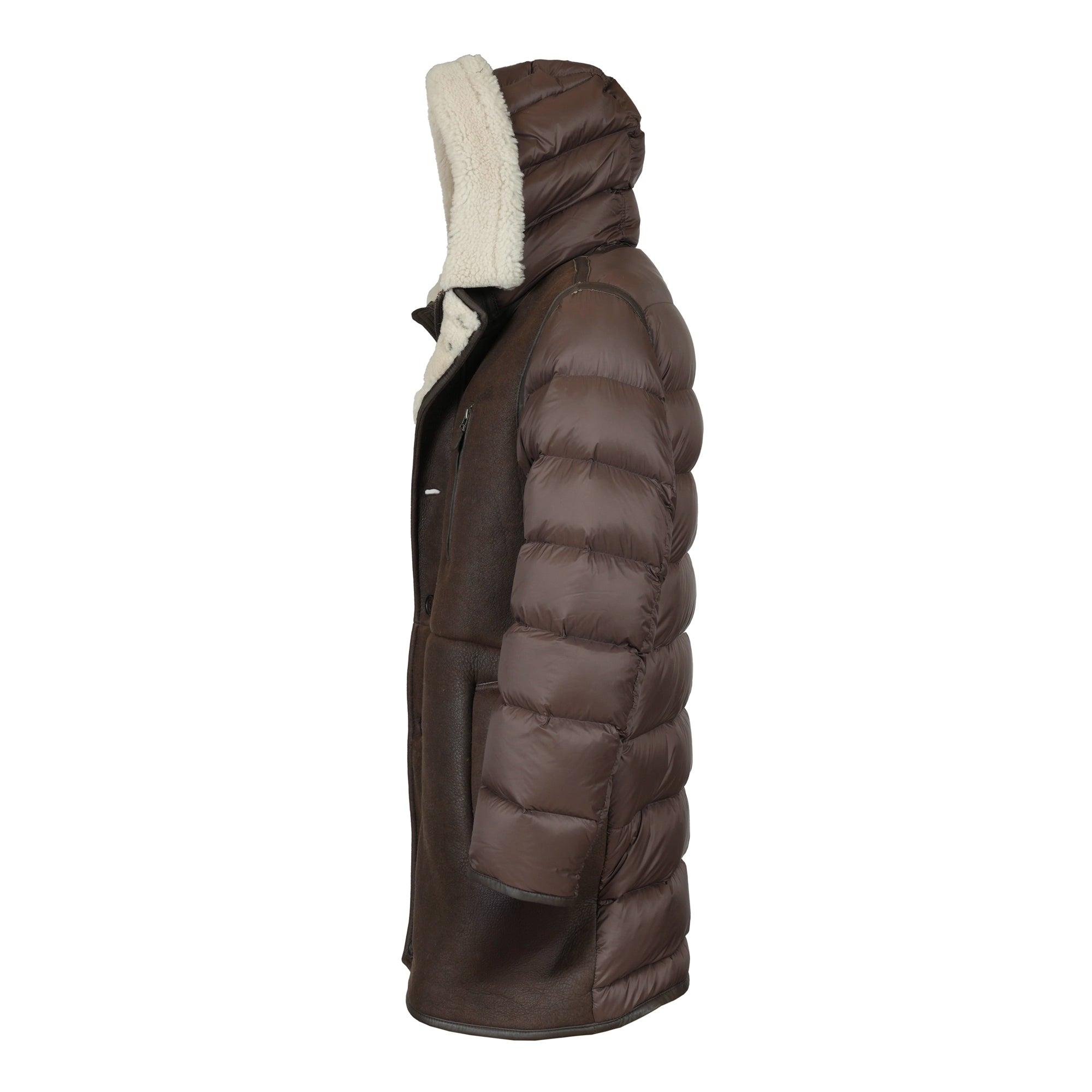 Men’s Leather Shearling and Down Long Jacket in Brown