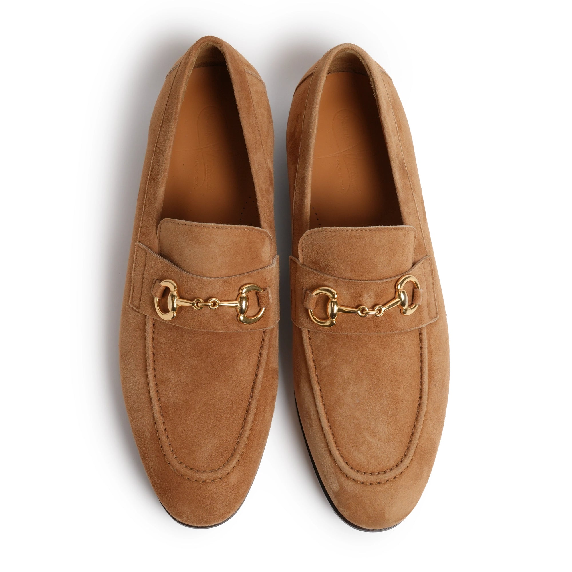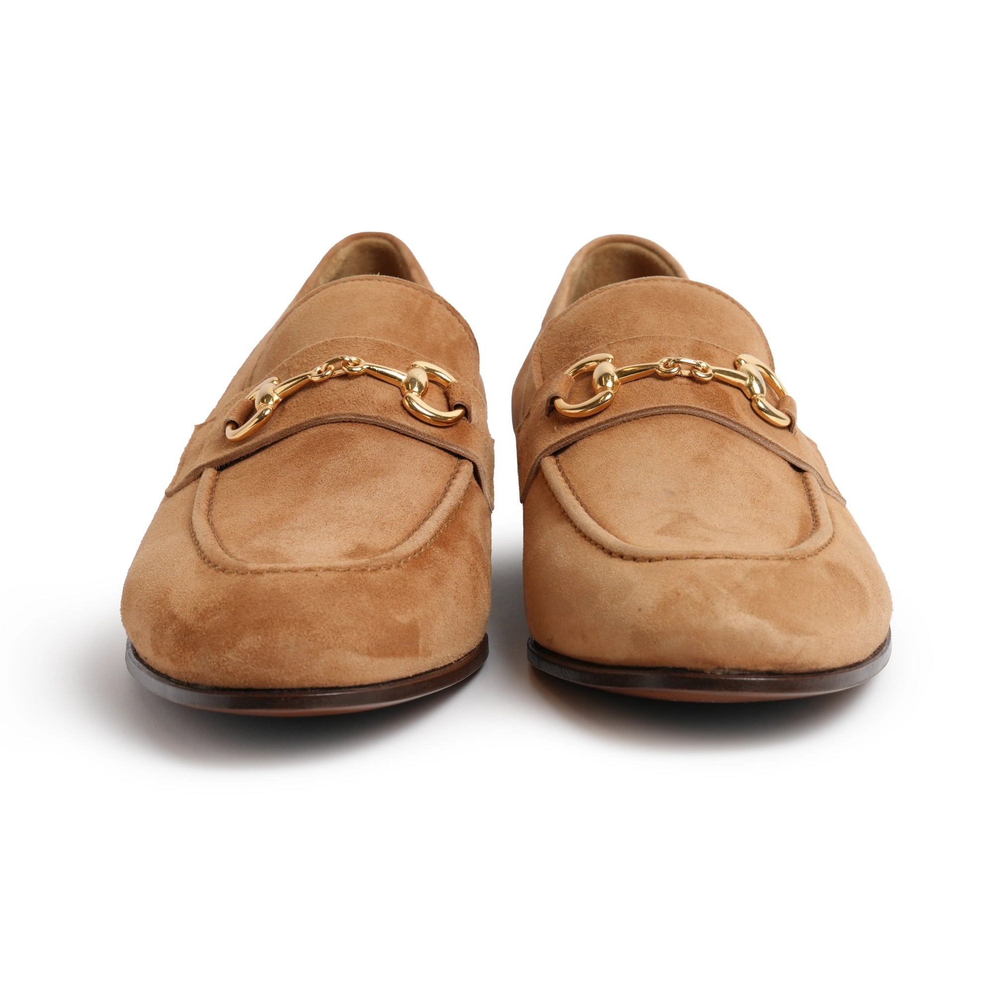 The upper features an apron toe and a polished metal horsebit, bringing subtle elegance to the design. The suede is lightly brushed for a velvety finish, while the structure remains soft and flexible for comfort throughout the day.