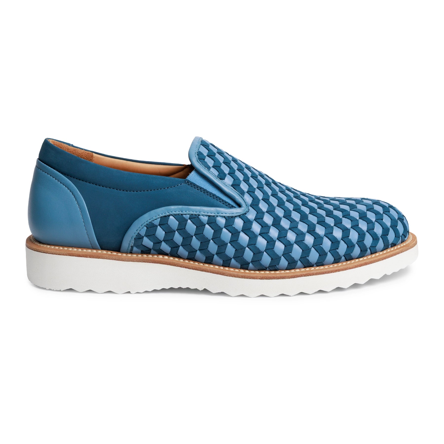 These Men's Slip-On Leather Shoes in Softy Blue Jeans are a stylish and versatile footwear option crafted in Italy with an intrecciato upper sole.