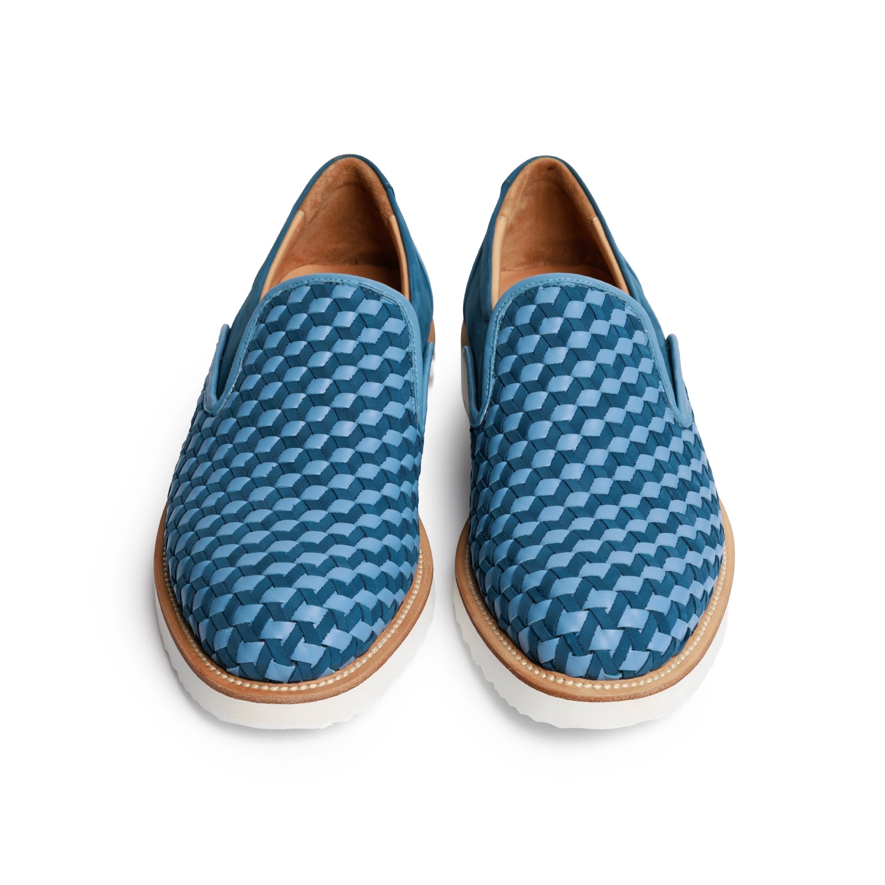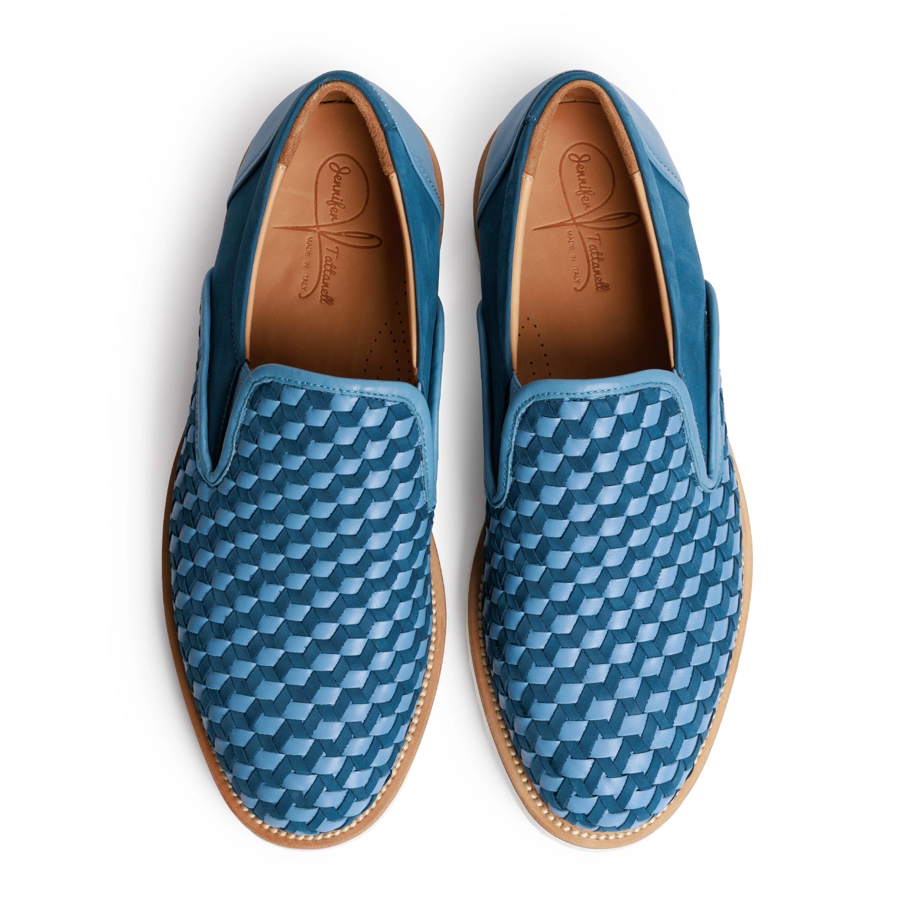 Men Slip On Intrecciato Leather Shoes in Softy Blue Jeans