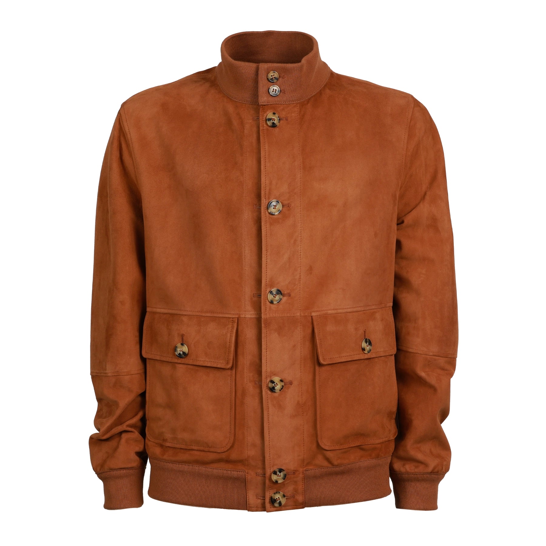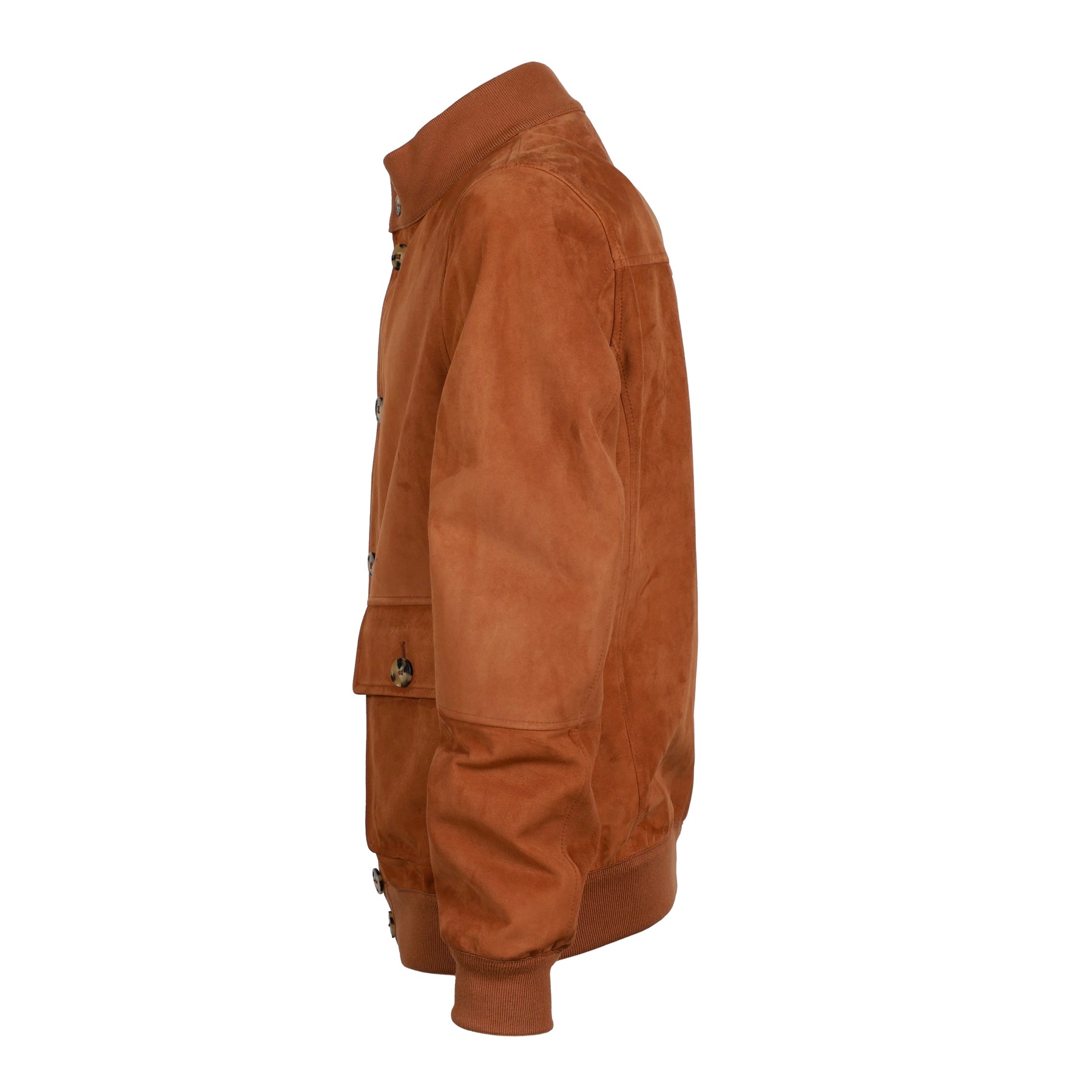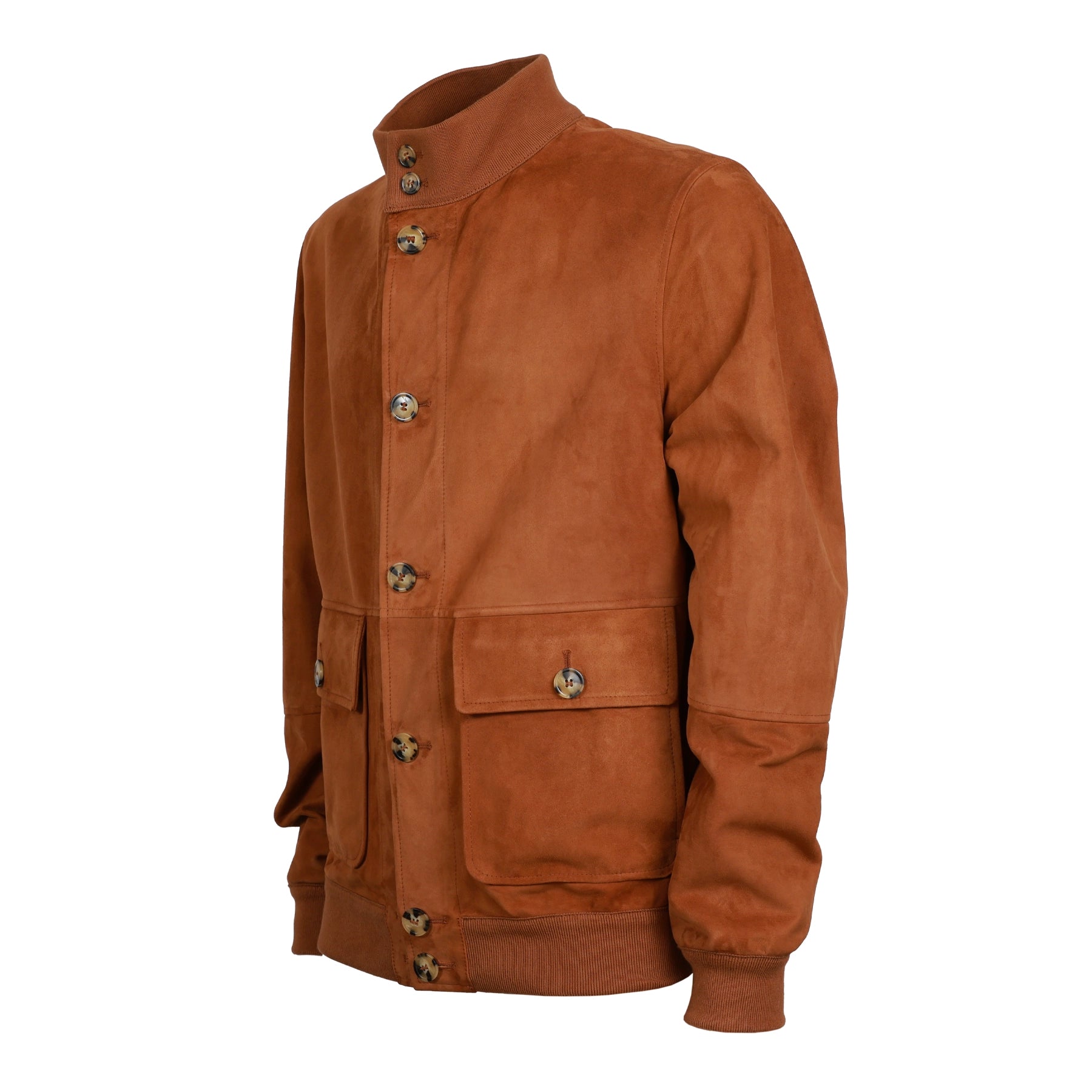 Men Suede Button-Up Bomber Jacket in Bruciato Tan