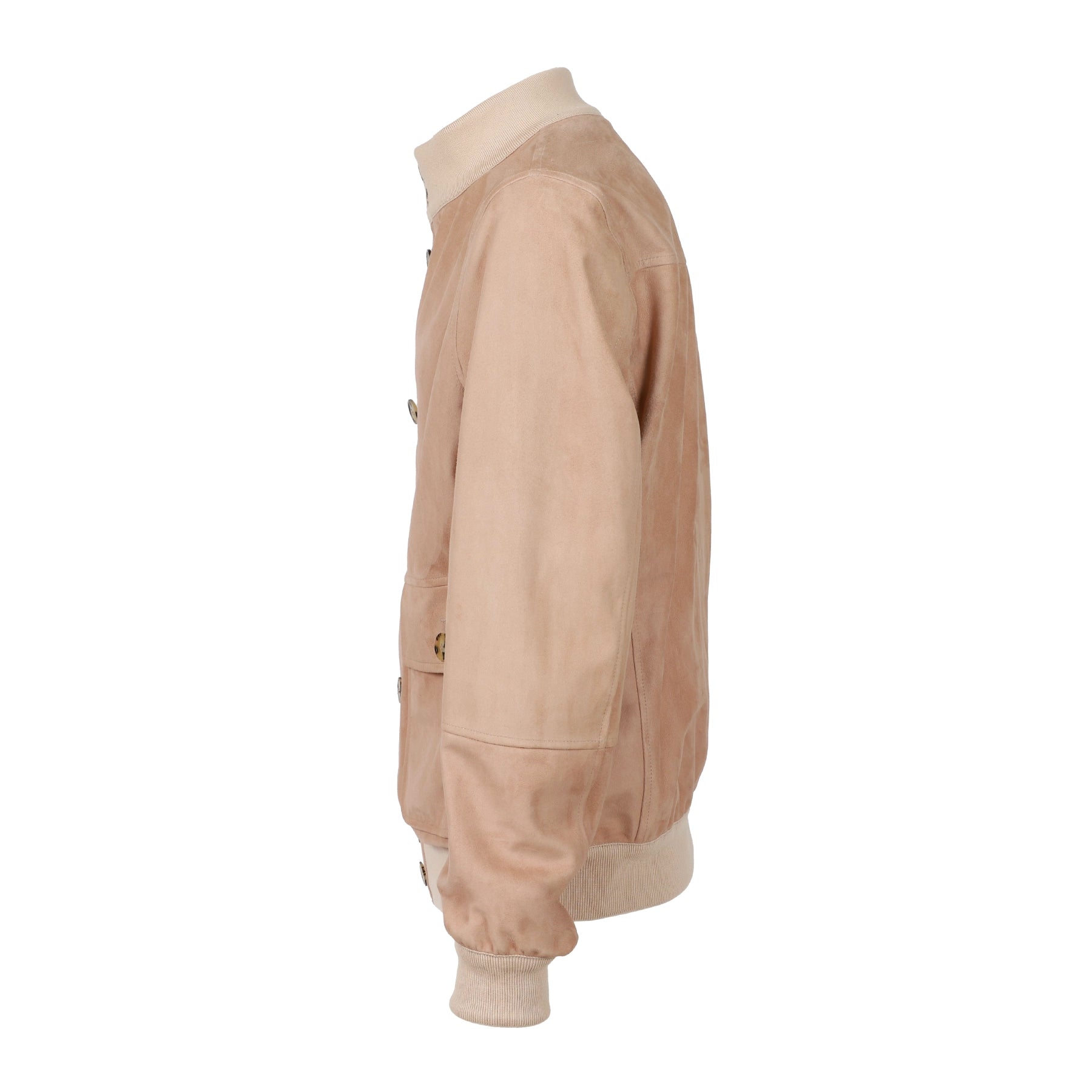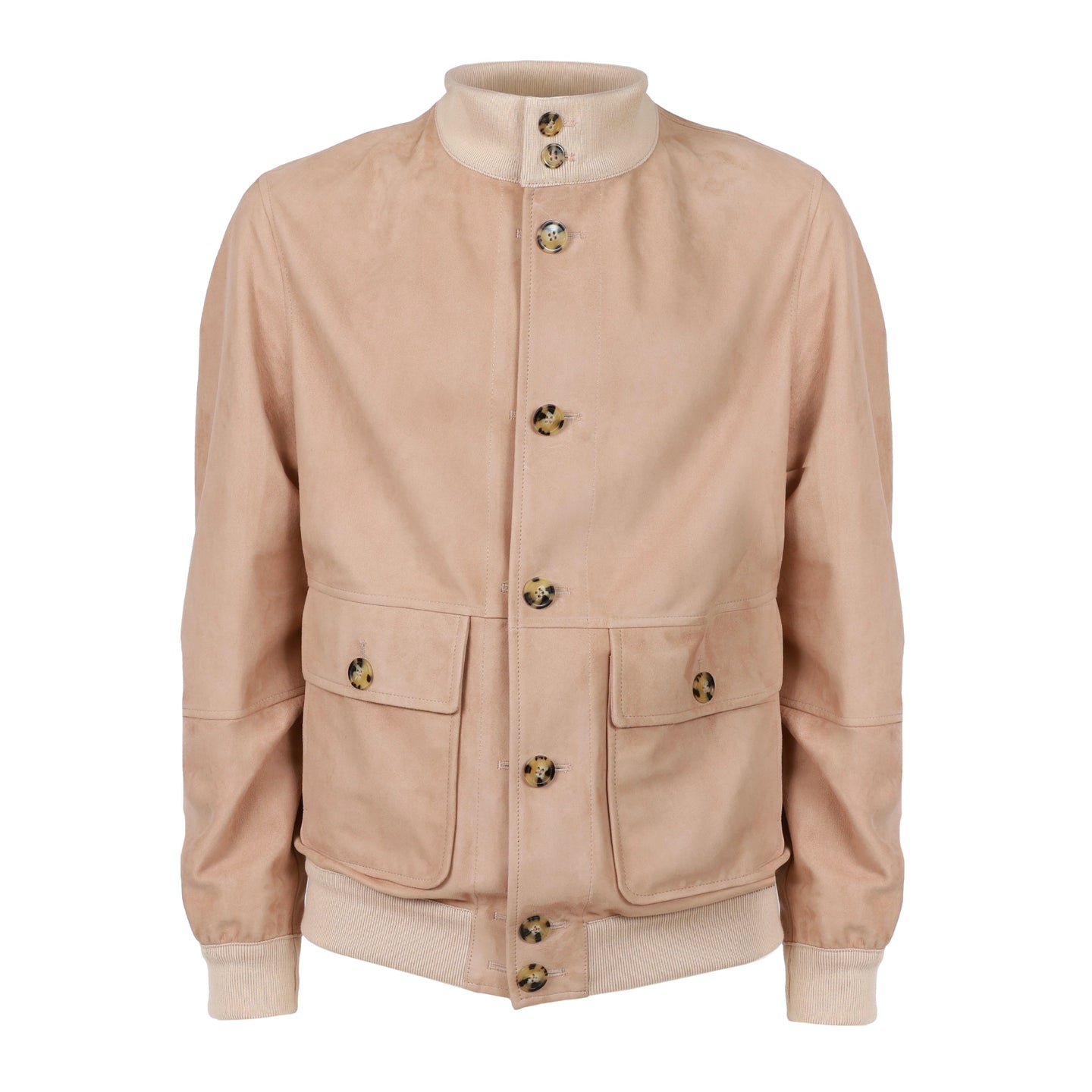 Style this suede bomber jacket with neutral chinos or tailored trousers for a clean, contemporary look, or pair it with dark denim for relaxed sophistication. It works beautifully layered over a lightweight sweater, polo, or crisp shirt. Complete the outfit with leather sneakers or suede loafers for a cohesive, elevated finish. The Sabbia shade pairs especially well with whites, soft greys, olive, and muted blues.