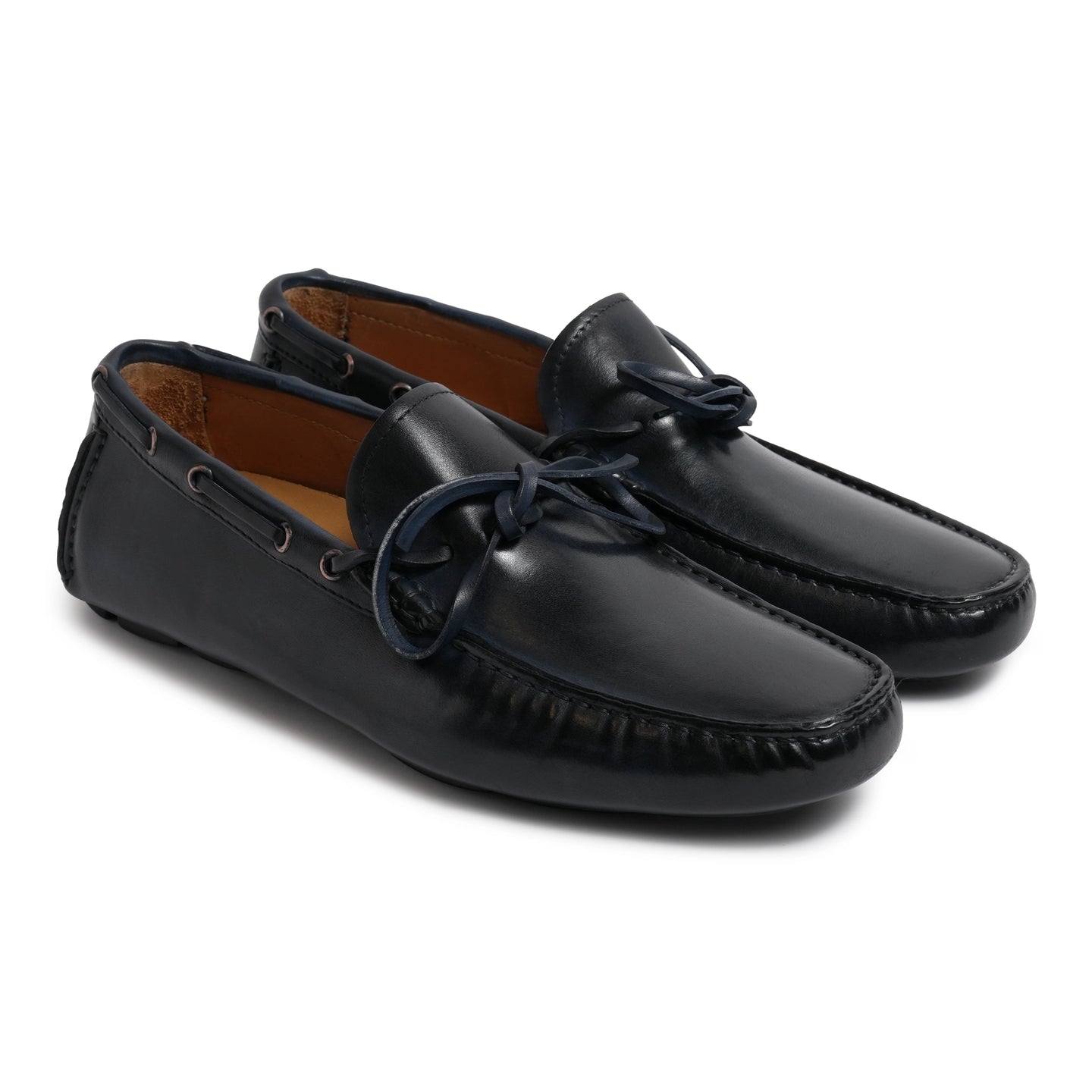 Men's Driving Lace-Through Leather Shoes in Dark Blue