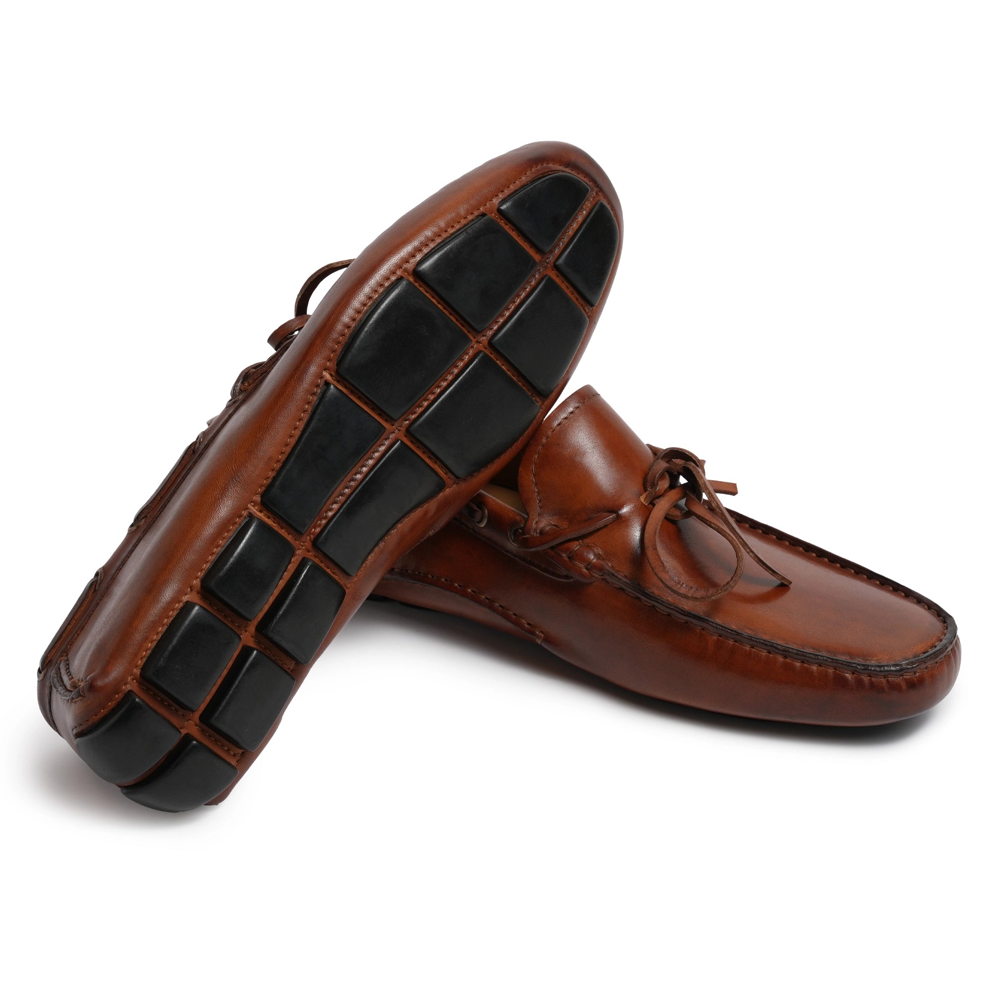 The lace-through construction and soft moccasin stitching ensure flexibility and fit, while the rubber driving sole provides traction and ease of movement. Each detail, from the rounded toe to the hand-burnished edges, reflects the precision and artistry of Florentine ateliers.