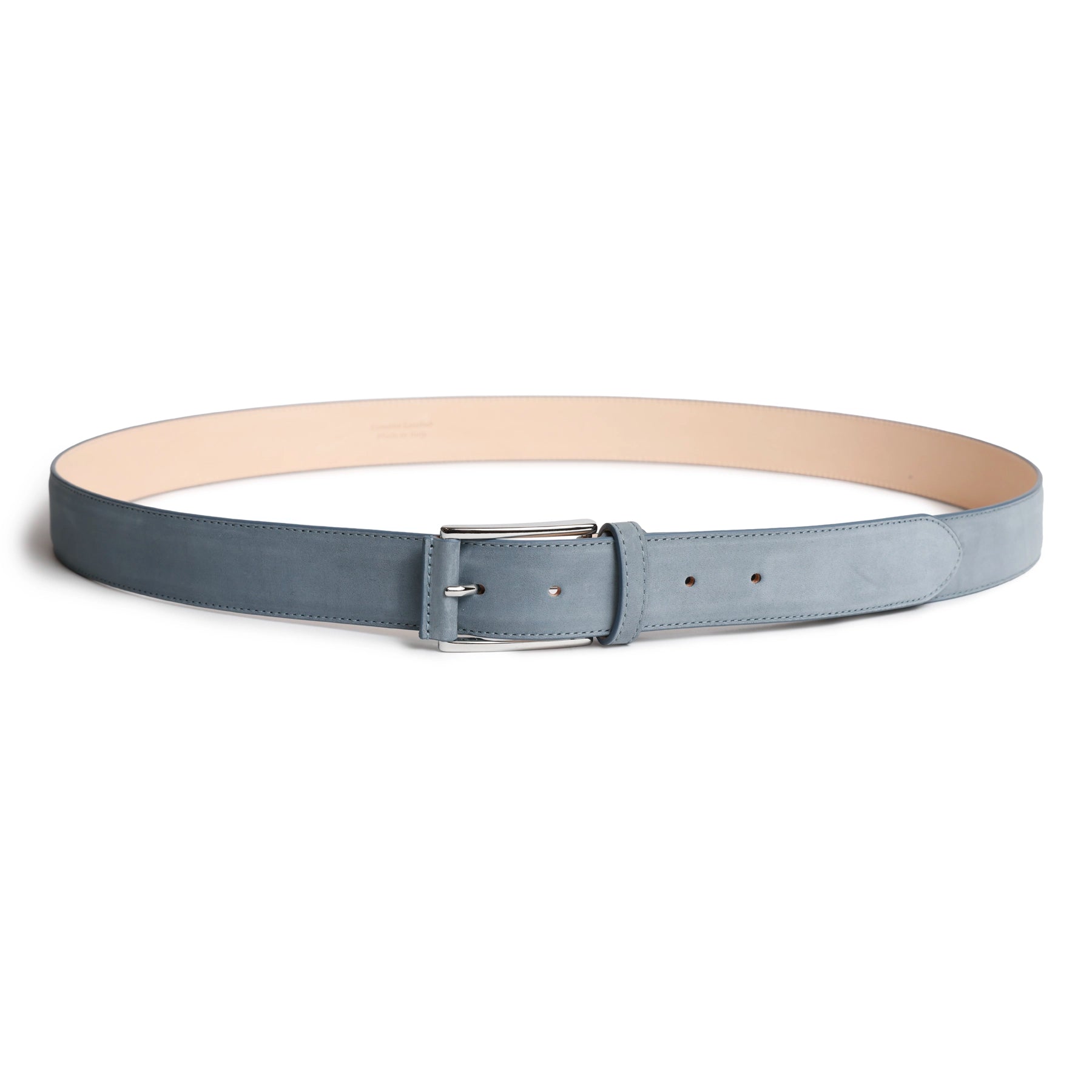 Refined yet relaxed, the Men’s Nabuk Leather Belt in Pearl Blue is crafted from soft, velvety nubuck leather that brings depth and texture to a classic accessory. The suede-like finish offers a matte elegance, while the cool blue tone introduces a fresh, modern alternative to traditional neutrals. Clean edges, tonal stitching, and a sleek polished buckle complete the design with understated precision.