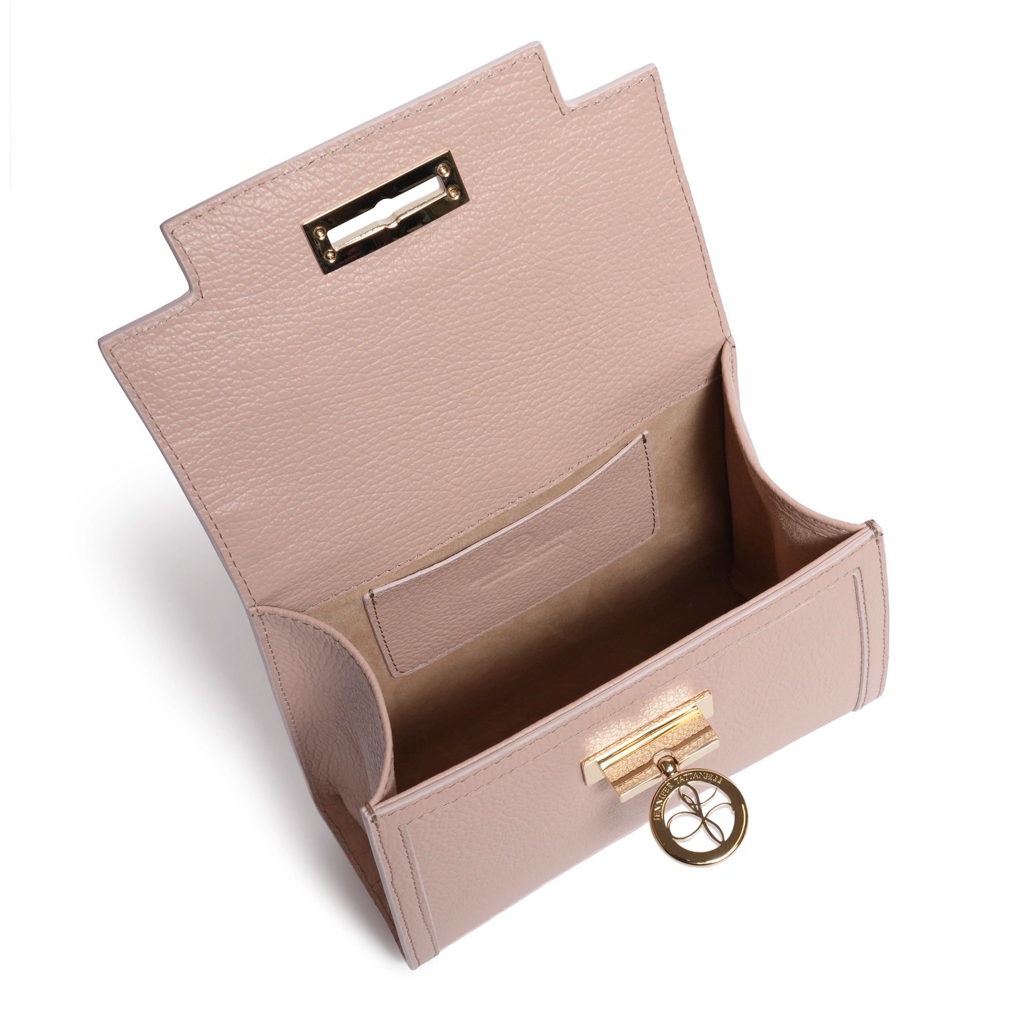 Introducing the Mini Holly Top Handle Deer Leather Bag in Cipria (powder Rose), a timeless addition to your accessory collection. Crafted with the finest Italian Nappa leather, this exquisite bag exudes understated elegance and sophistication.
