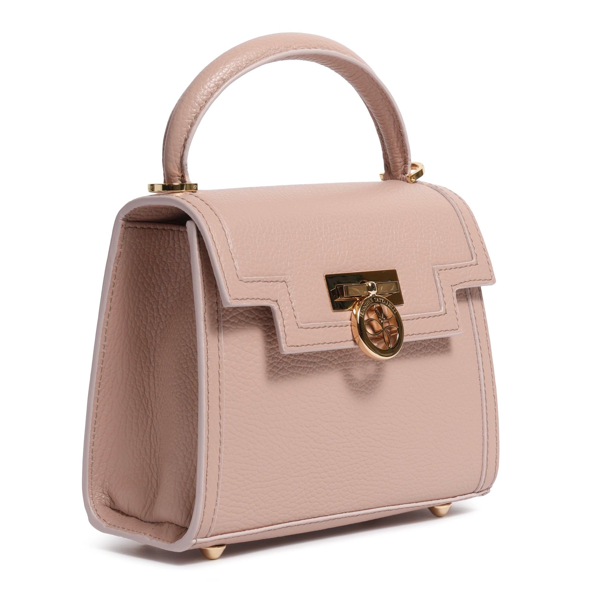Mini Holly Top Handle Deer Leather Bag in Cipria