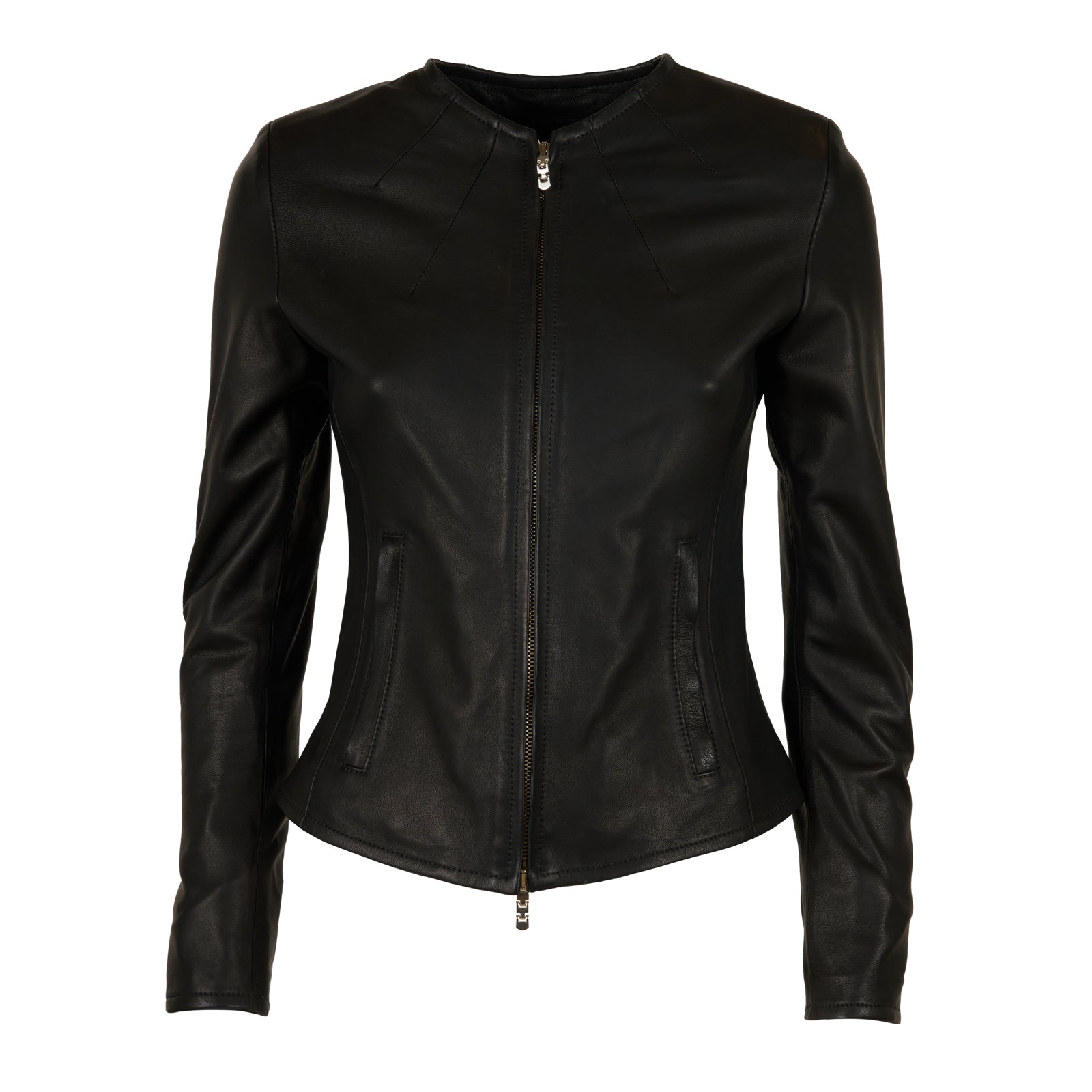 Natasha Short Leather Fitted Jacket in Nappa Black