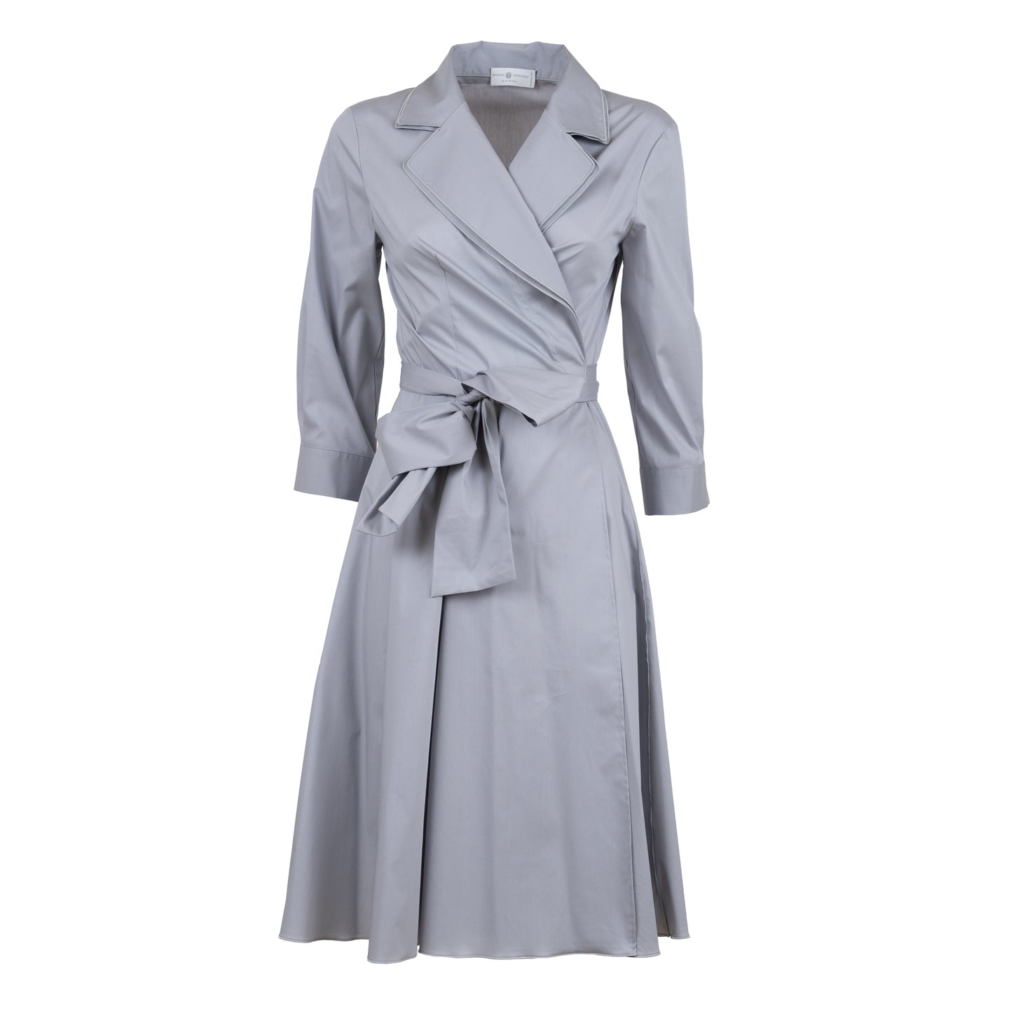 Wrap yourself up comfortably and stylishly in the Women's Roosevelt Dress - a stretch cotton garment handmade in Italy with expert techniques. The collar features double material, leading down to a belted waist and 3/4 length sleeves.