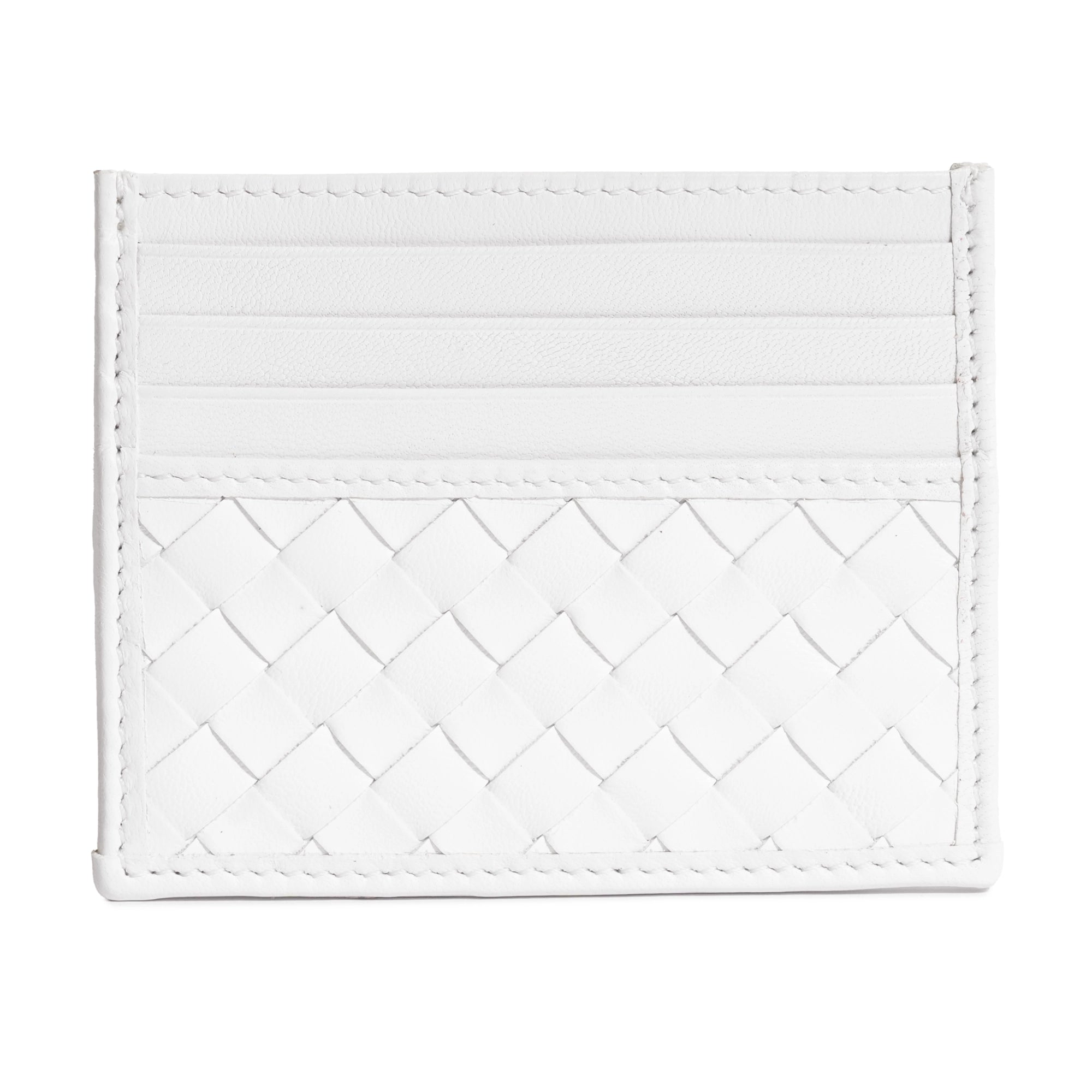 Sophisticated and streamlined, this slim credit card holder is expertly crafted in supple White Nappa Leather, enriched by the signature Intrecciato weave and finished in a striking hue. The iconic woven texture is not just a symbol of timeless Italian craftsmanship—it also enhances the leather’s durability and flexibility, giving the piece a tactile richness and visual depth that stands out in subtle luxury.