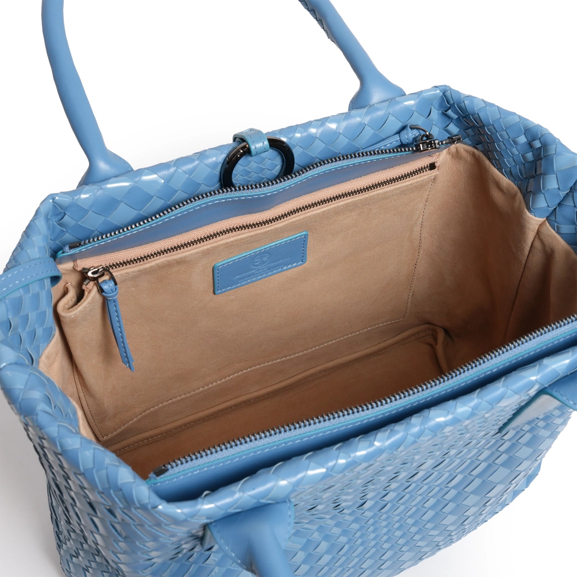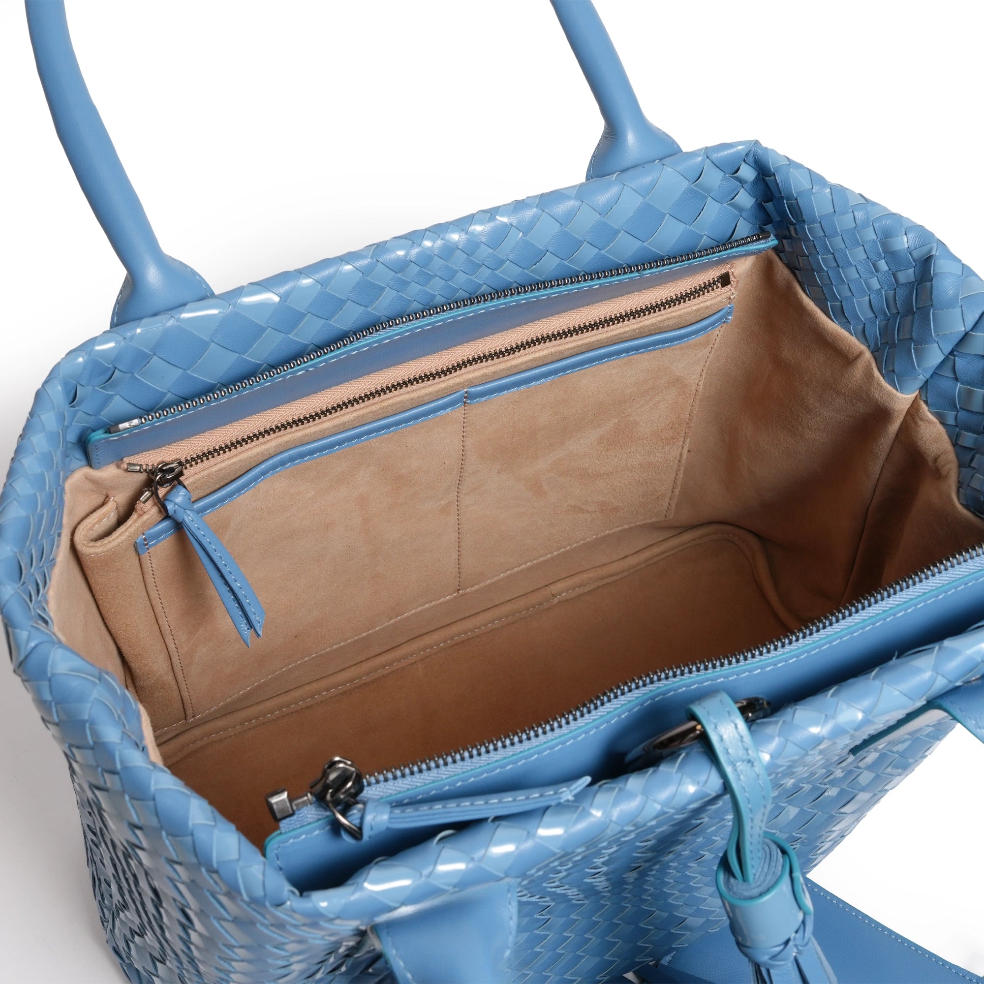 Sophia Intrecciato Optical Zippered Shopping Bag in Nappa and Patent Leather Marino Blue