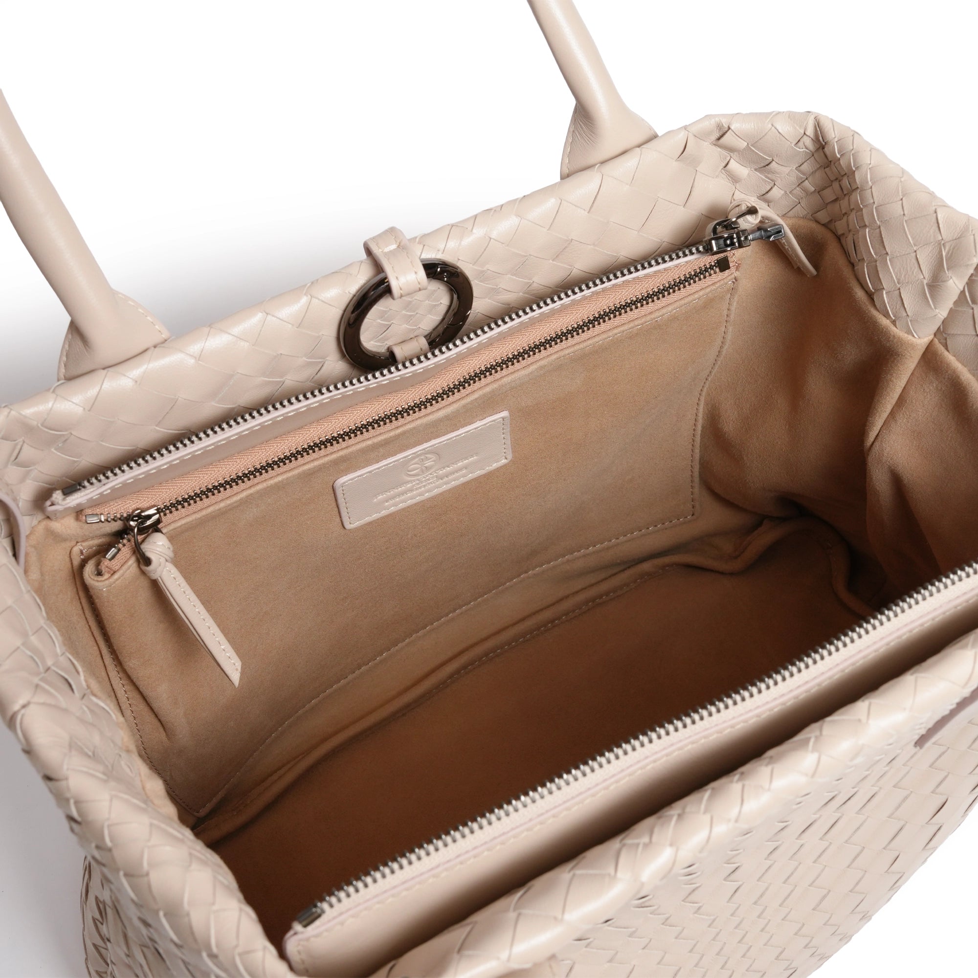 Sophia Intrecciato Optical Zippered Shopping Bag in Nappa Cipria