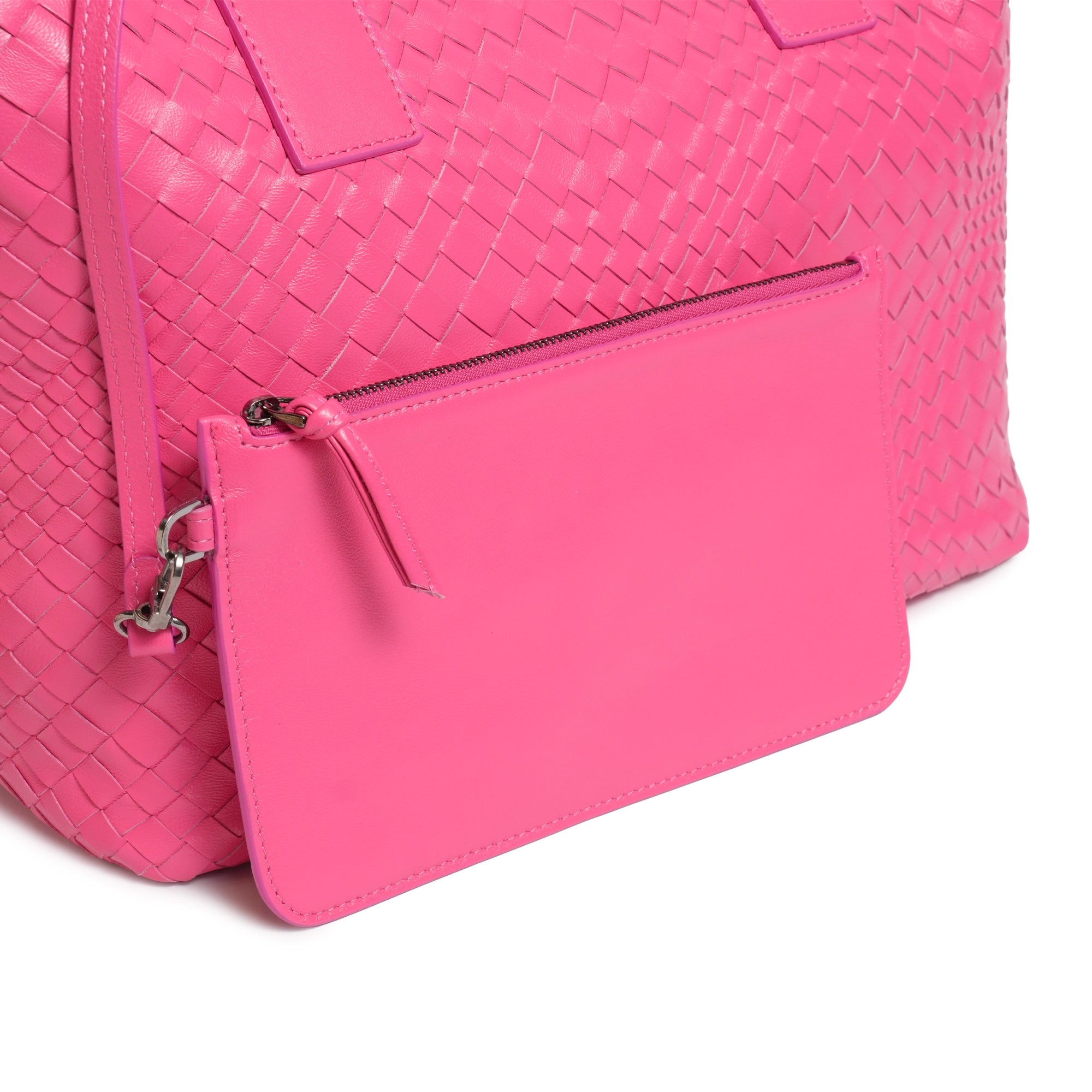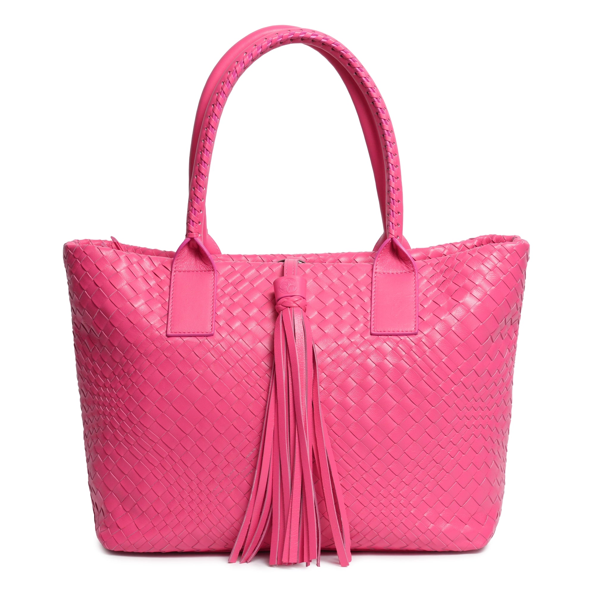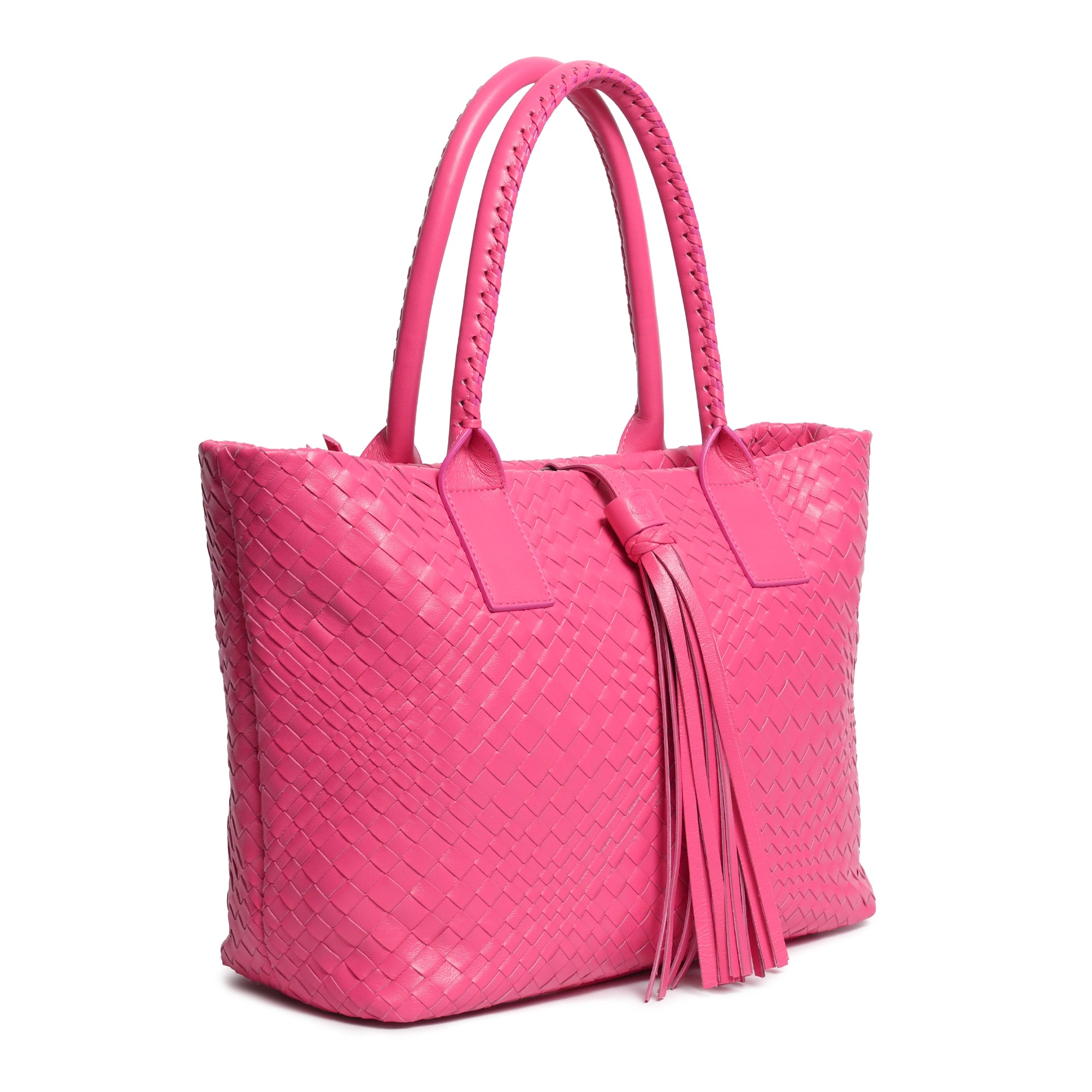 Enjoy our new Sophia Intrecciato Optical Zippered Shopping Bag in Nappa Fucsia.