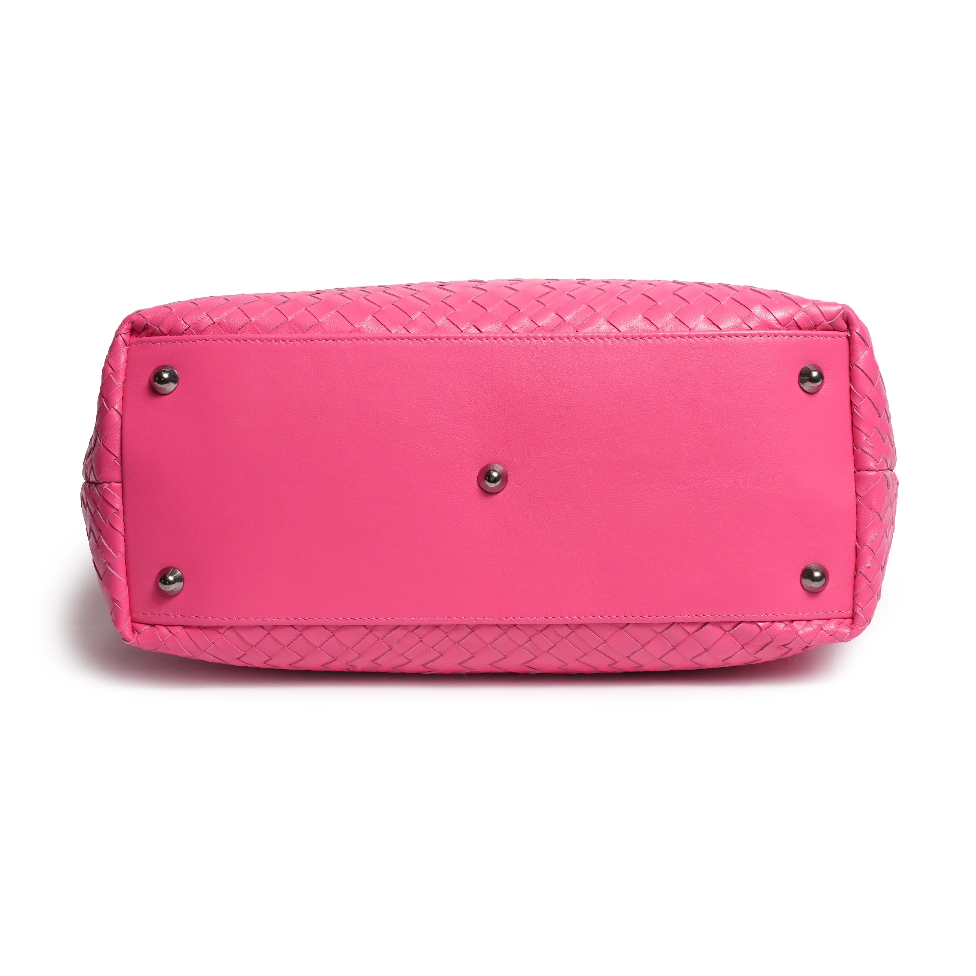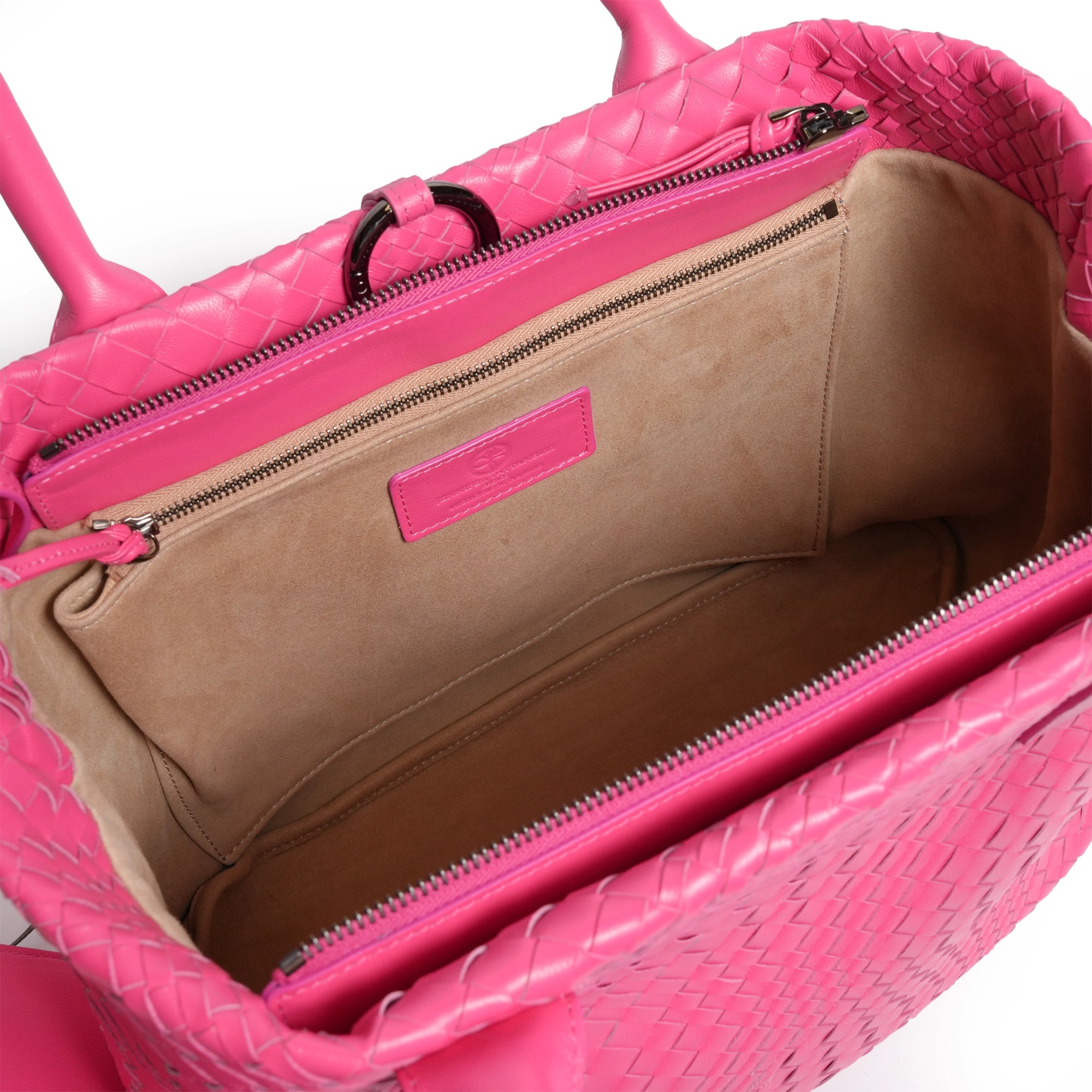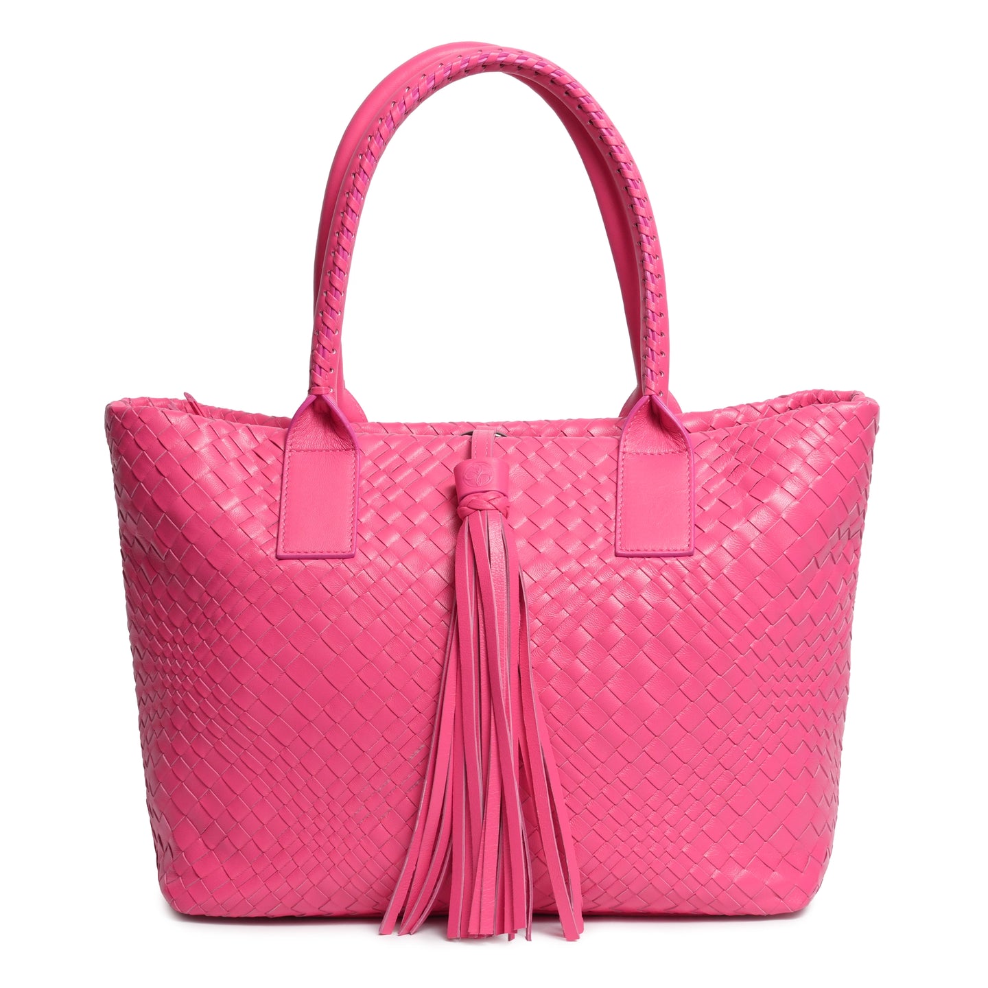 Enjoy our new Sophia Intrecciato Optical Zippered Shopping Bag in Nappa Fucsia.