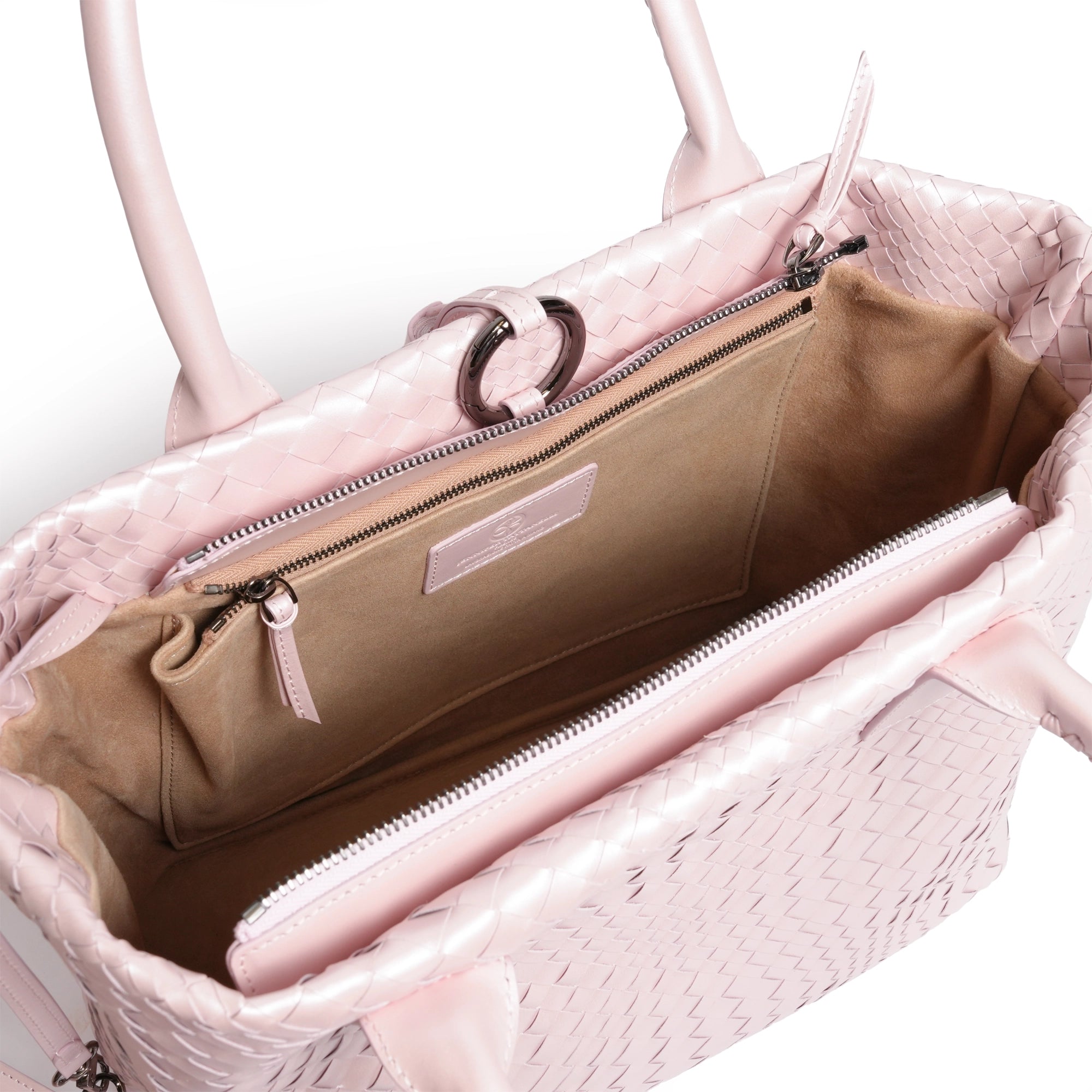 Sophia Intrecciato Optical Zippered Shopping Bag in Pearlized Pink