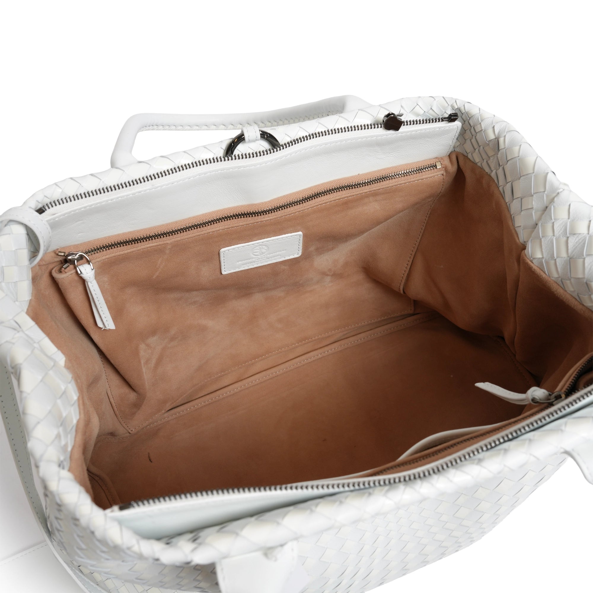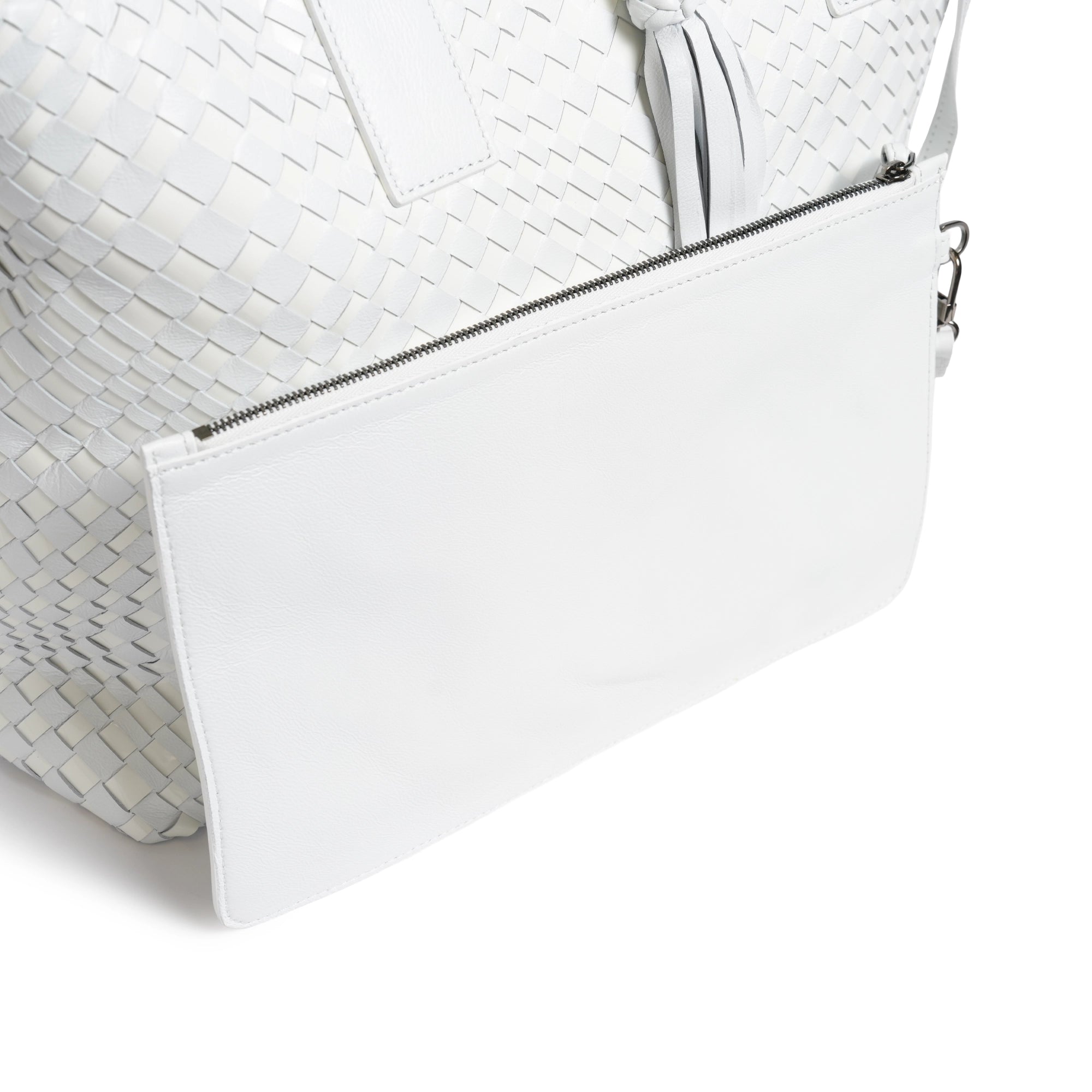 Sophia Maxi Intrecciato Zippered Nappa and Patent Leather Bag in White
