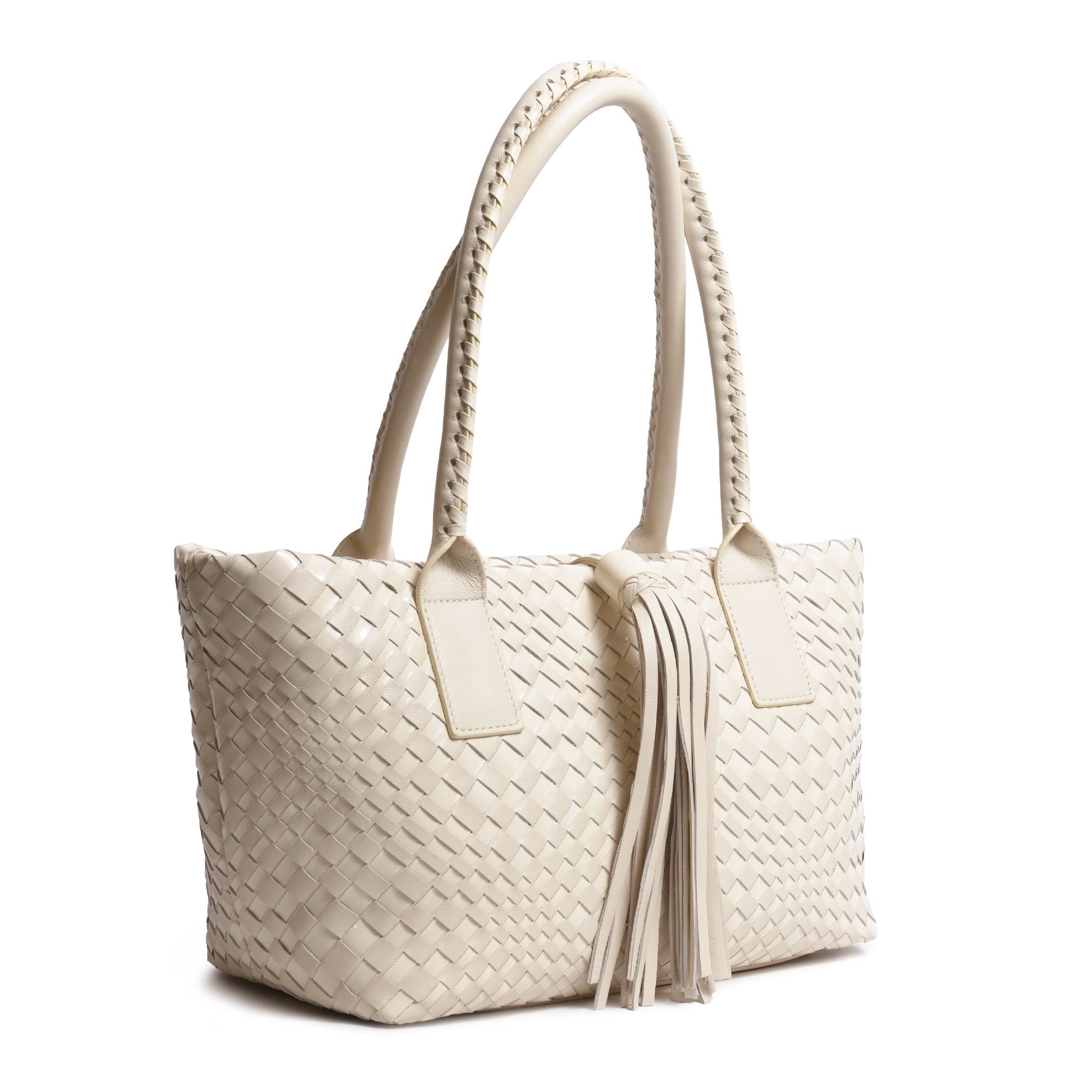 Sophia Petite Intrecciato Optical Shopping Bag in Nappa and Patent Ivory