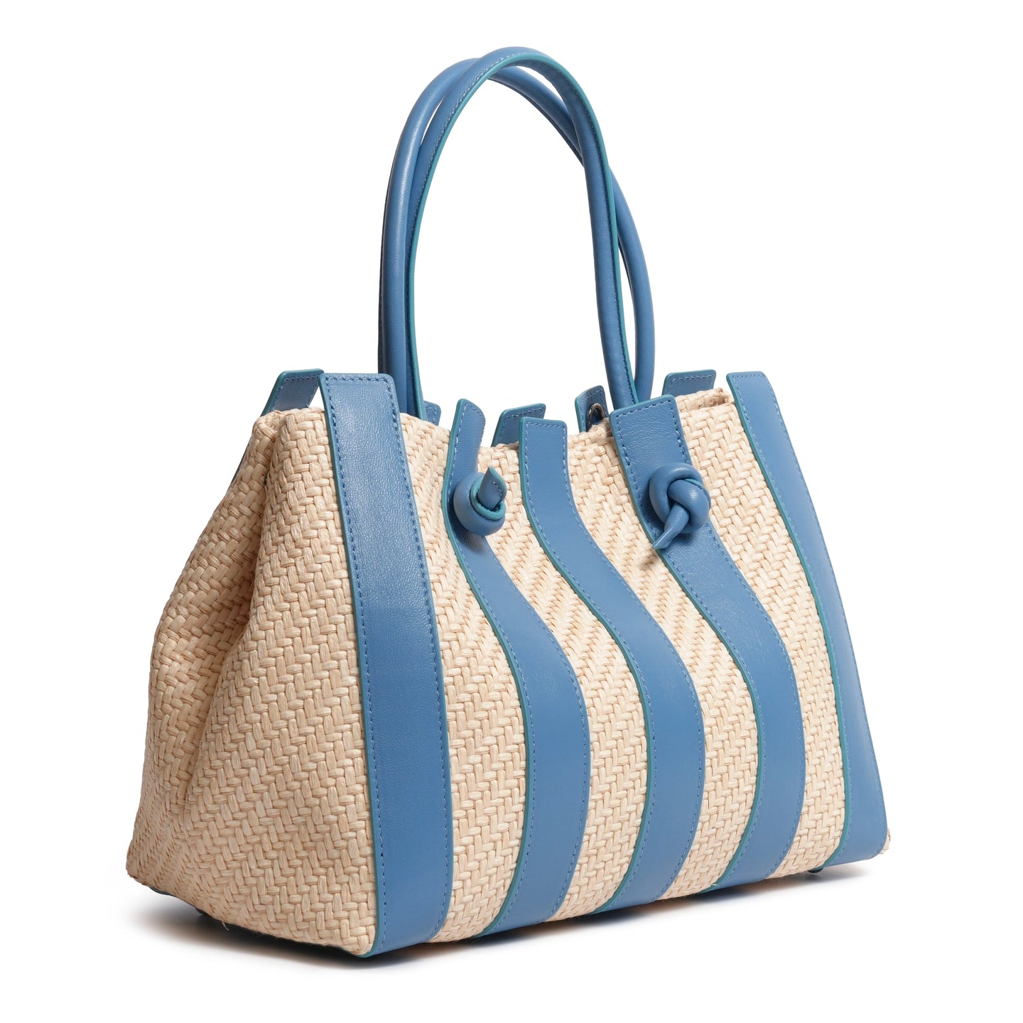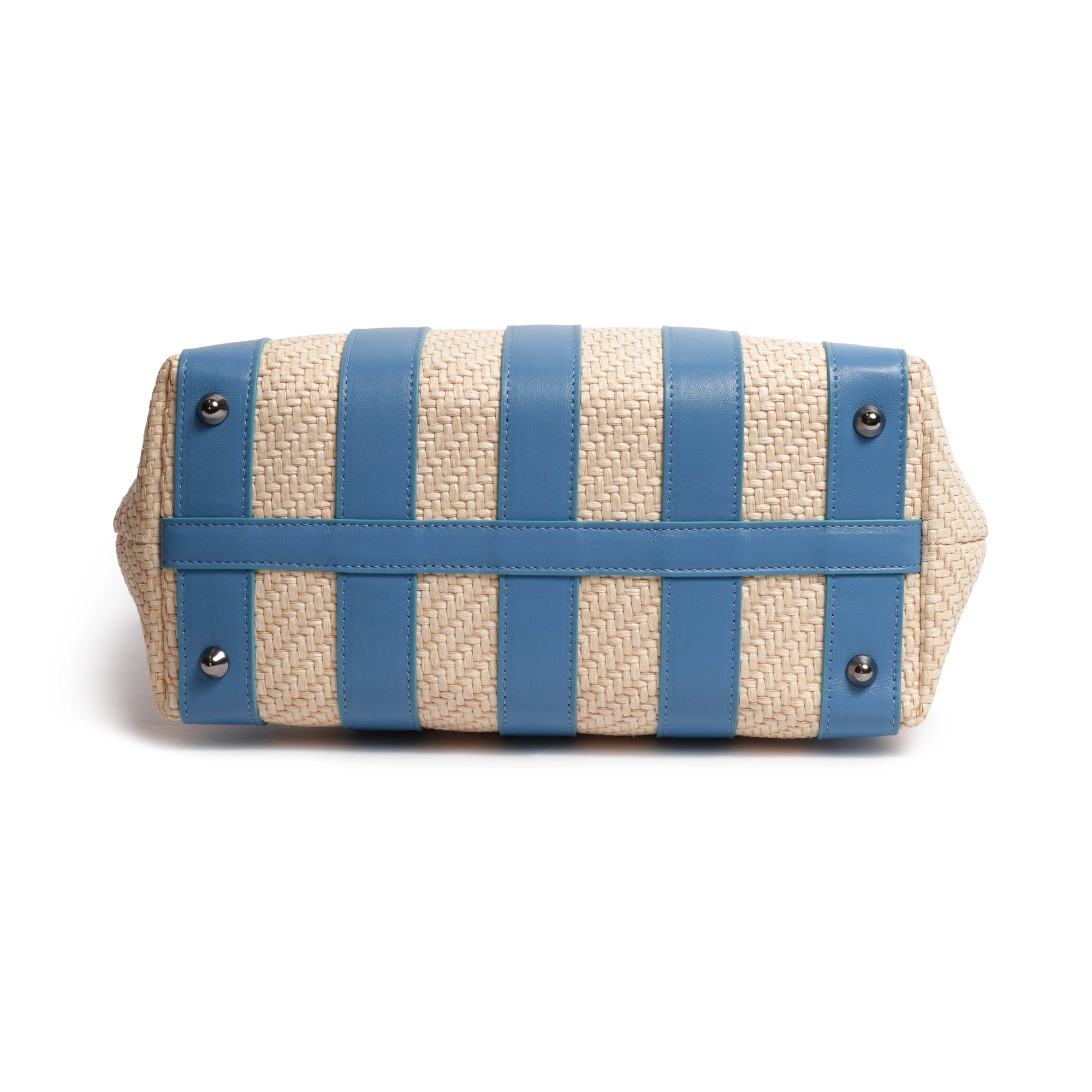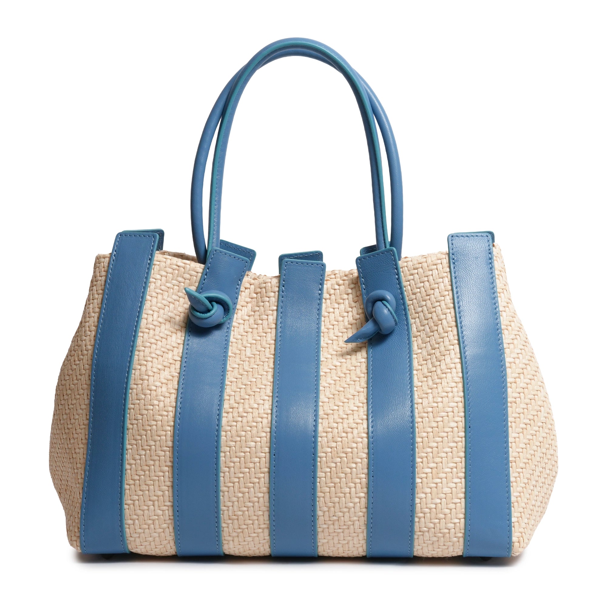 Stripes Canvas and Leather Large Shopping Bag in Nappa Marino Blue