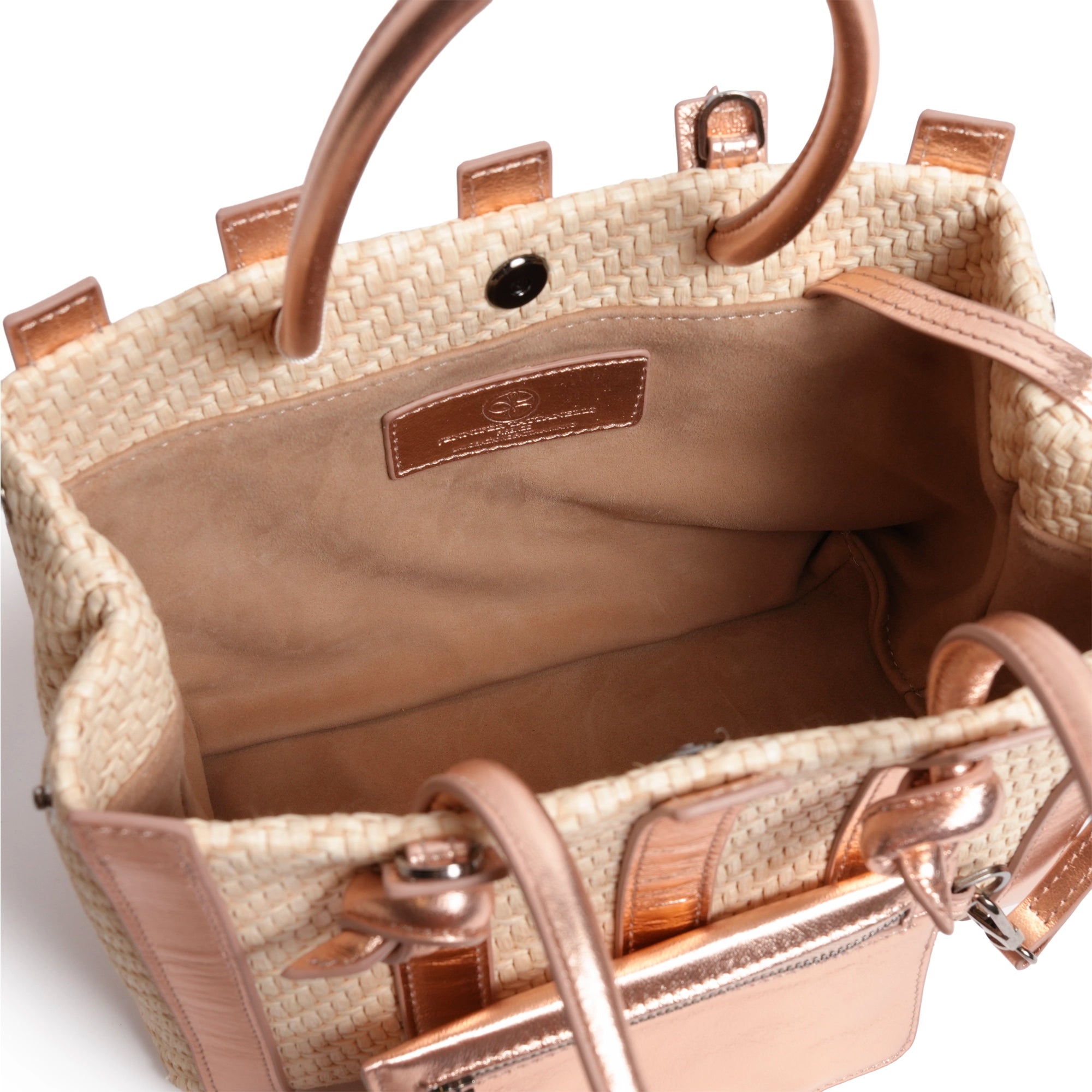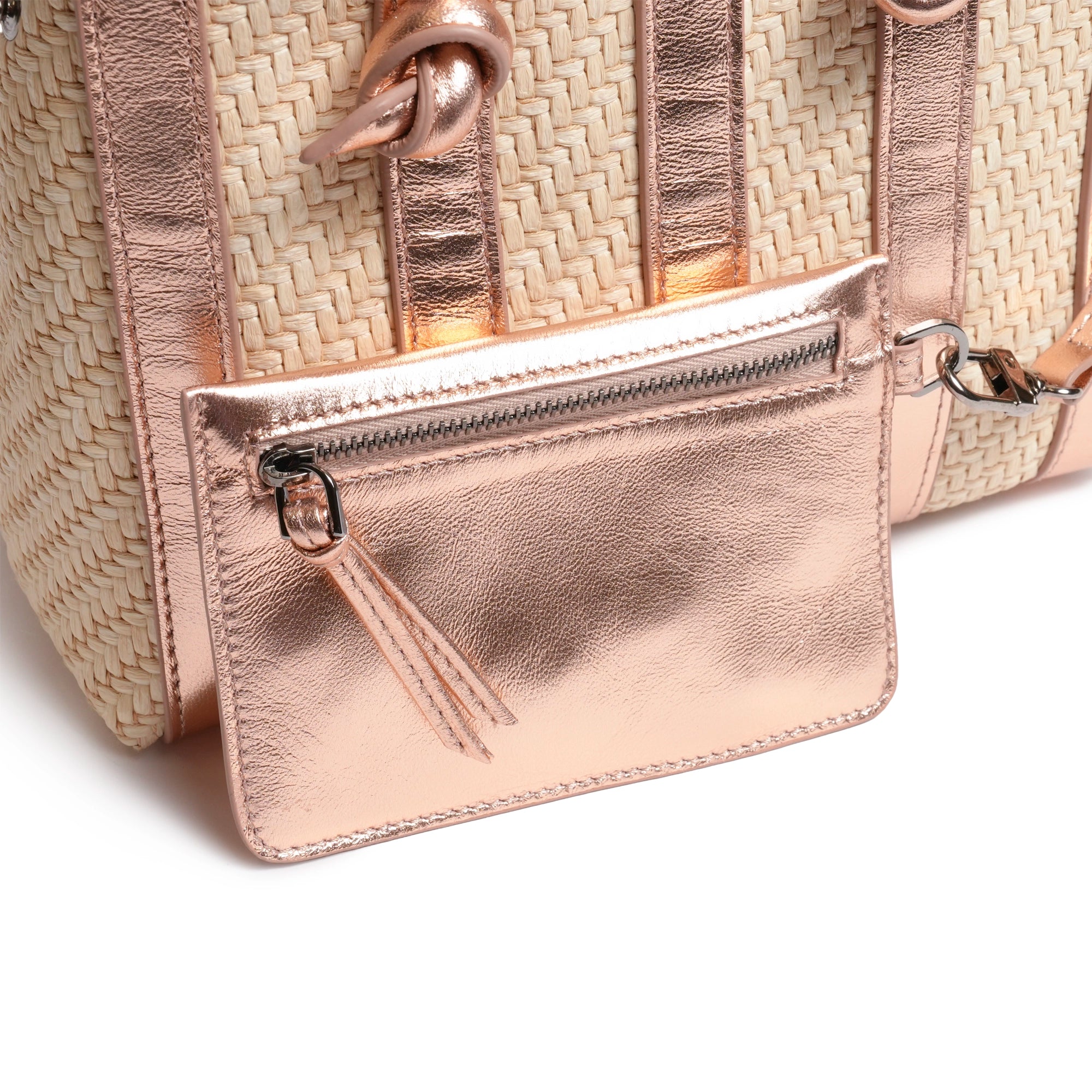 Meet your new essential: the Medium Canvas & Leather Shopping Bag in Laminated Rose Gold, where utility meets understated elegance. Designed for those who carry more — and carry it well — this spacious tote features a durable canvas body, elevated with smooth leather stripe detailing for a clean, timeless look.