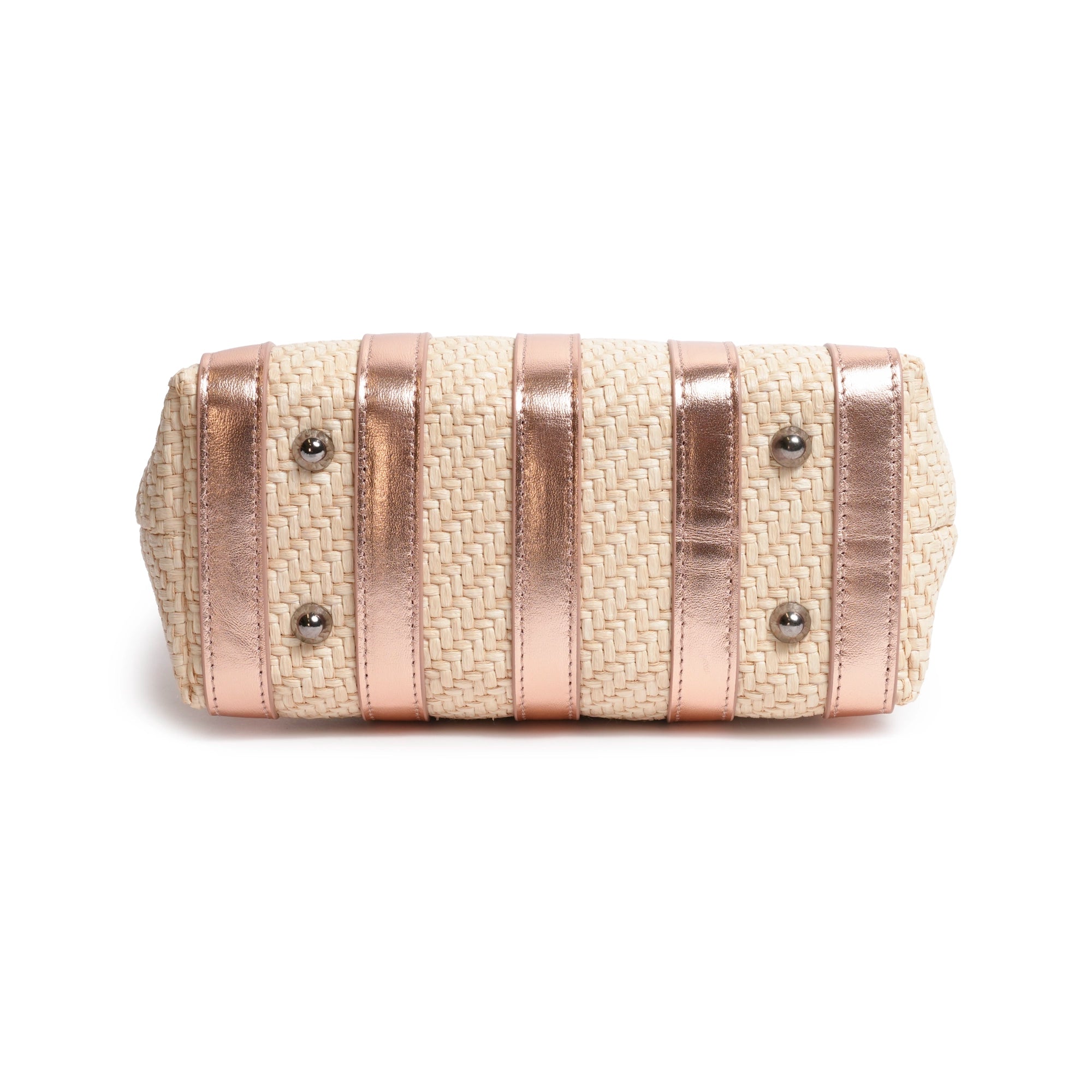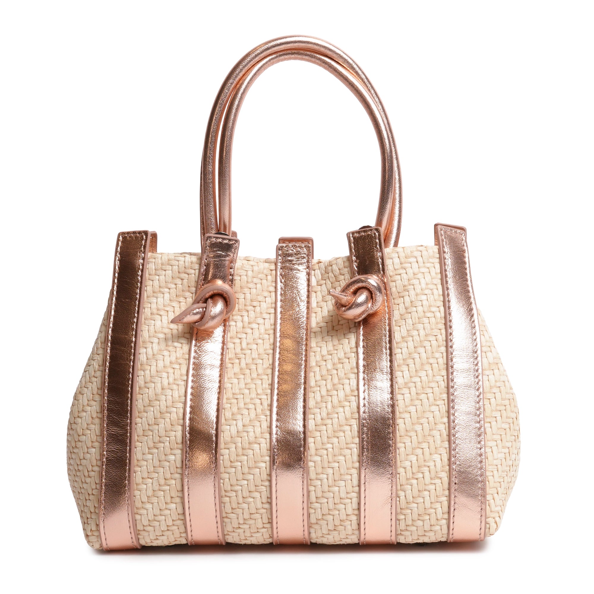 Stripes Canvas and Leather Medium Shopping Bag in Laminated Rose Gold